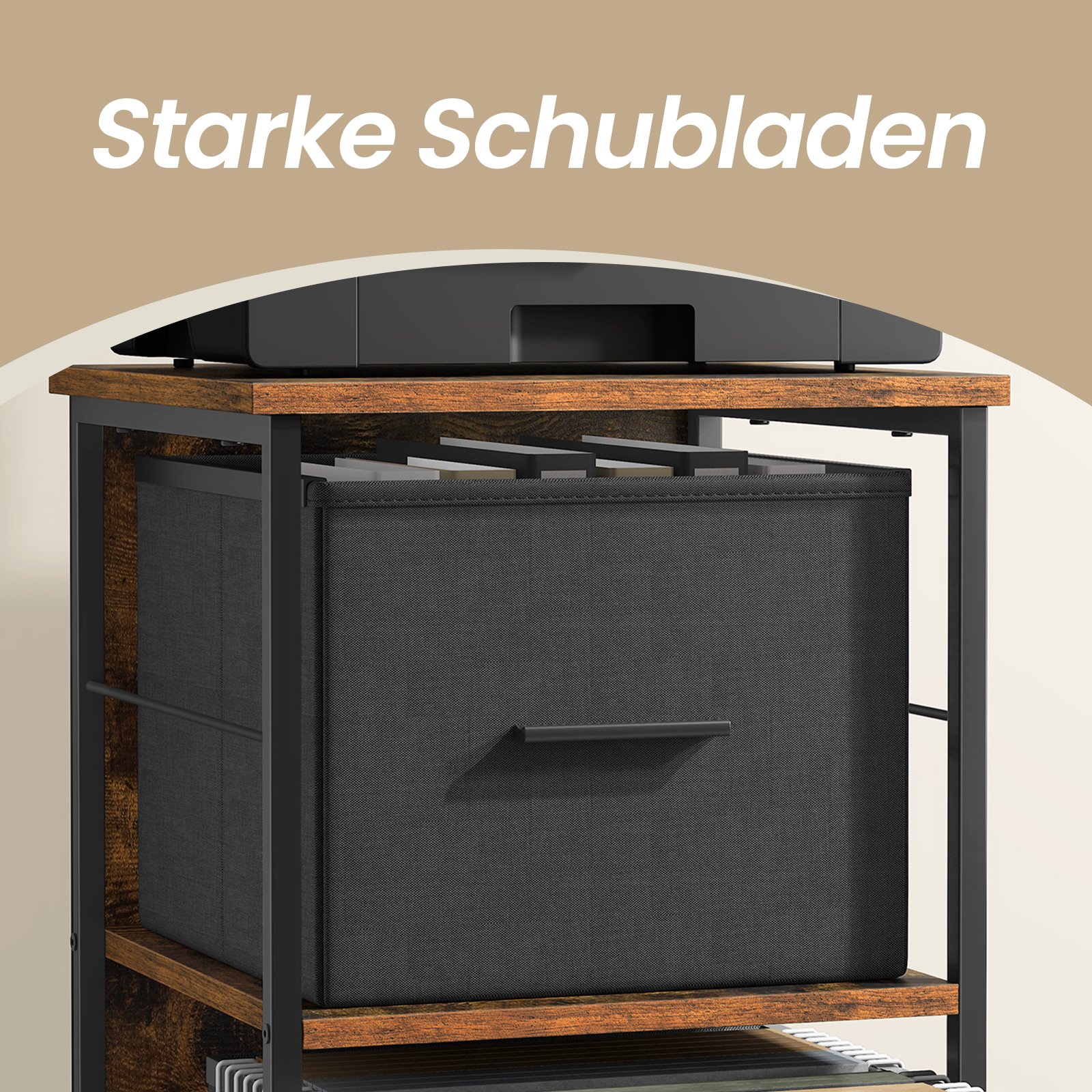 VASAGLE 3-drawer filing cabinet, printer stand, for A4, letter format, hanging files, storage box, home office