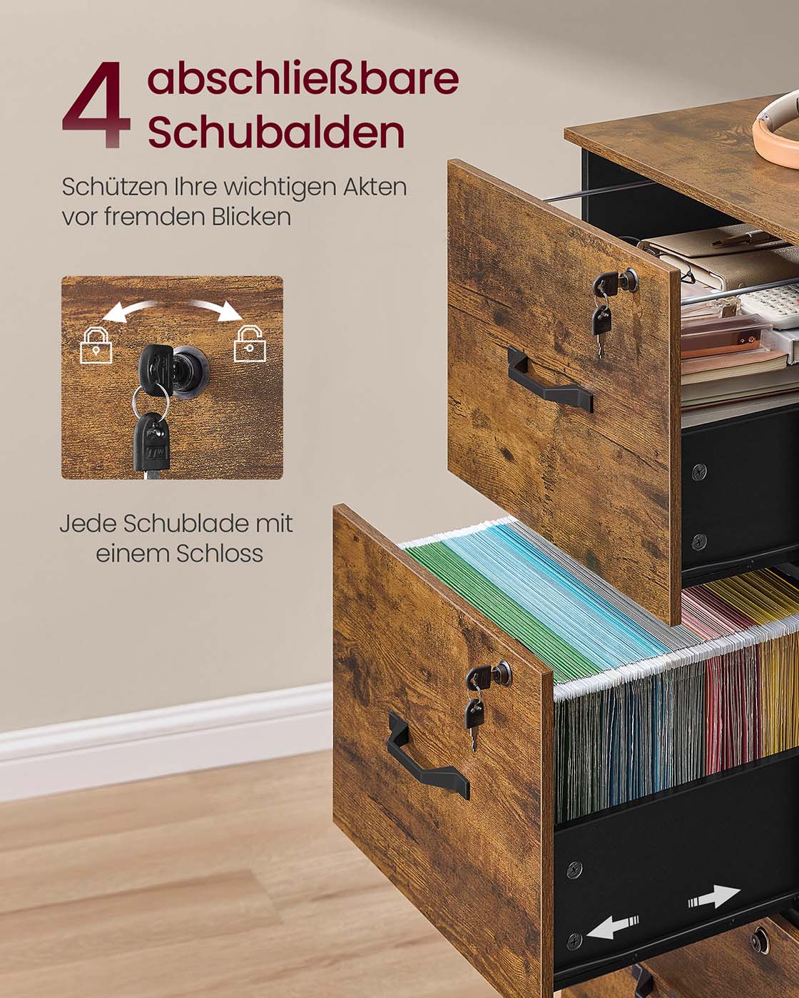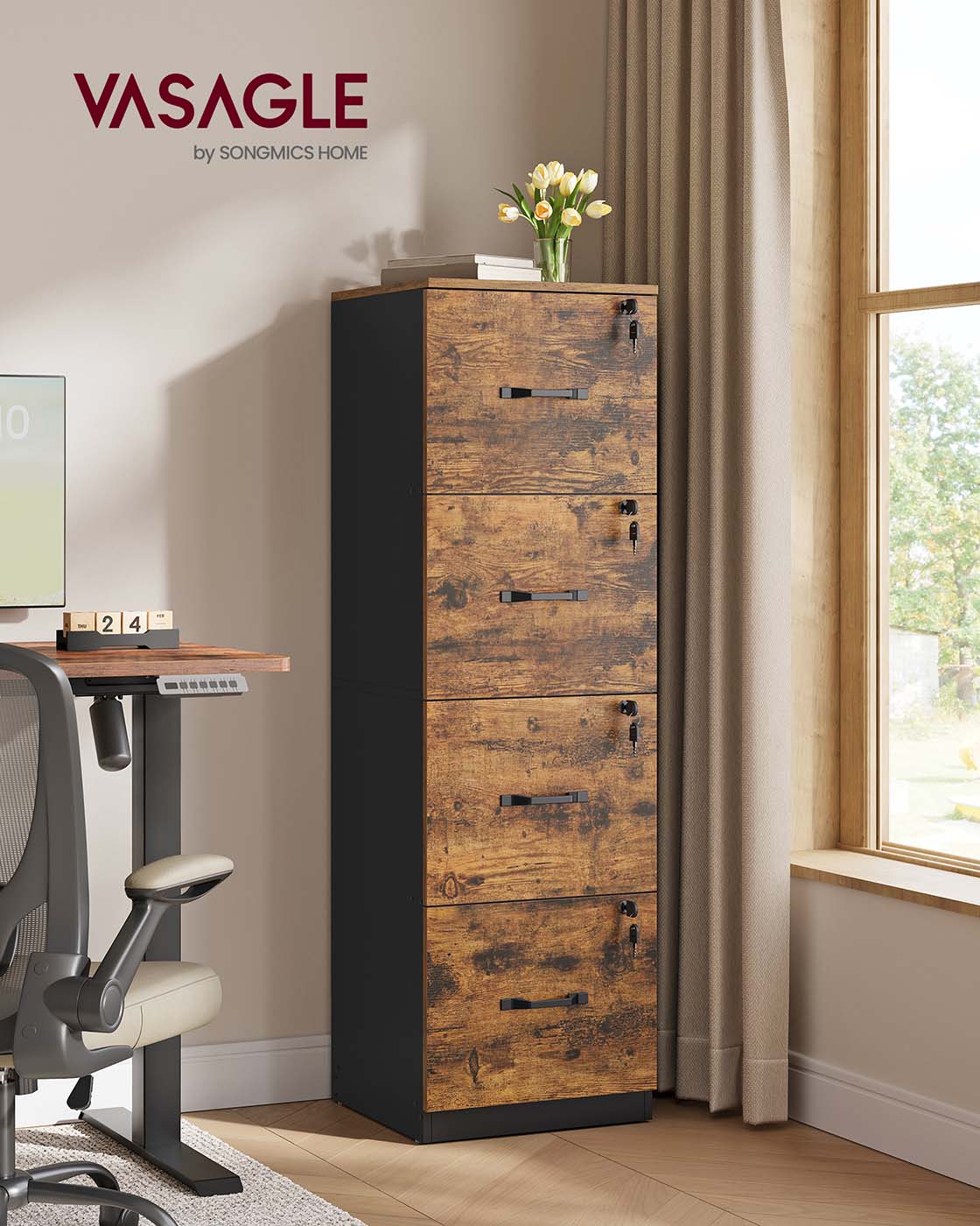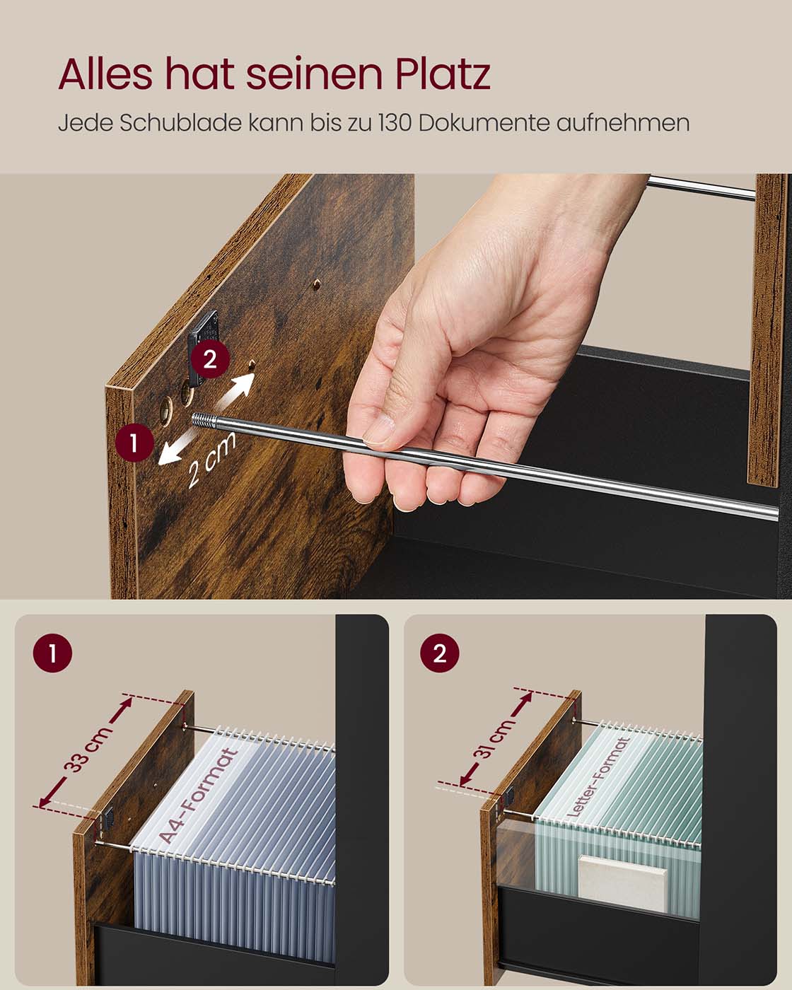 VASAGLE filing cabinet, office cabinet for home office, printer stand, with 3 lockable drawers, adjustable hanging rail, for A4 and Letter formats