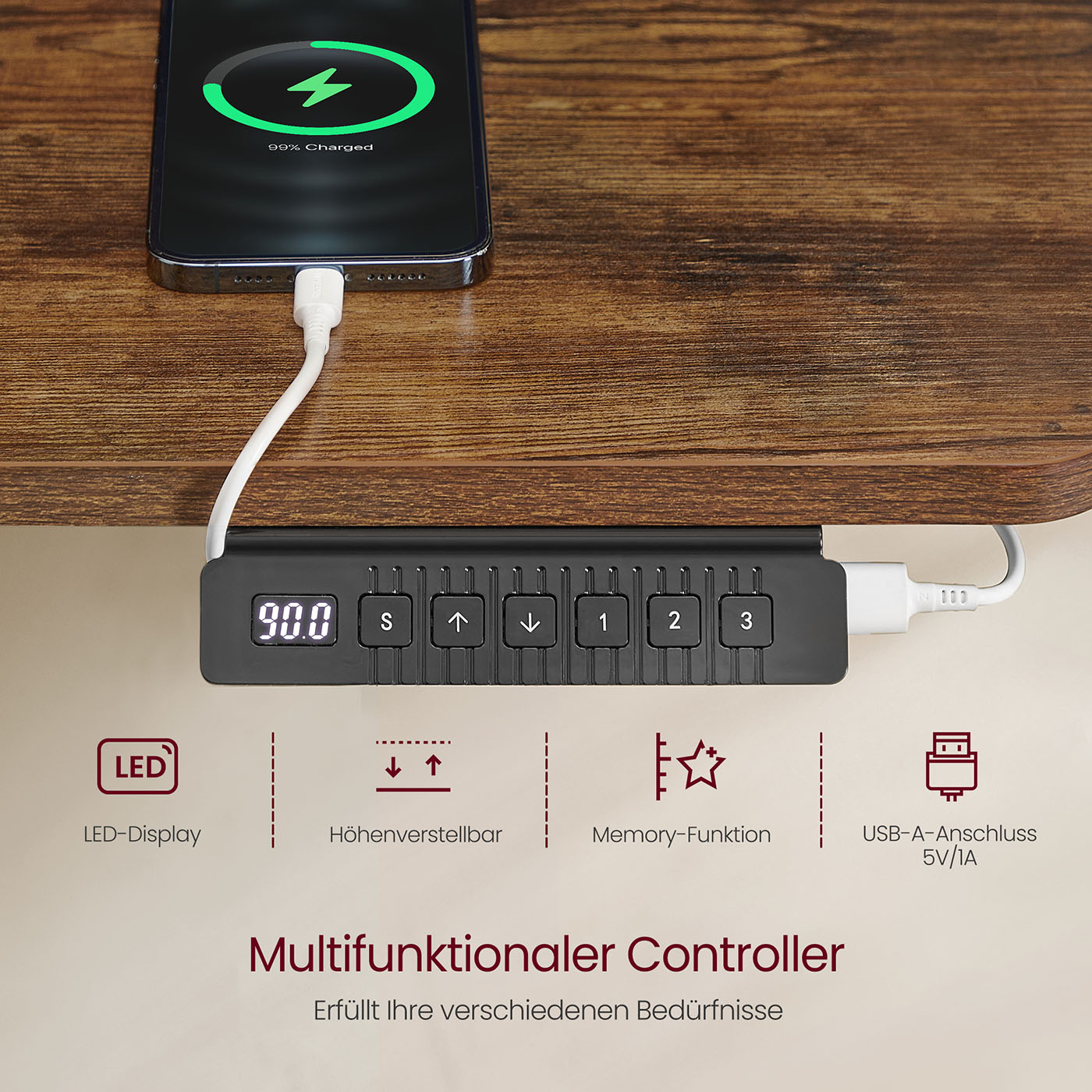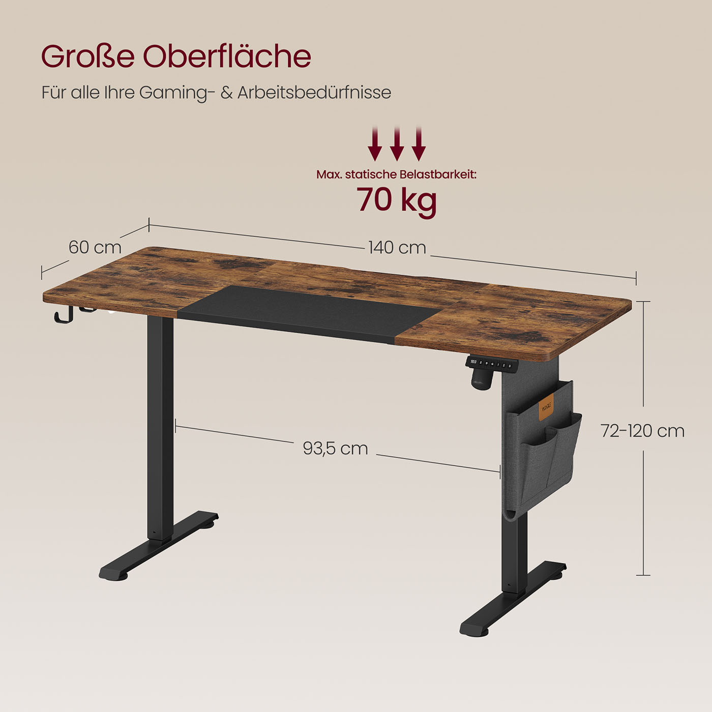 – Size: 60 x 140 x (72-120) cm (D x W x H)