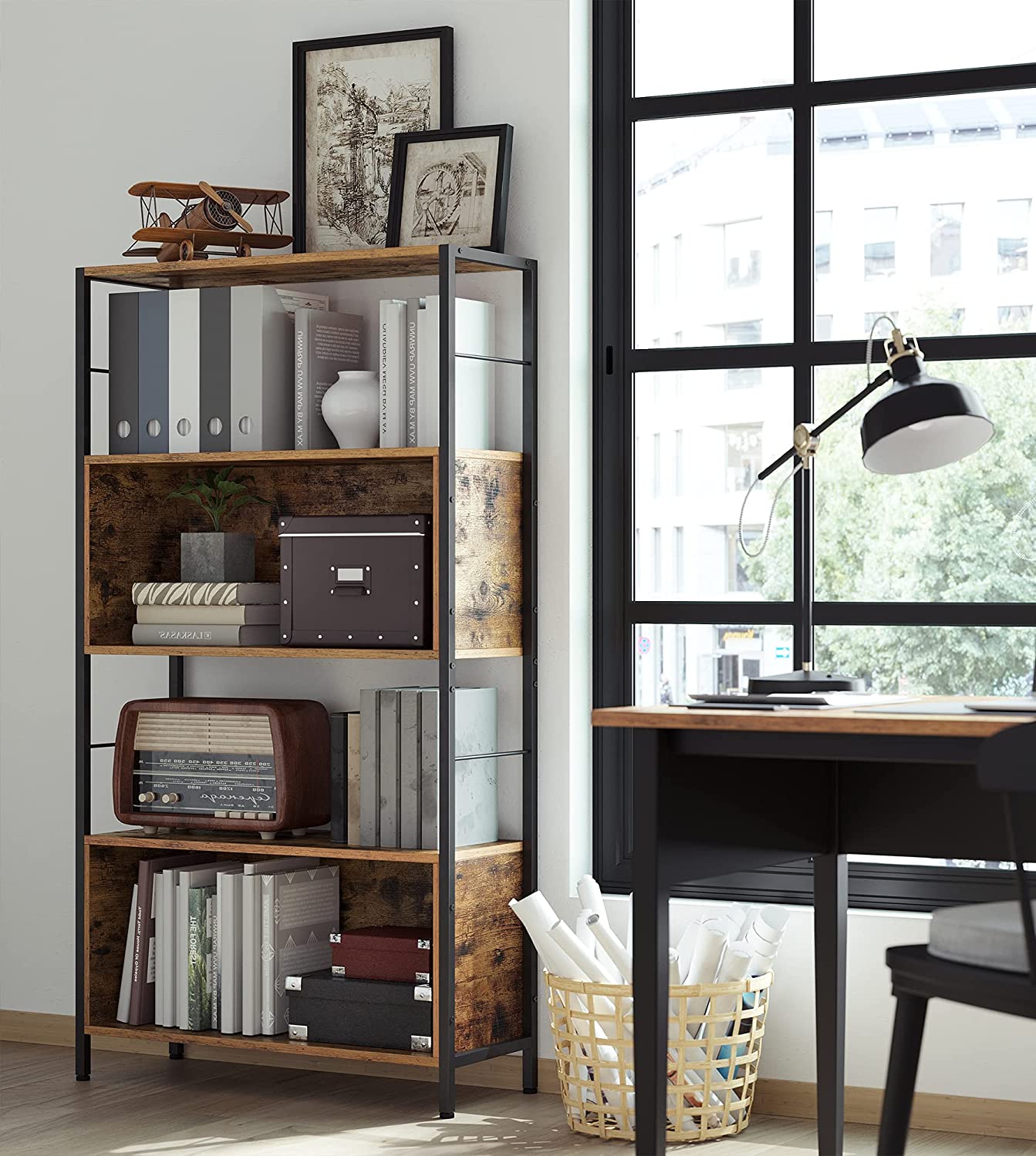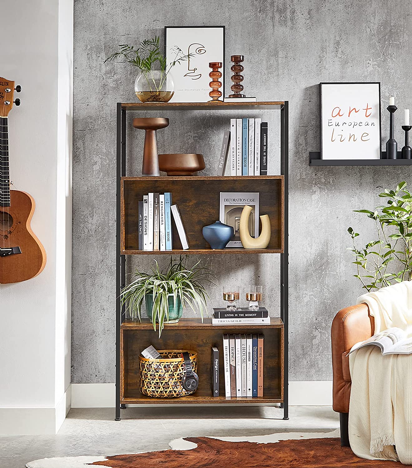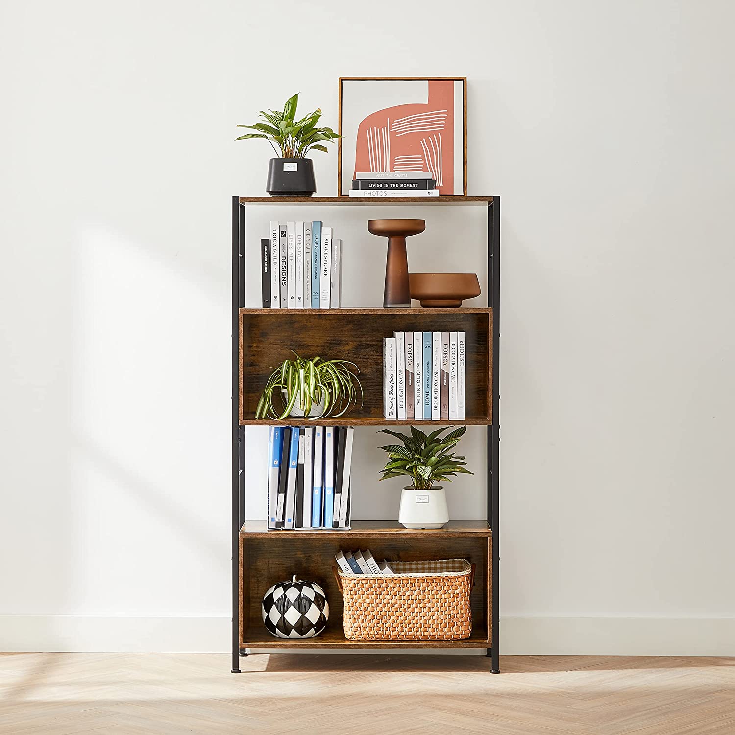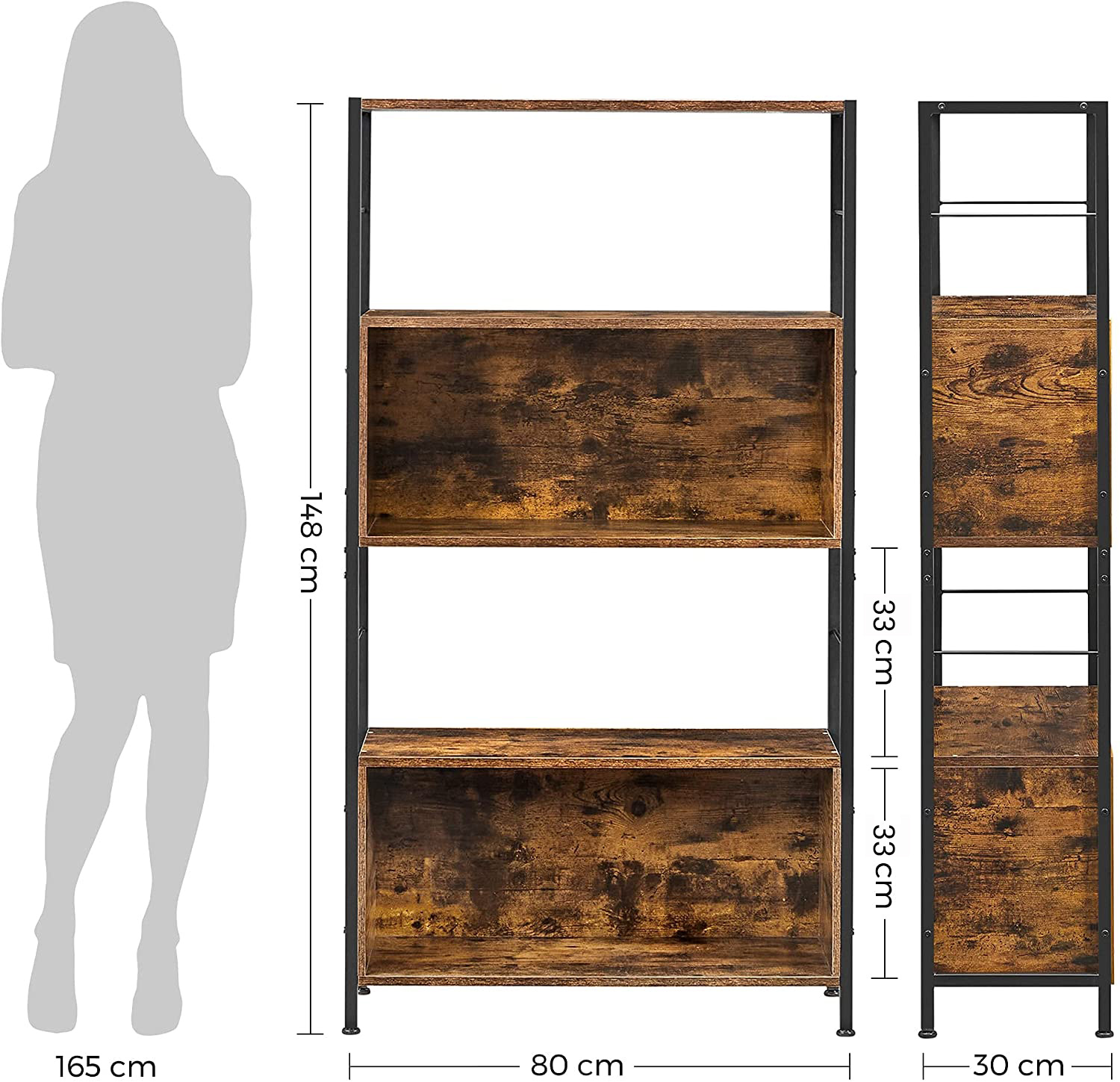 Product details: – Color: Vintage brown-black – Material: Chipboard, steel – Size: 80 x 30 x 148 cm (L x W x H) – Weight: 24 kg – Max. static load capacity: 50 kg Scope of delivery:- 1 x bookshelf – 1 x accessory package – 2 x anti-tip devices – 1 x instruction manual VASAGLE Notes: – For safety reasons, children are not allowed to climb on or play with the product. – Please attach this product to the wall with the included anti-tip device to ensure safe use.