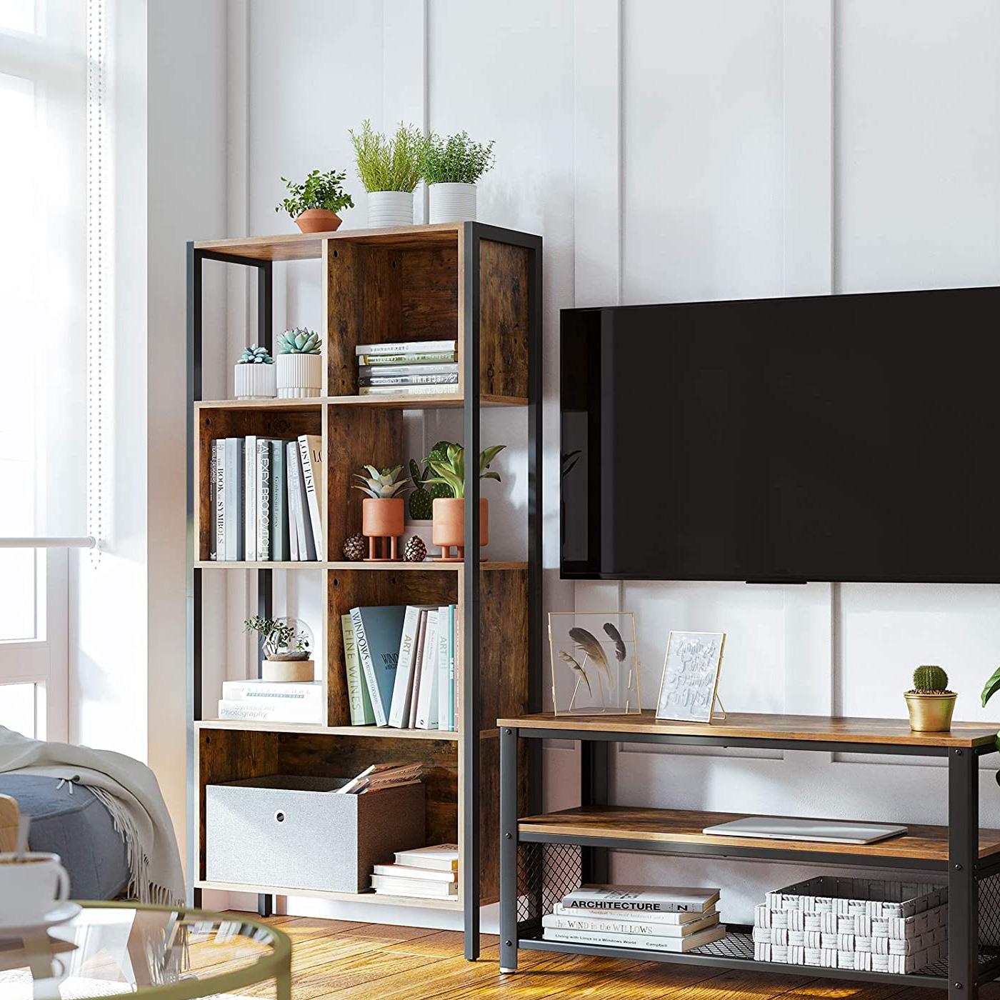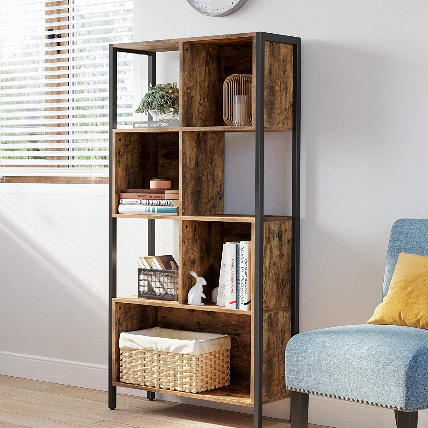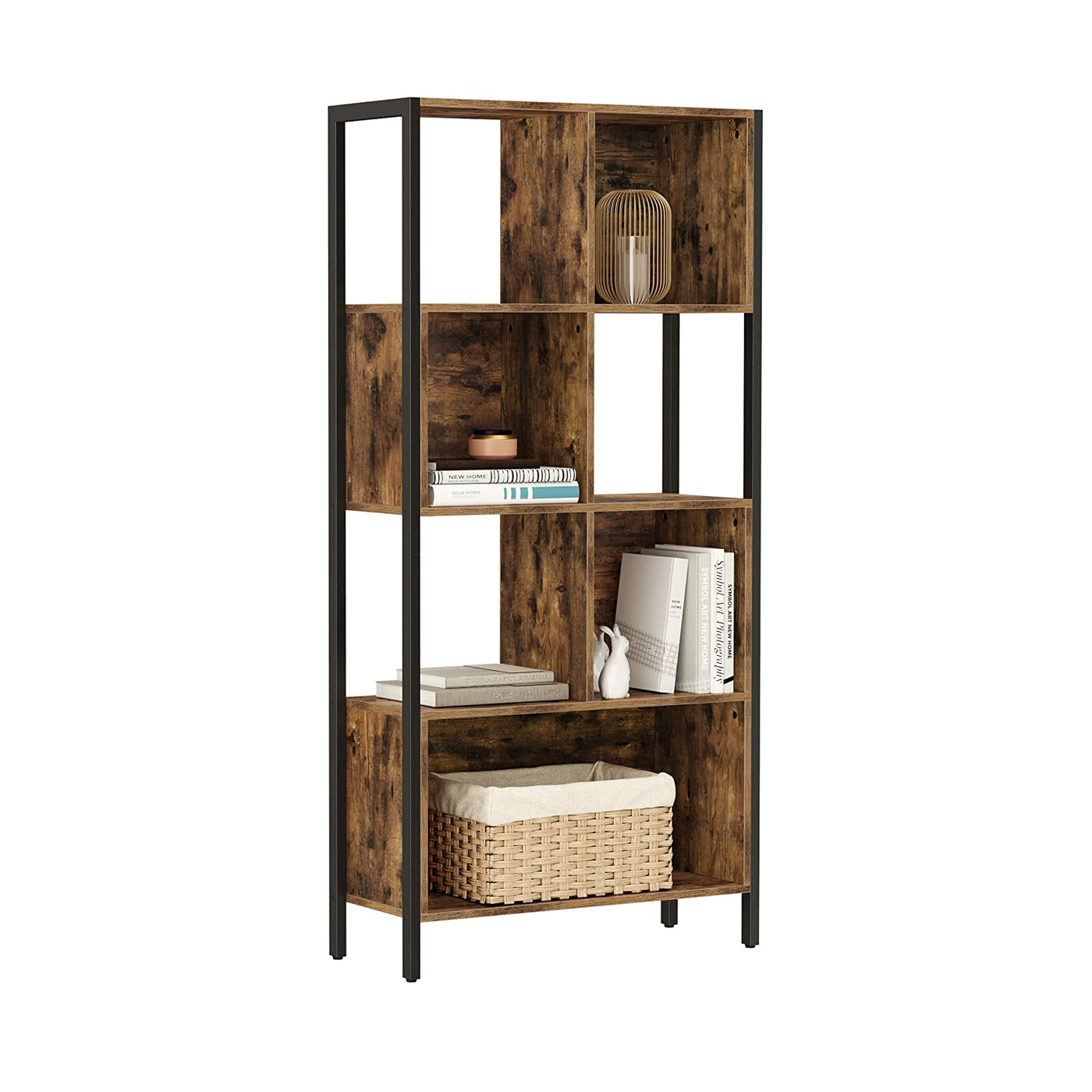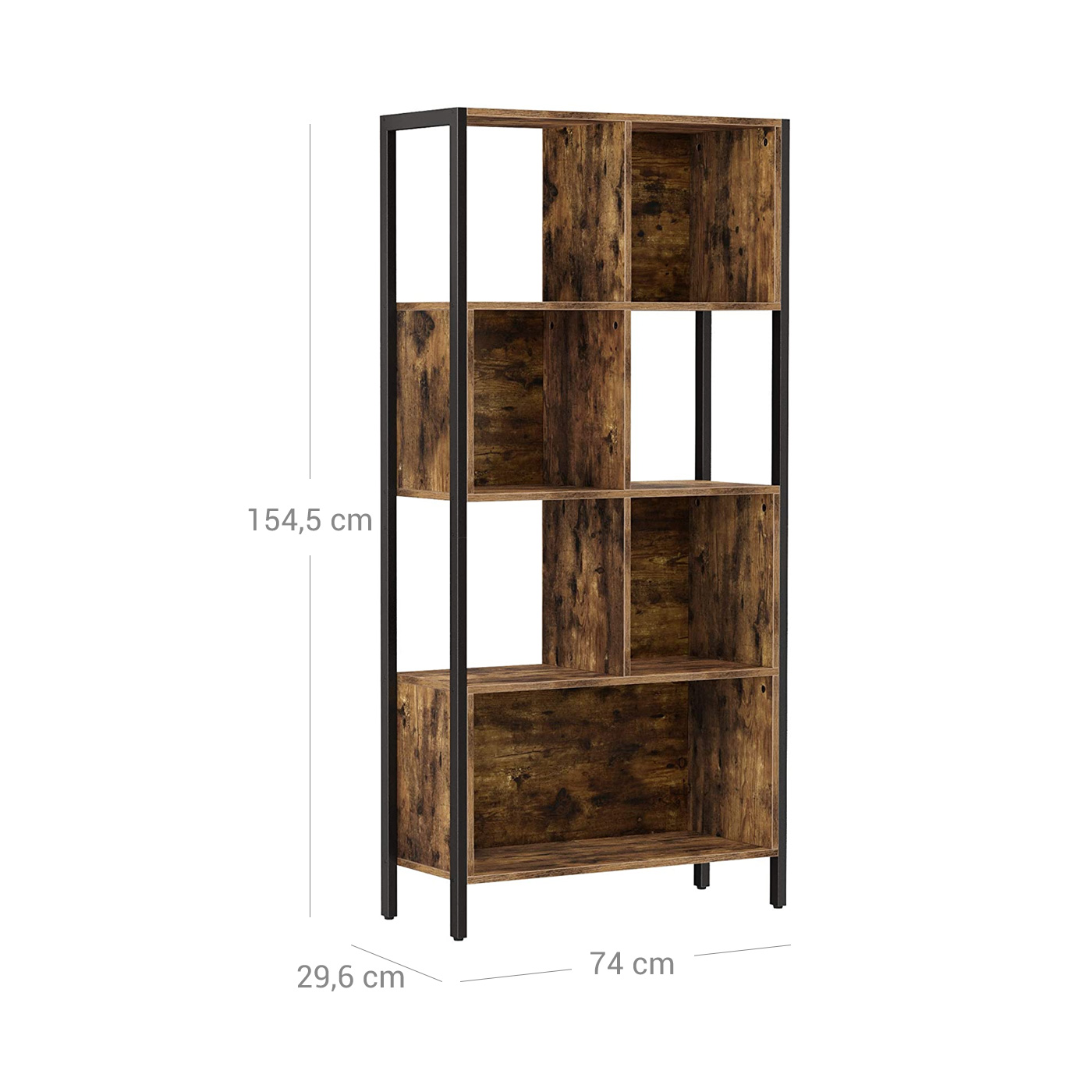Product details: – Color: vintage brown-black – Material: chipboard, steel – Size: 74 x 29.6 x 154.5 cm (L x W x H) – Weight: 26.2 kg – Max. static load capacity per shelf: 15 kg Scope of delivery:- 1 x bookshelf – 1 x accessory package – 1 x anti-tip device – 1 x instructions (DE, EN, FR, ES, IT) VASAGLE Notes: – For safety reasons, children are not allowed to climb on or play with the product.