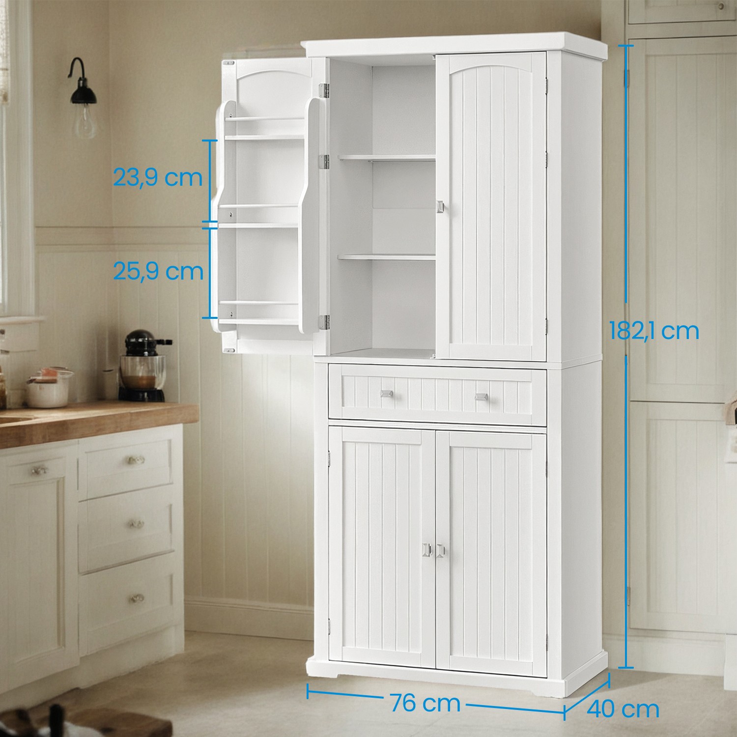 VASAGLE Kitchen Cabinet, Tall Cabinet Kitchen Sideboard Display Cabinet, Sideboard with Adjustable Shelves, Dining Room Cabinet with Drawers, for Living Room Kitchen, White BBC561W21