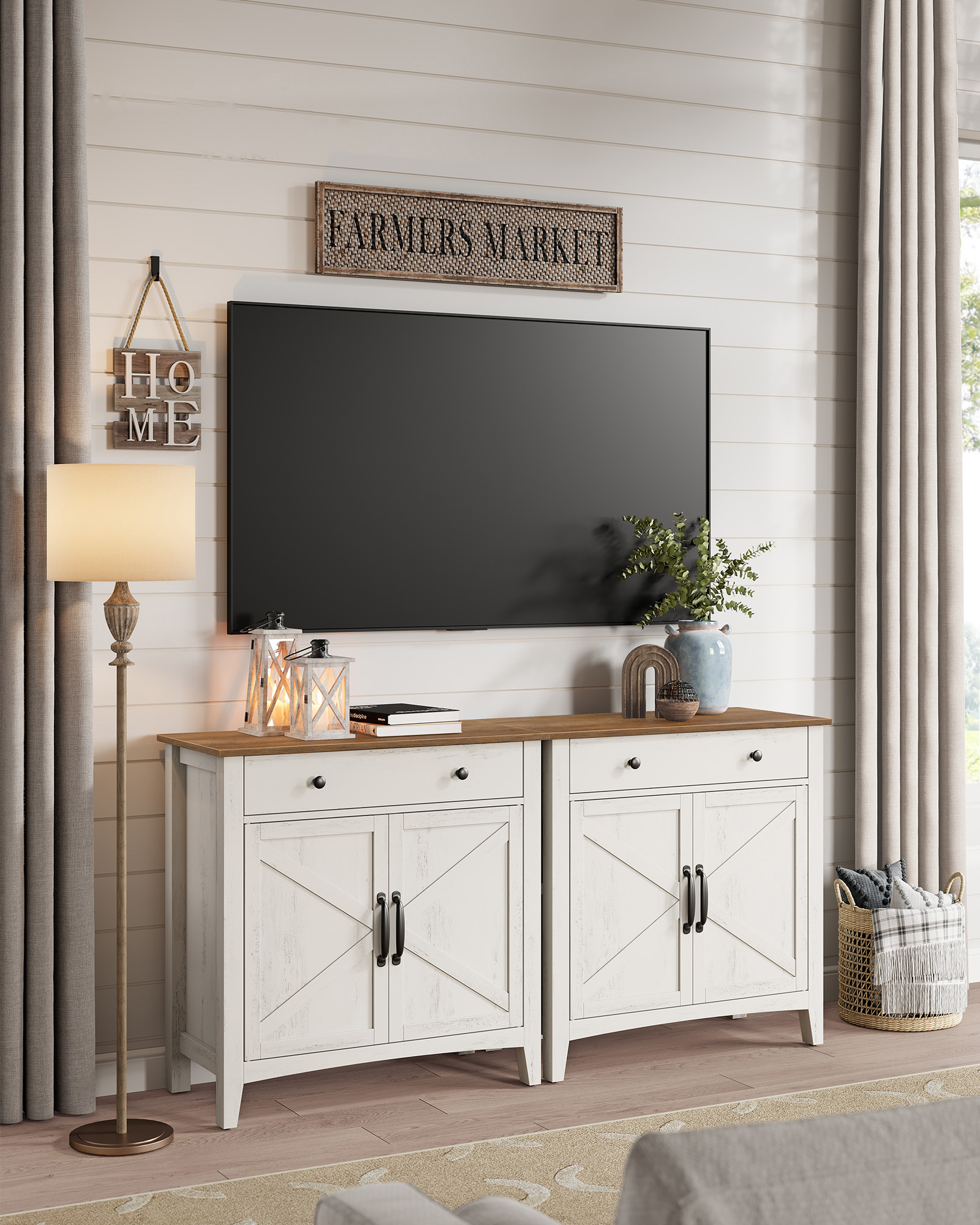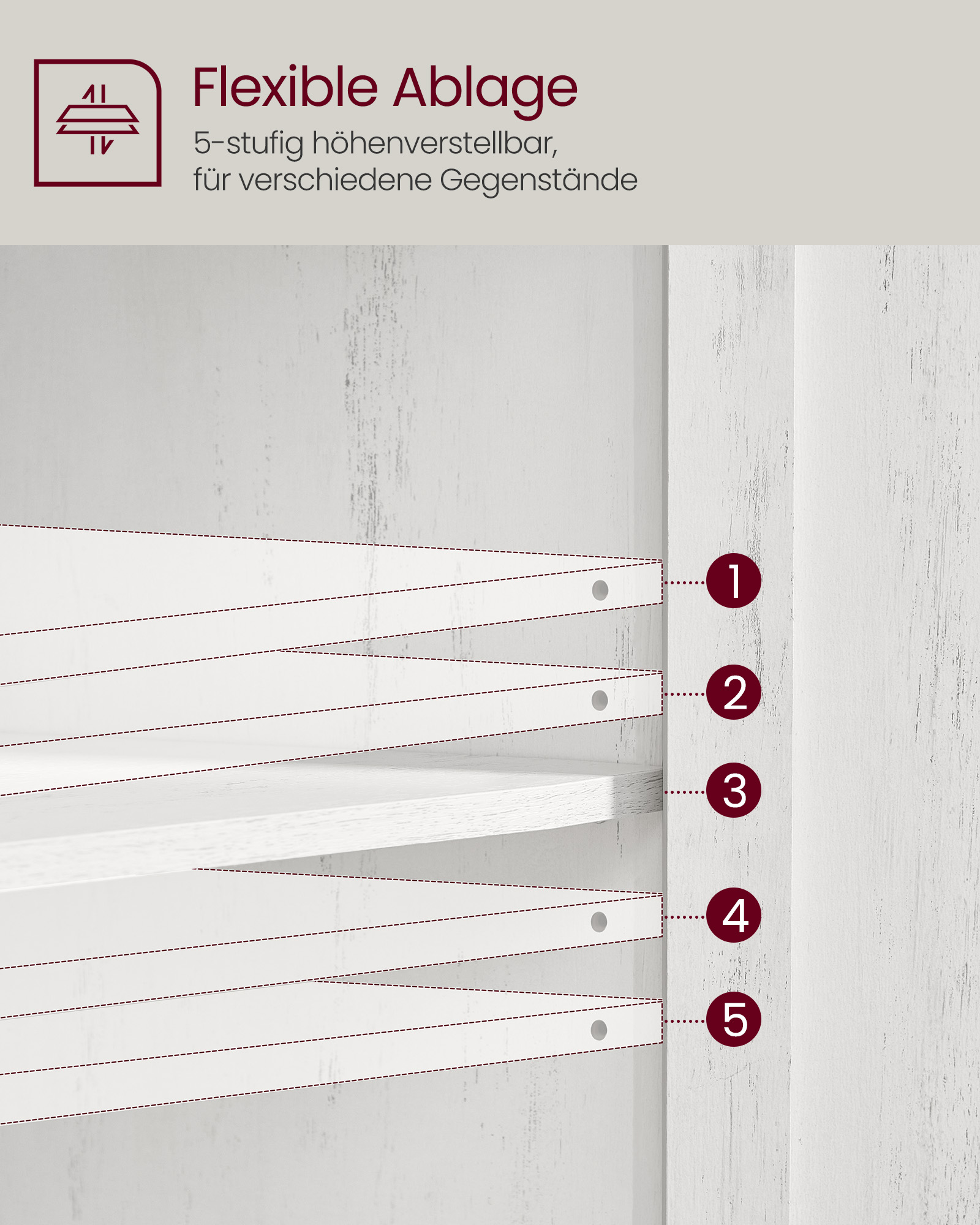 VASAGLE kitchen cabinet, sideboard with drawers, storage cabinet with doors, adjustable shelf, country style, for living room, kitchen, dining room, vintage white-honey brown BBK341W01