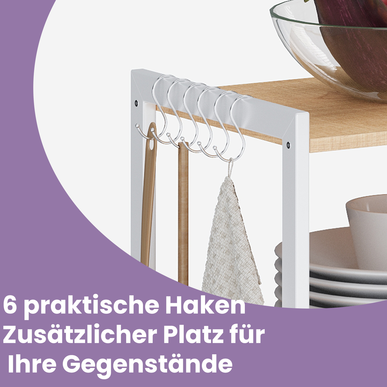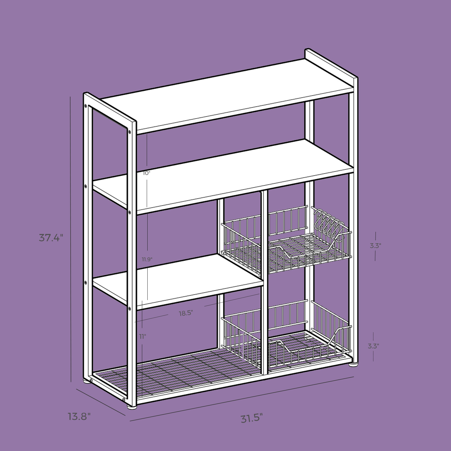 VASAGLE kitchen shelf, free-standing shelf with 2 metal baskets, baker’s shelf with hooks and shelf trays, microwave shelf