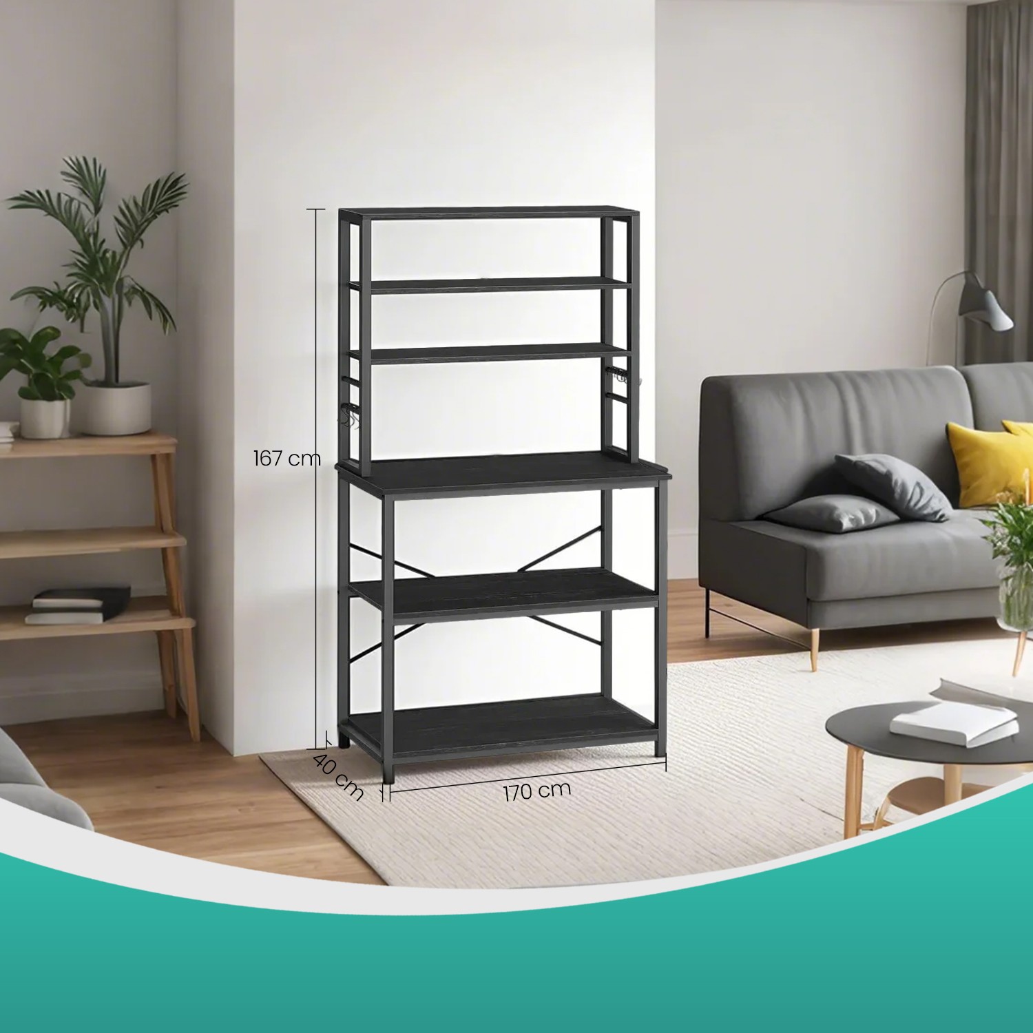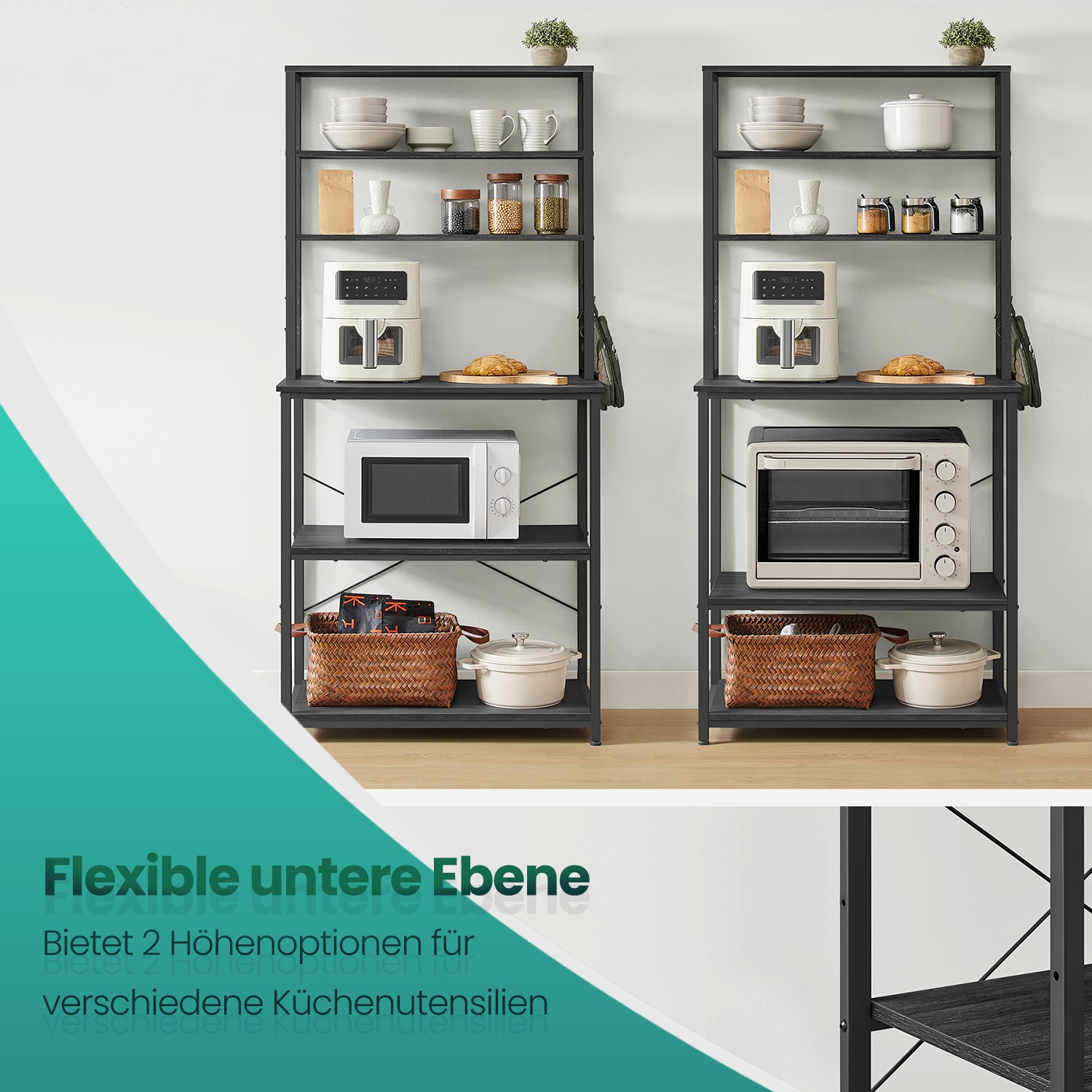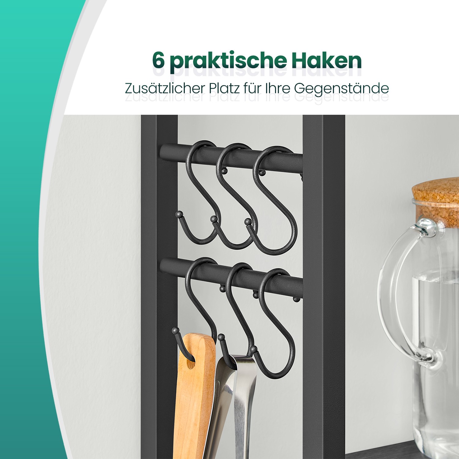 VASAGLE kitchen shelf, standing shelf with shelves, with 6 hooks and metal frame, industrial design, for microwave, cooking utensils, 80 x 40 x 167 cm, vintage brown-black KKS019B01