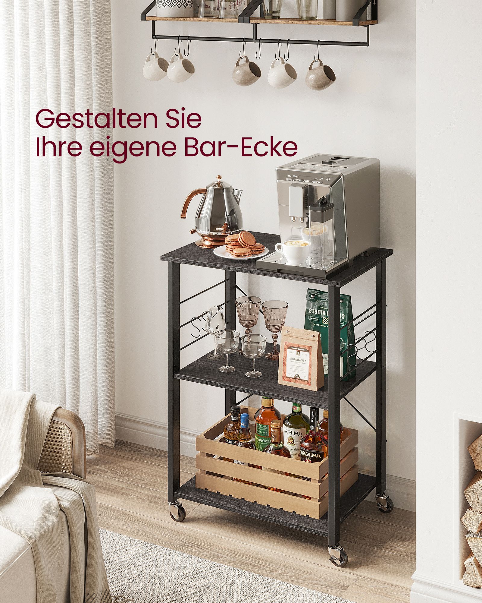 Be the first to review “VASAGLE kitchen shelf on casters, metal frame, ebony-black”