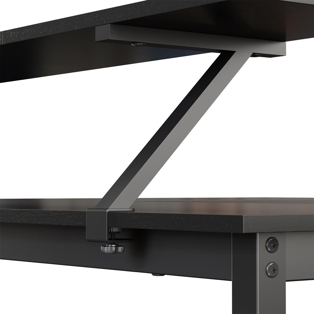 Removable monitor attachment You can easily remove the monitor attachment from the tabletop and reattach it in a different location.Large tabletop From your computer to books and files to a cup of coffee, the large tabletop has enough space for everything you need in your study. Classic black This stylish black desk adds a touch of simple elegance to your work corner. Product details: Color: Greige-black Material: Chipboard, steel Size: 140 x 130 x 76/91.5 cm (L x W x H) Weight: 26 kg Max. static load capacity: 50 kg Scope of delivery: 1 x corner desk 1 x accessory pack 1 x instructions (DE, EN, FR, ES, IT) VASAGLE Notes:For safety reasons, children are not allowed to climb on or play with the product.