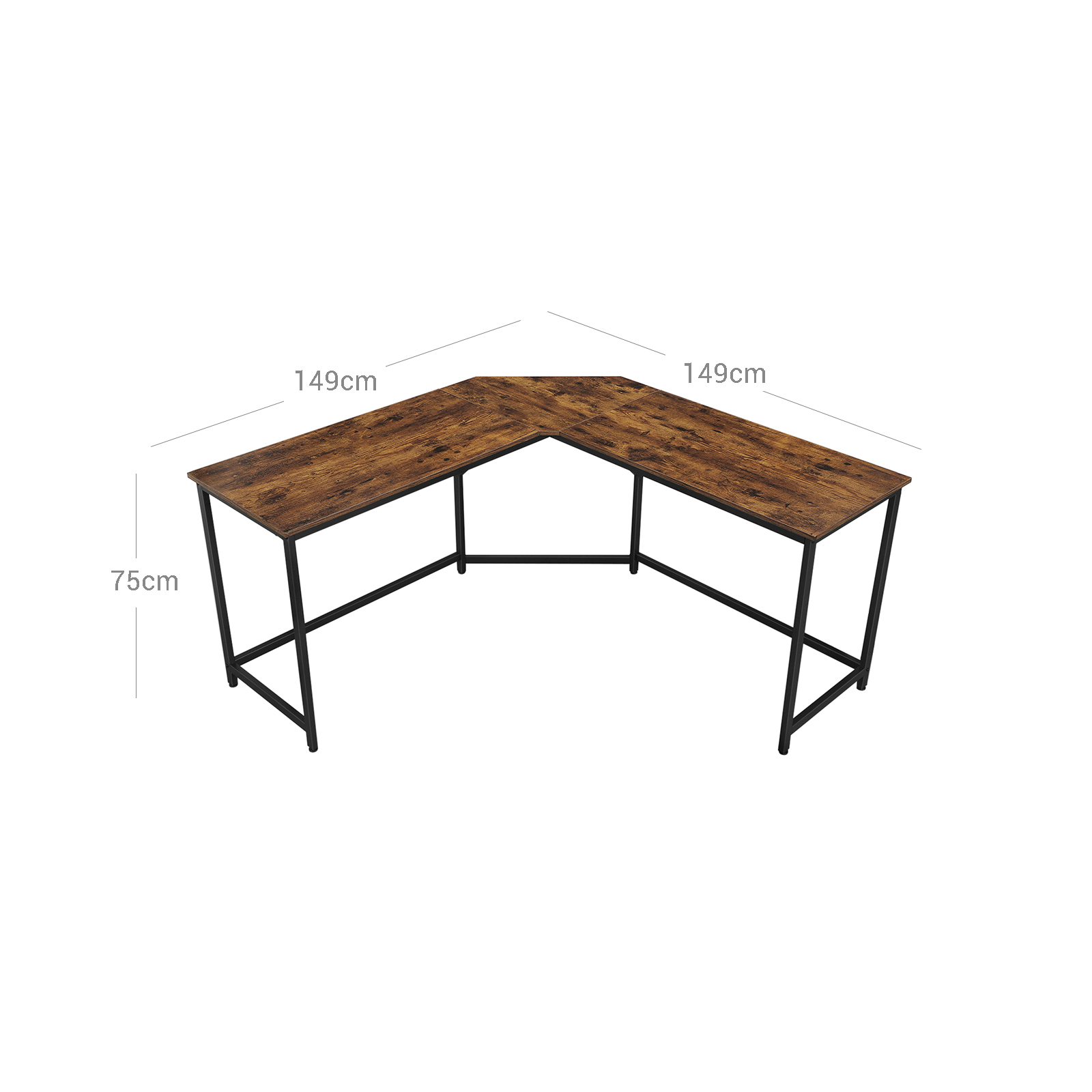 Product details: – Color: Vintage brown-black – Material: Chipboard, steel – Size: 149 x 149 x 75 cm (L x W x H) – Weight: 23.3 kg – Max. static load capacity: 50 kg Scope of delivery: – 1 x corner desk – 1 x accessory pack – 1 x instructions (DE, EN, FR, ES, IT) VASAGLE notes: – For safety reasons, children are not allowed to climb on or play with the product.