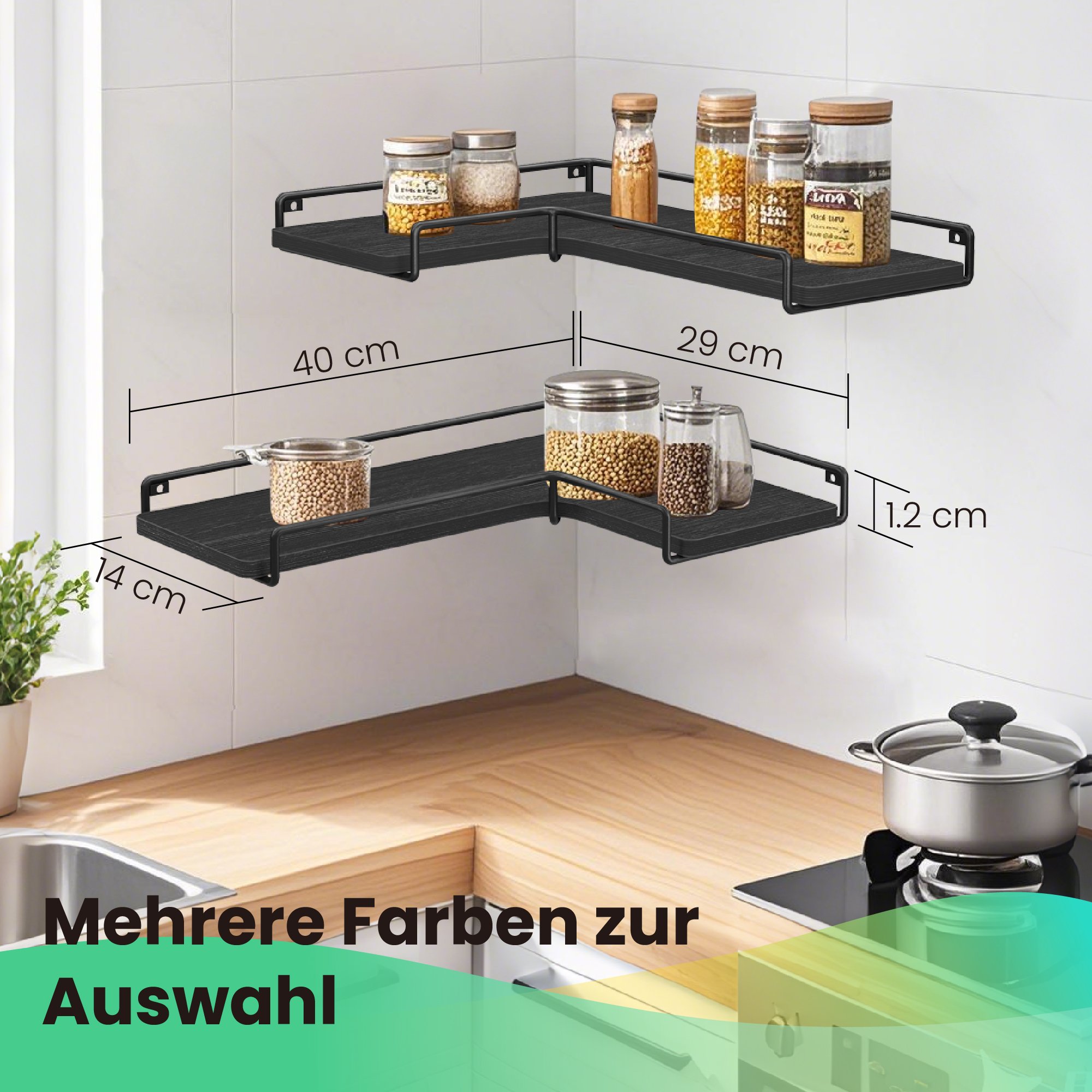 L-shaped corner shelf, set of 2, wall shelf, living room, bedroom, kitchen, industrial design, vintage brown-black