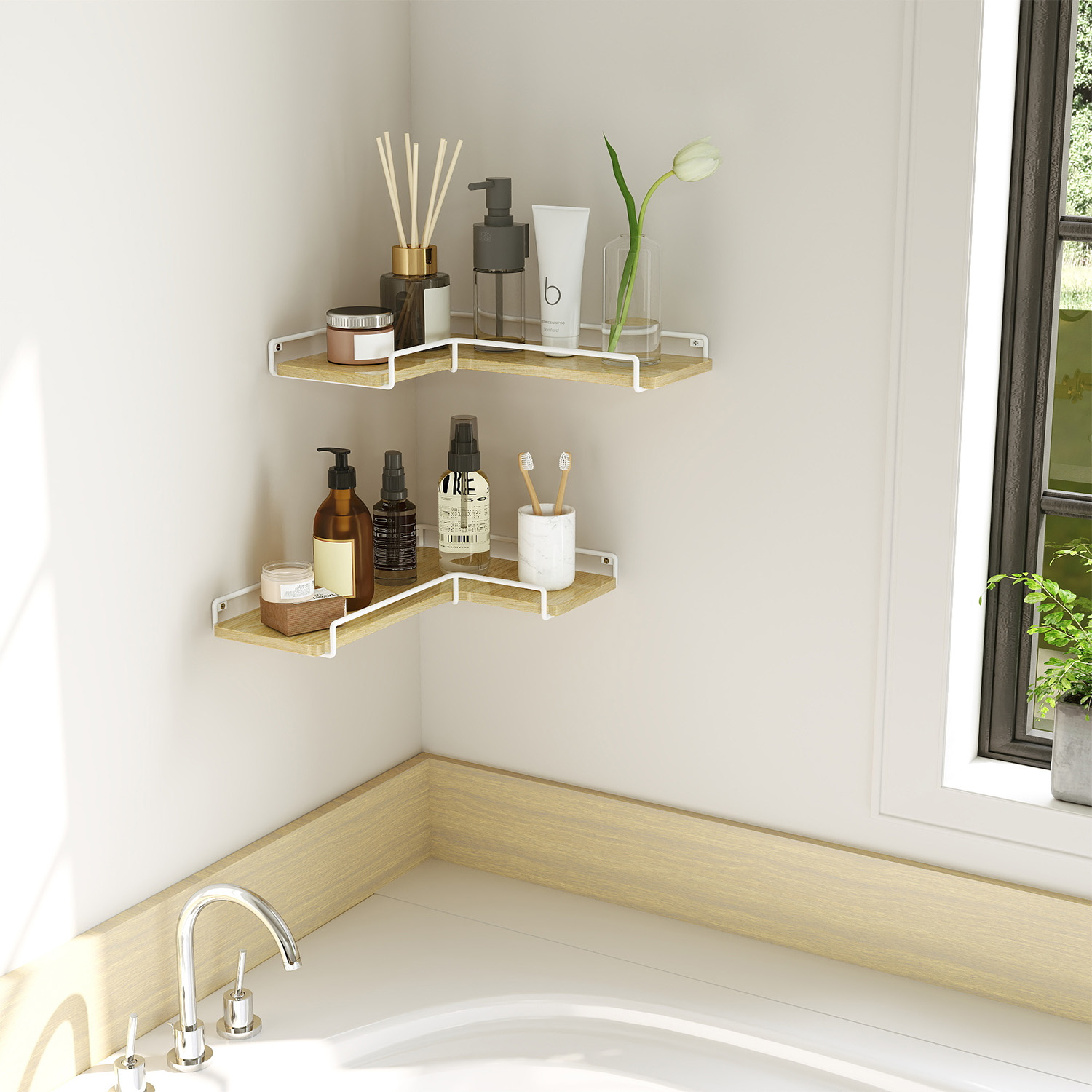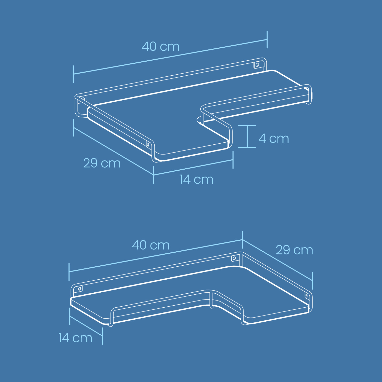L-shaped corner shelf, set of 2, wall shelf, living room, bedroom, kitchen, industrial design, vintage brown-black