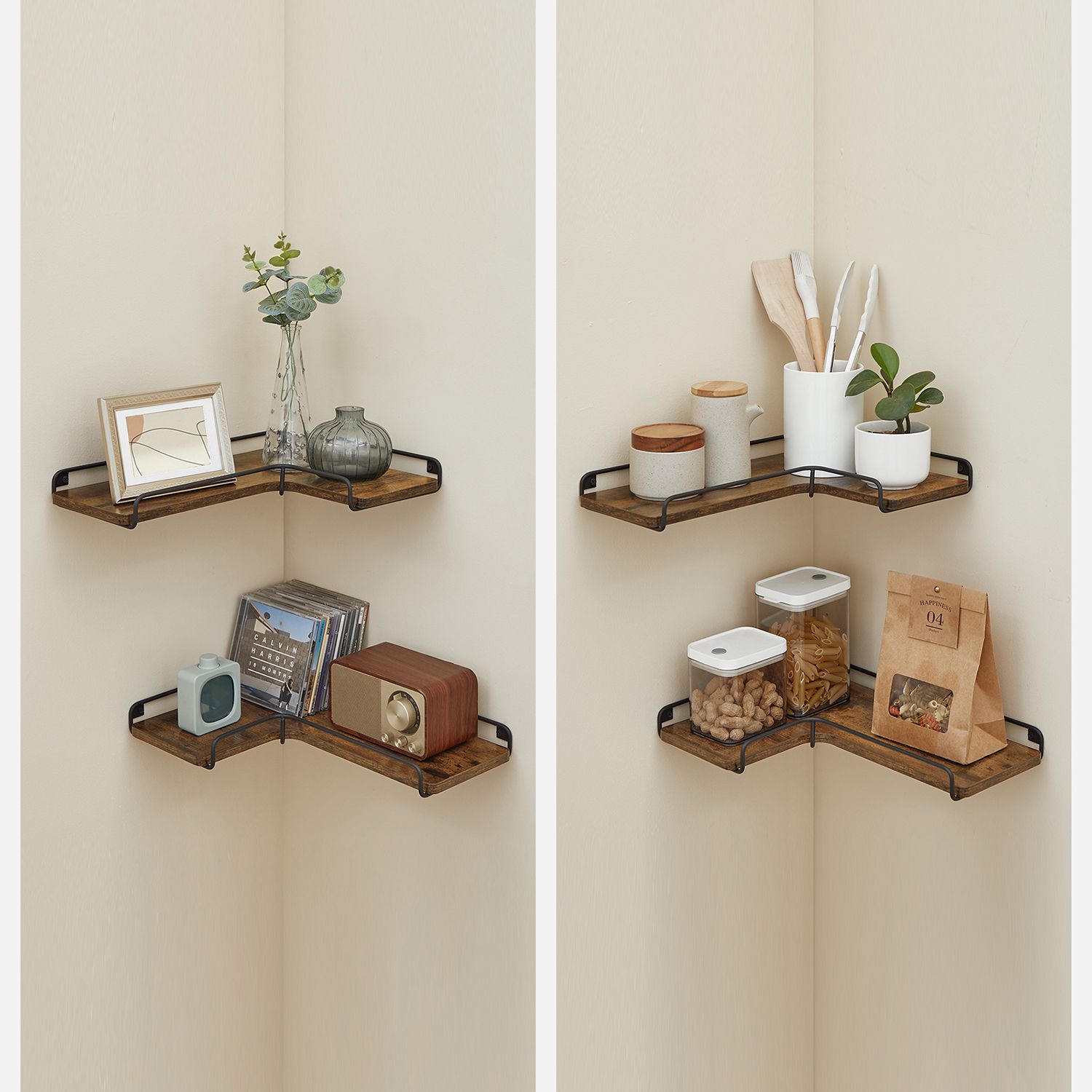 VASAGLE L-shaped corner shelf, set of 2, wall shelf, industrial design, shelves for the wall, for living room, bedroom, kitchen, vintage brown-black LLS831B01