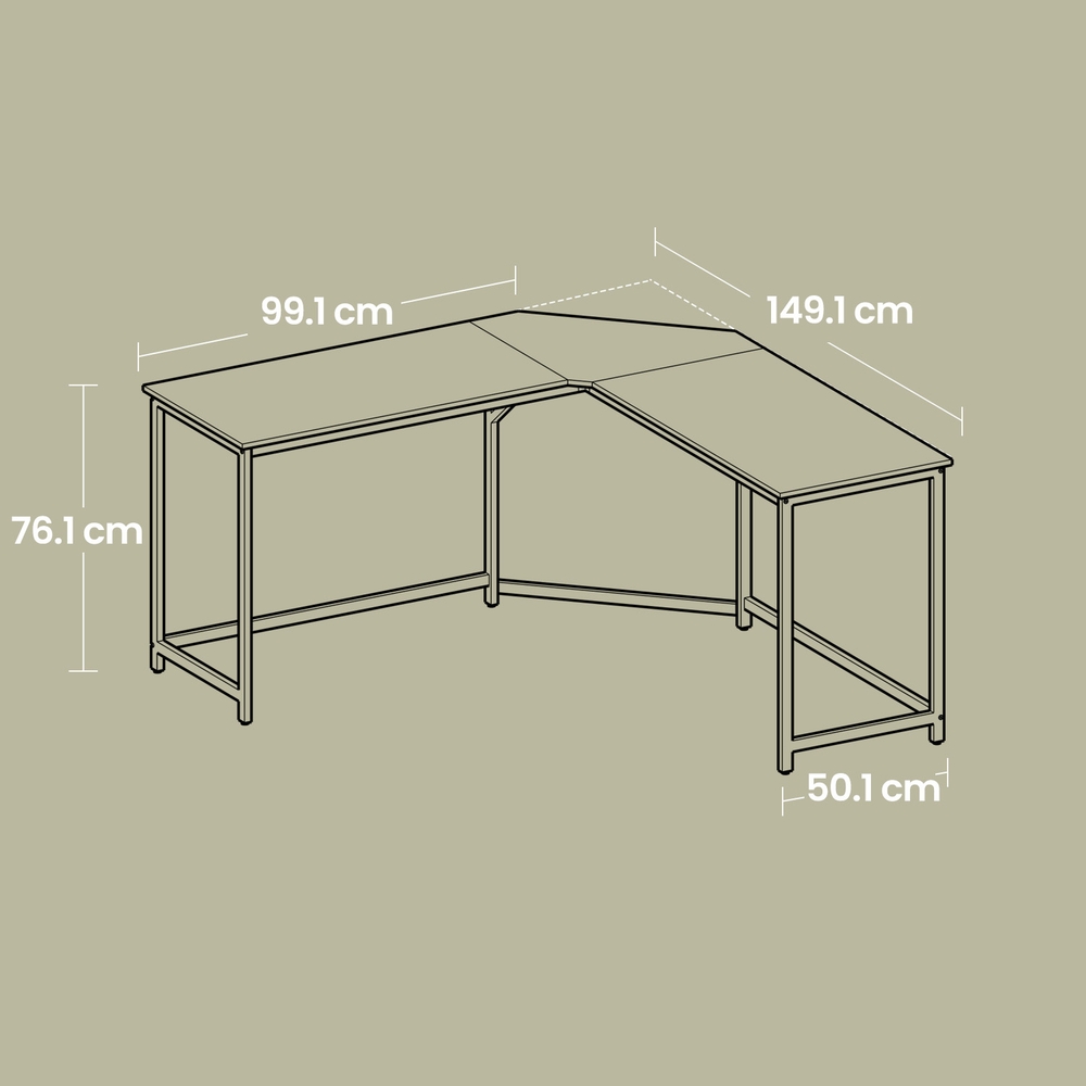 Product details: – Color: Vintage brown-black – Material: Chipboard, steel – Size: 149 x 149 x 75 cm (L x W x H) – Weight: 23.3 kg – Max. static load capacity: 50 kg Scope of delivery: – 1 x corner desk – 1 x accessory pack – 1 x instructions (DE, EN, FR, ES, IT) VASAGLE notes: – For safety reasons, children are not allowed to climb on or play with the product.