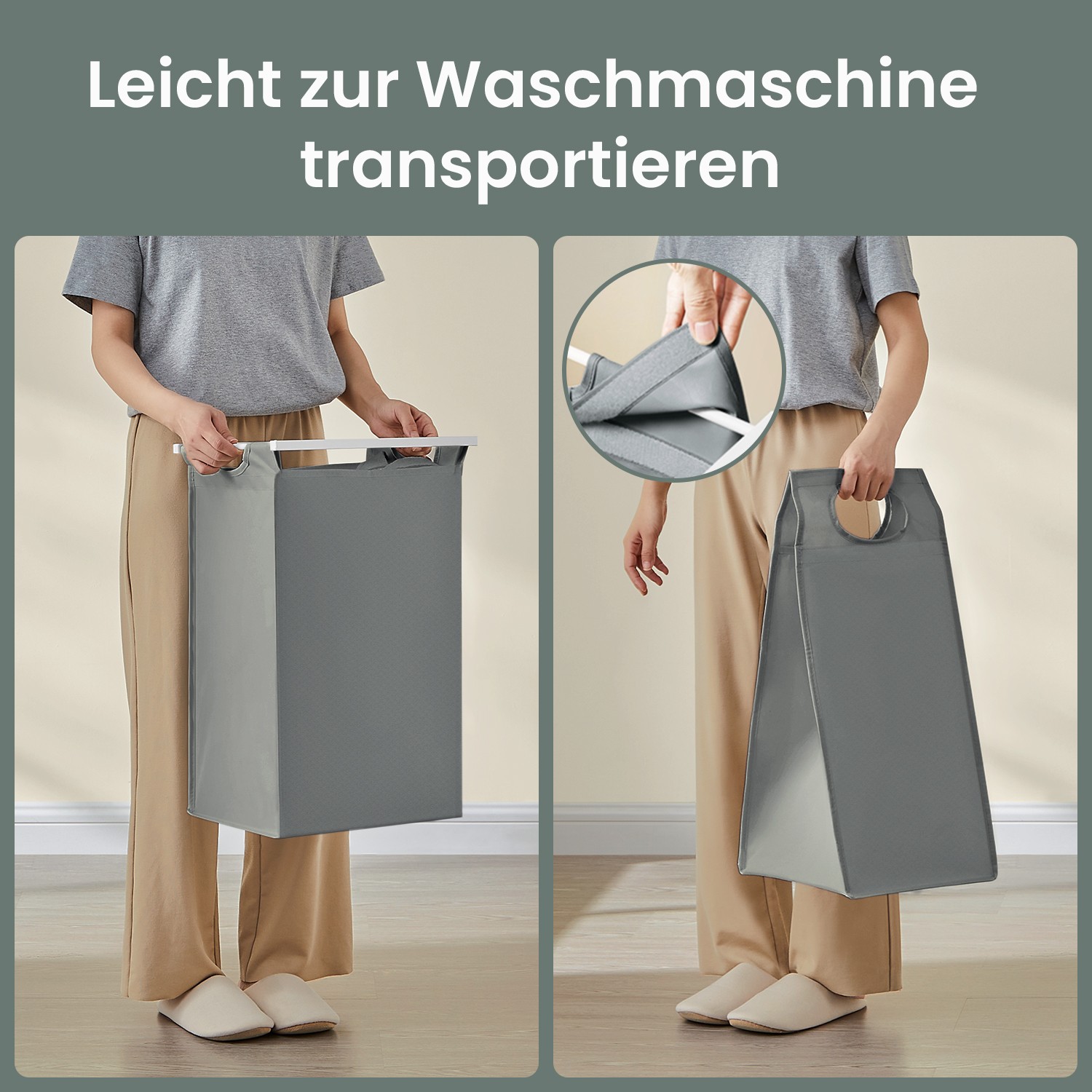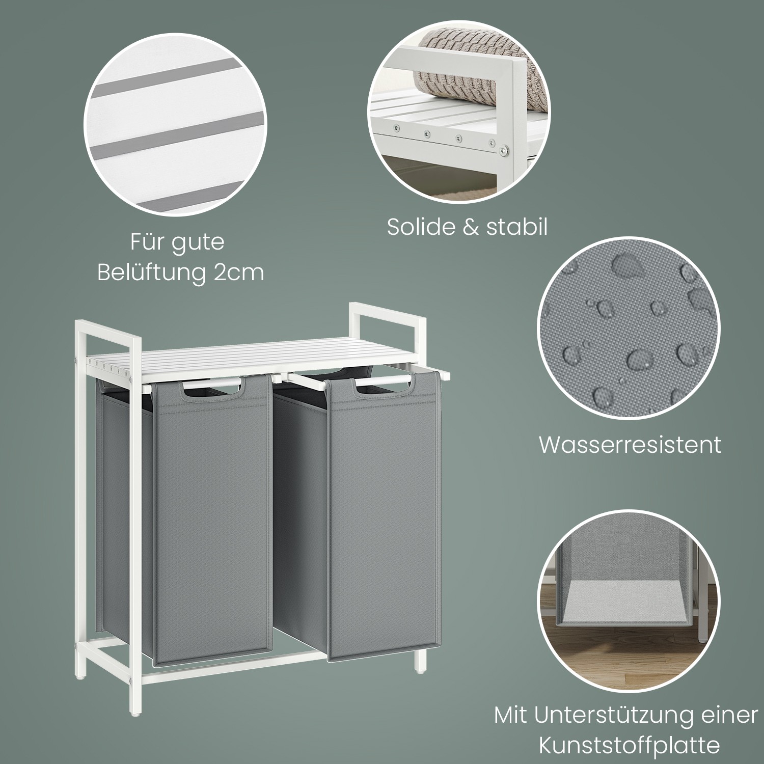 – Please attach this 2-compartment laundry basket to the wall using the included anti-tip device to ensure safe use.