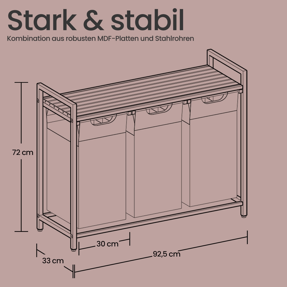 – Please attach this 3-compartment laundry basket to the wall using the included anti-tip device to ensure safe use.