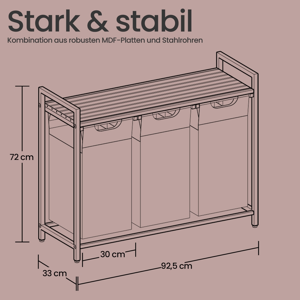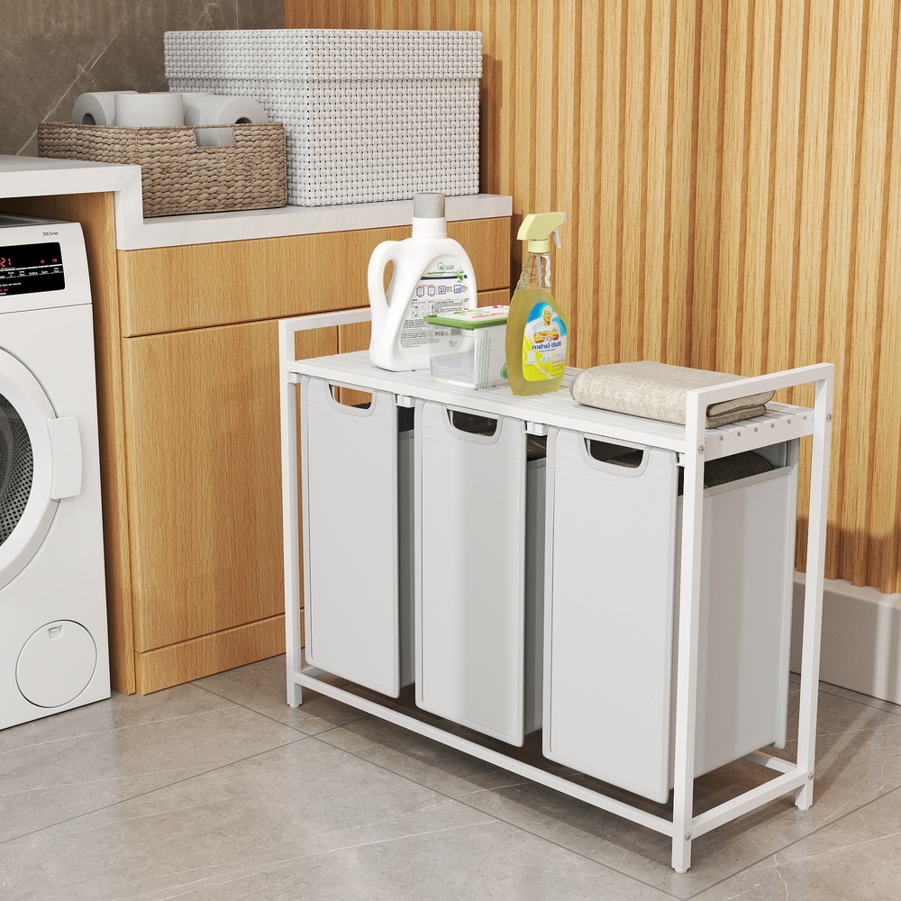 – Please attach this 3-compartment laundry basket to the wall using the included anti-tip device to ensure safe use.