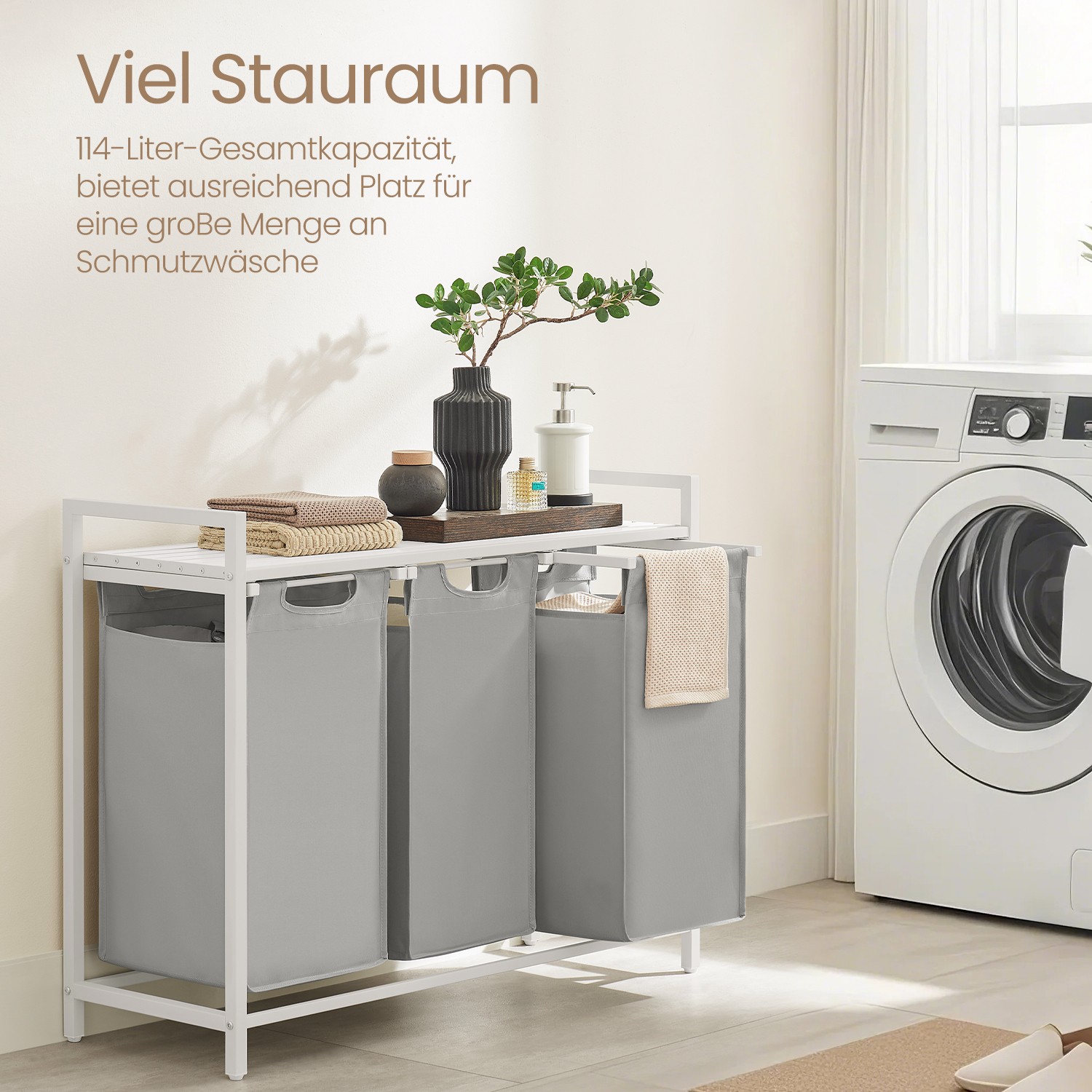 Laundry basket with 4 compartments, laundry collector with shelf, laundry box, removable laundry bag, metal frame, 4 x 40 L, vintage brown-black