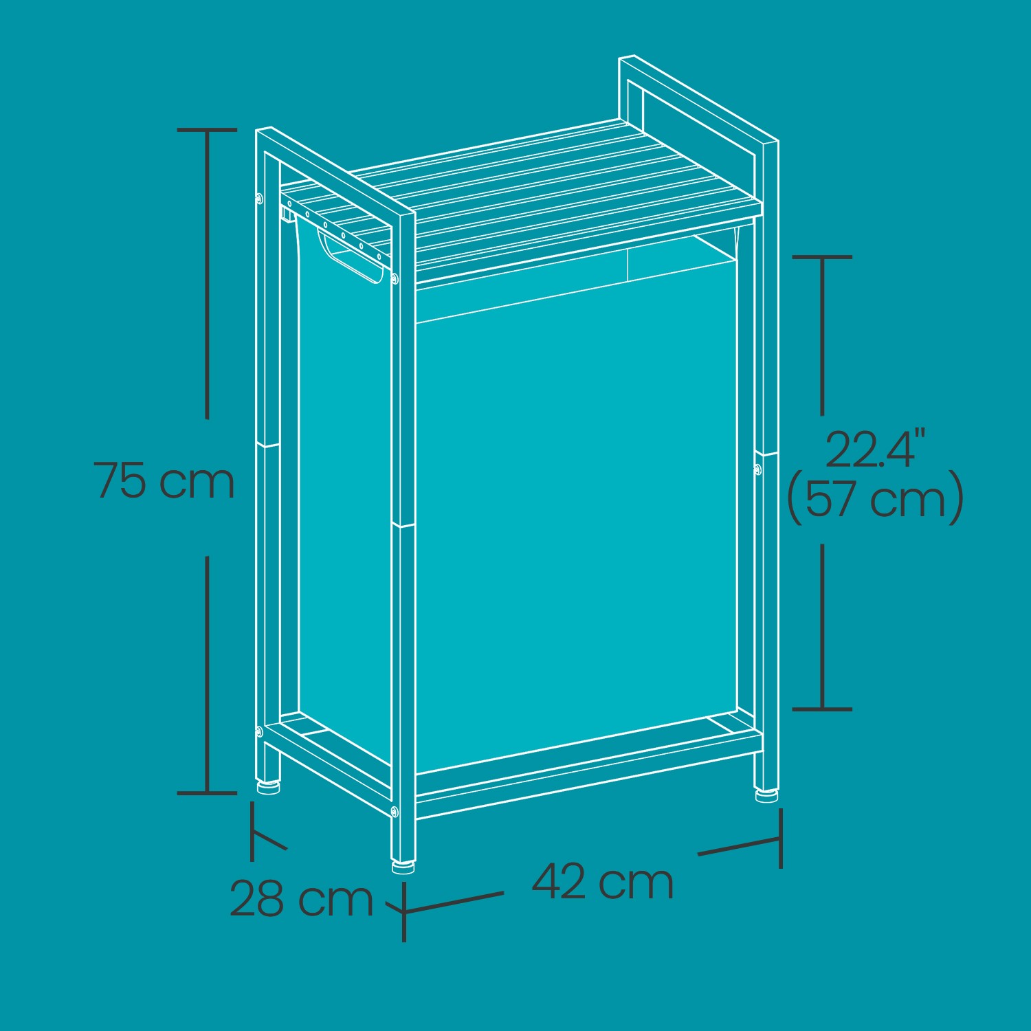 – Overall dimensions: 42 x 28 x 75 cm (L x W x H)