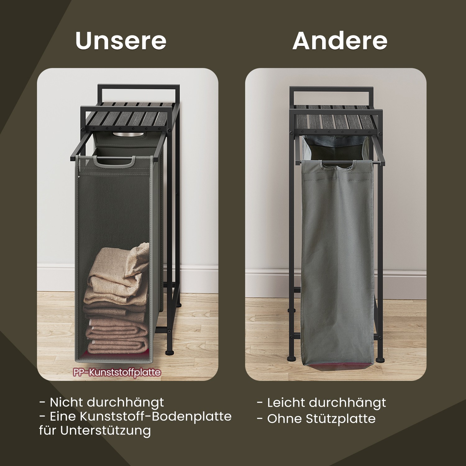 Laundry basket with 2 compartments, laundry collector with shelf, laundry box, laundry bag made of Oxford fabric, extendable and removable, 2 x 46 L, vintage brown-gray