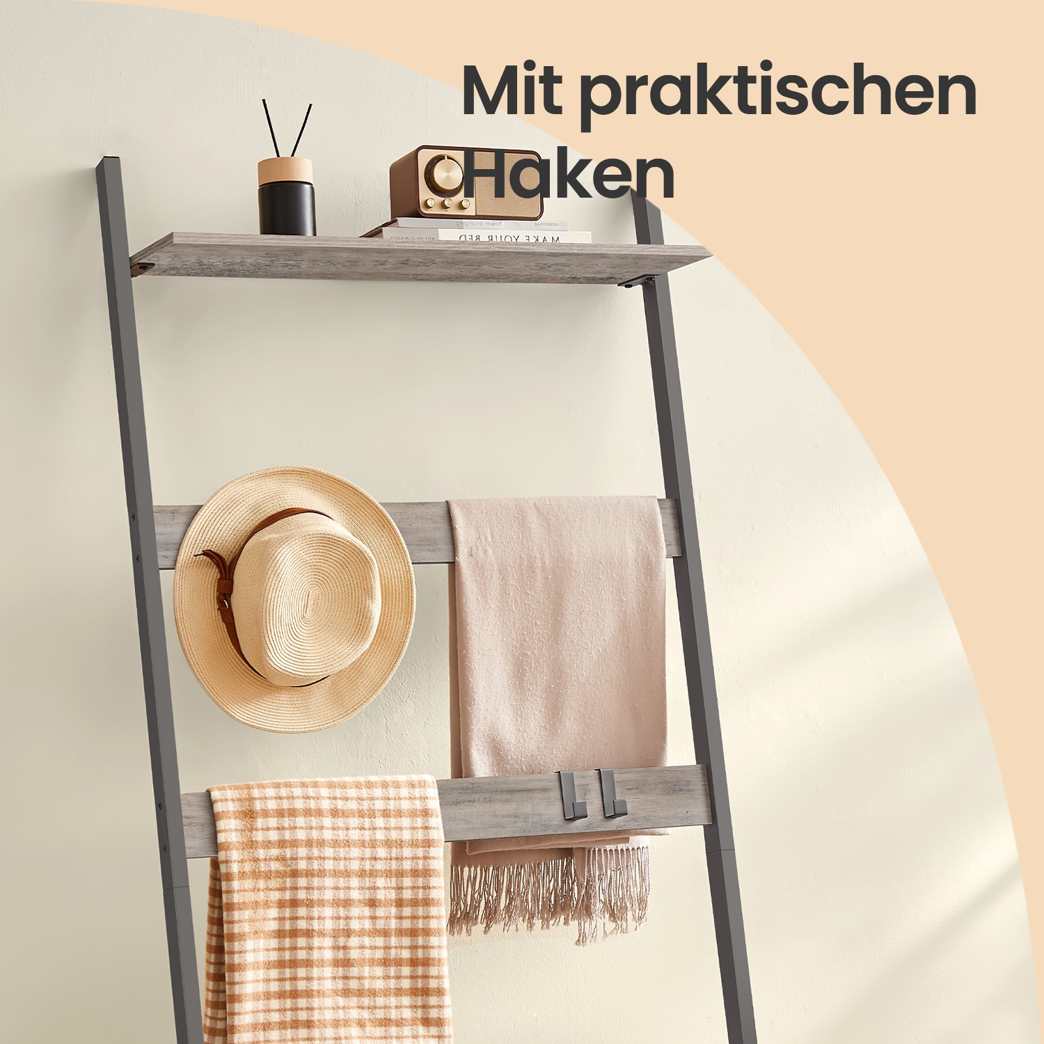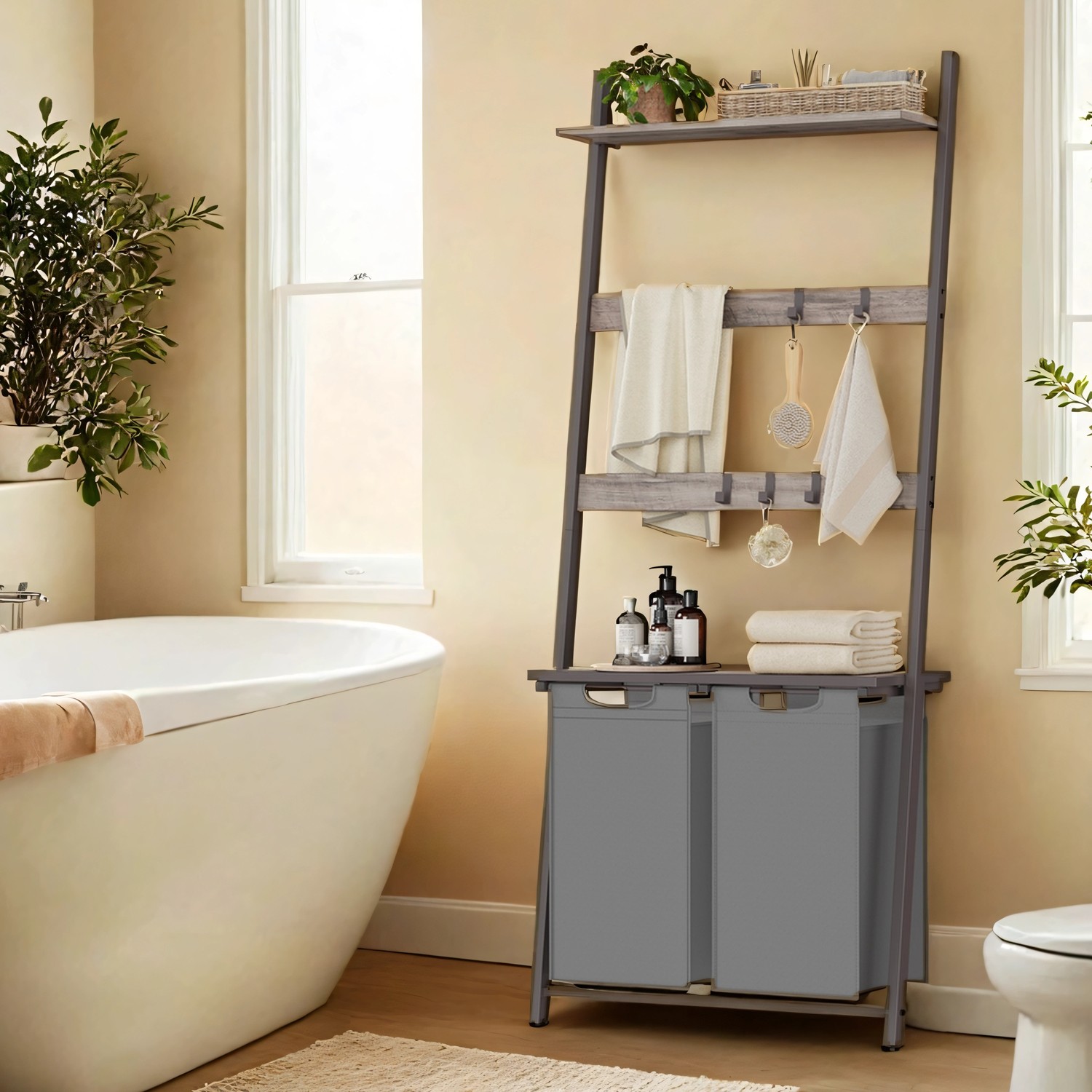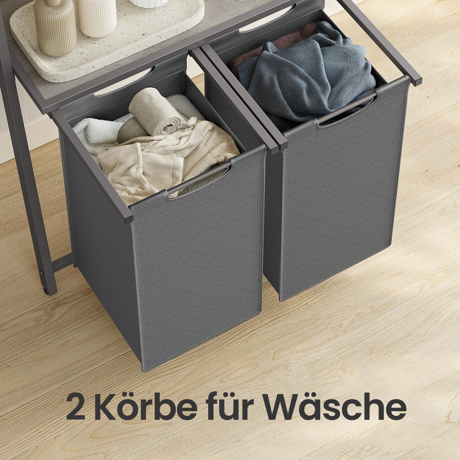 VASAGLE laundry basket with towel ladder, towel rack with laundry collector, 73 x 33 x 177 cm, towel holder, laundry sorter with 2 compartments, ladder shelf, bathroom furniture