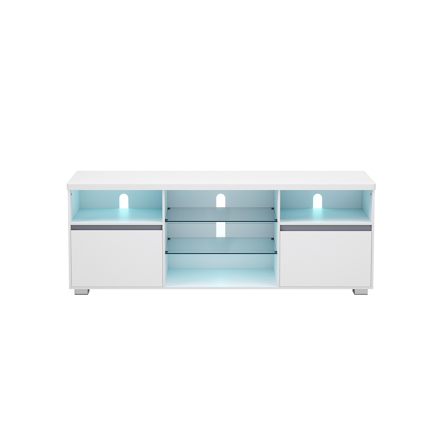 VASAGLE TV cabinet with LED lighting, TV table, TV stand for TVs up to 70 inches, with open shelves, 2 cabinets with doors, 160 cm, for living room