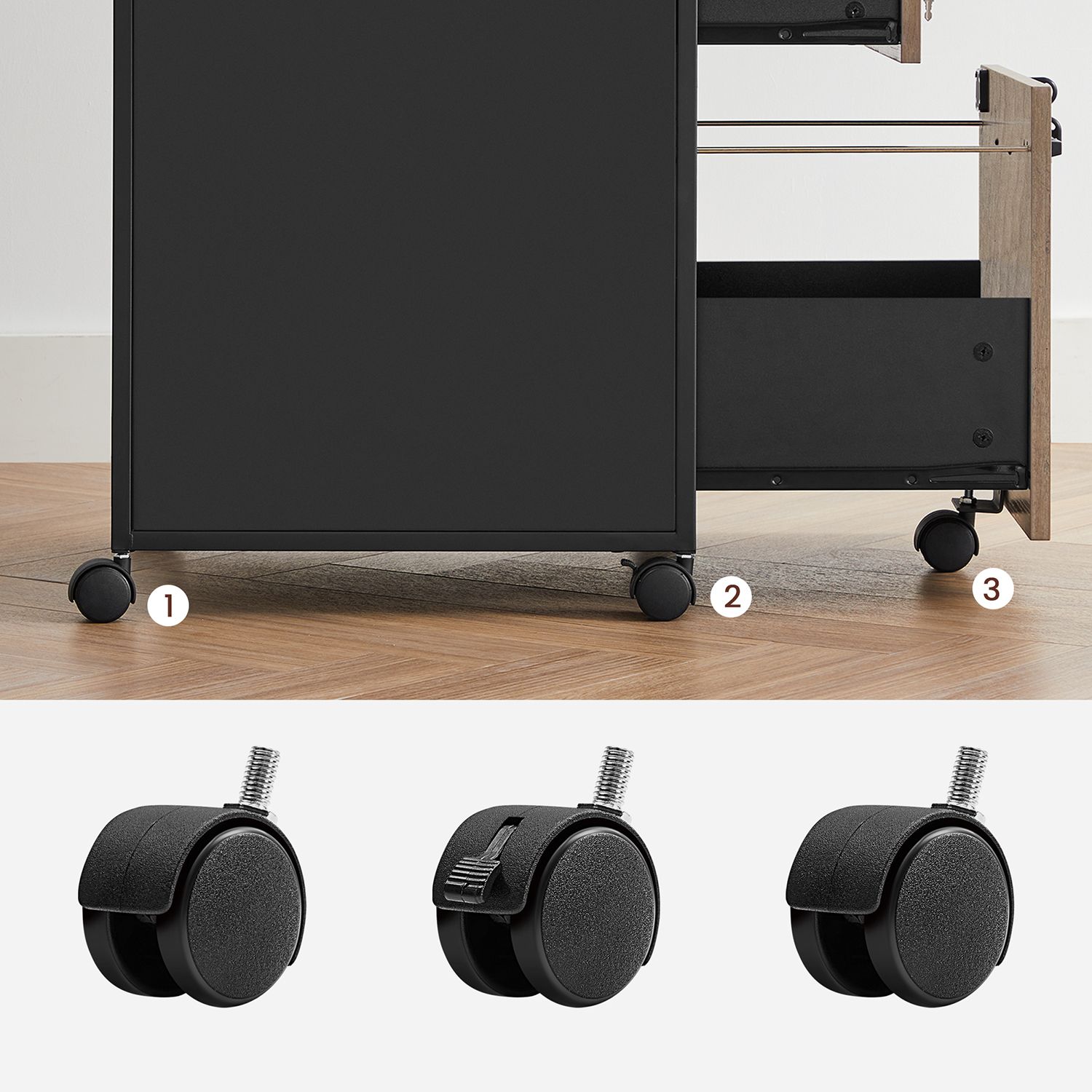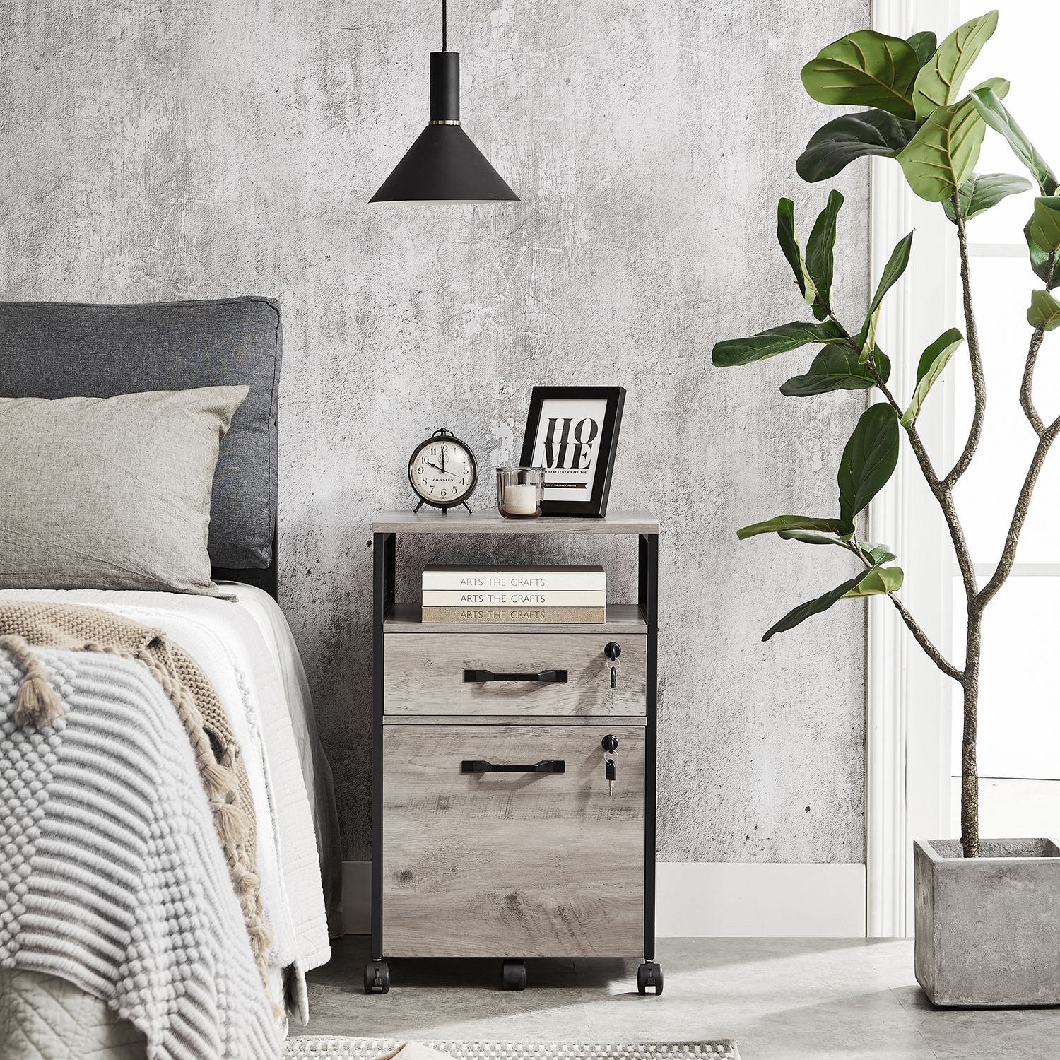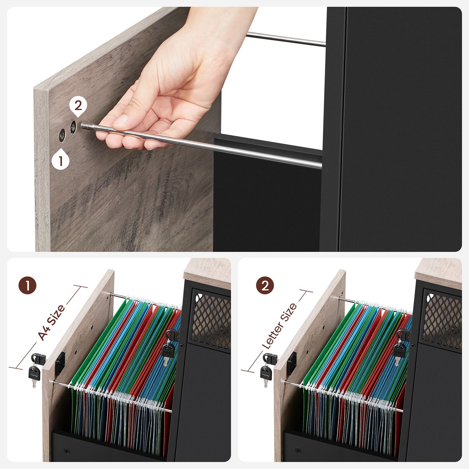 Product details: – Color: Greige-Black – Material: Chipboard, Steel – Size: 44 x 42 x 69 cm (D x W x H) – Weight: 17.4 kg – Max. static load capacity: 60 kg Scope of delivery: – 1 x filing cabinet – 1 x accessory pack – 1 x instructions VASAGLE Notes: – For safety reasons, children are not allowed to climb on or play with the product. – The maximum static load capacity of this product is 60 kg. Please do not exceed this maximum weight.