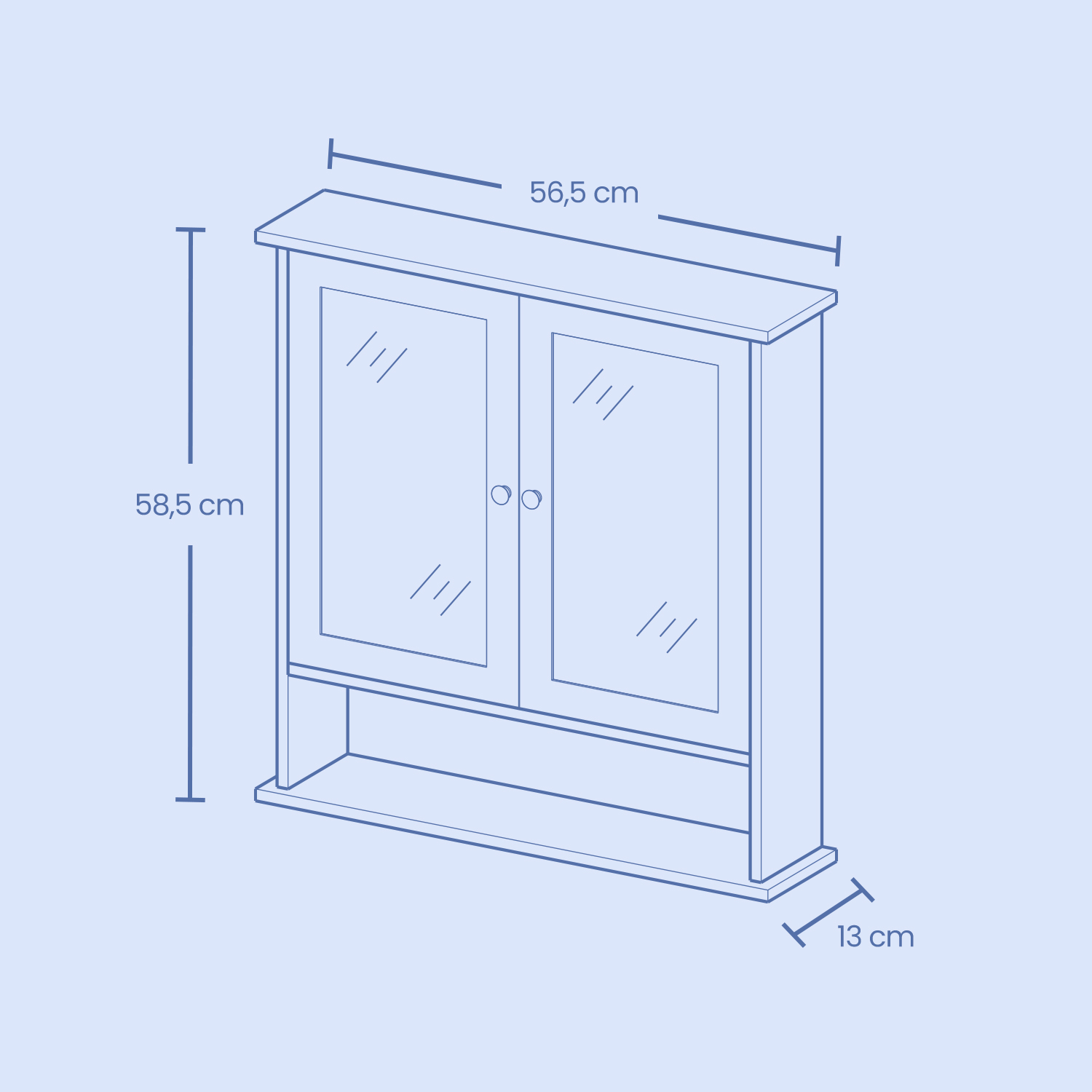 Mirror cabinet, bathroom cabinet, wall cabinet, wall-mounted cabinet with 2 mirror doors and open compartment, wall mounting, 13 x 56.5 x 58.5 cm, white
