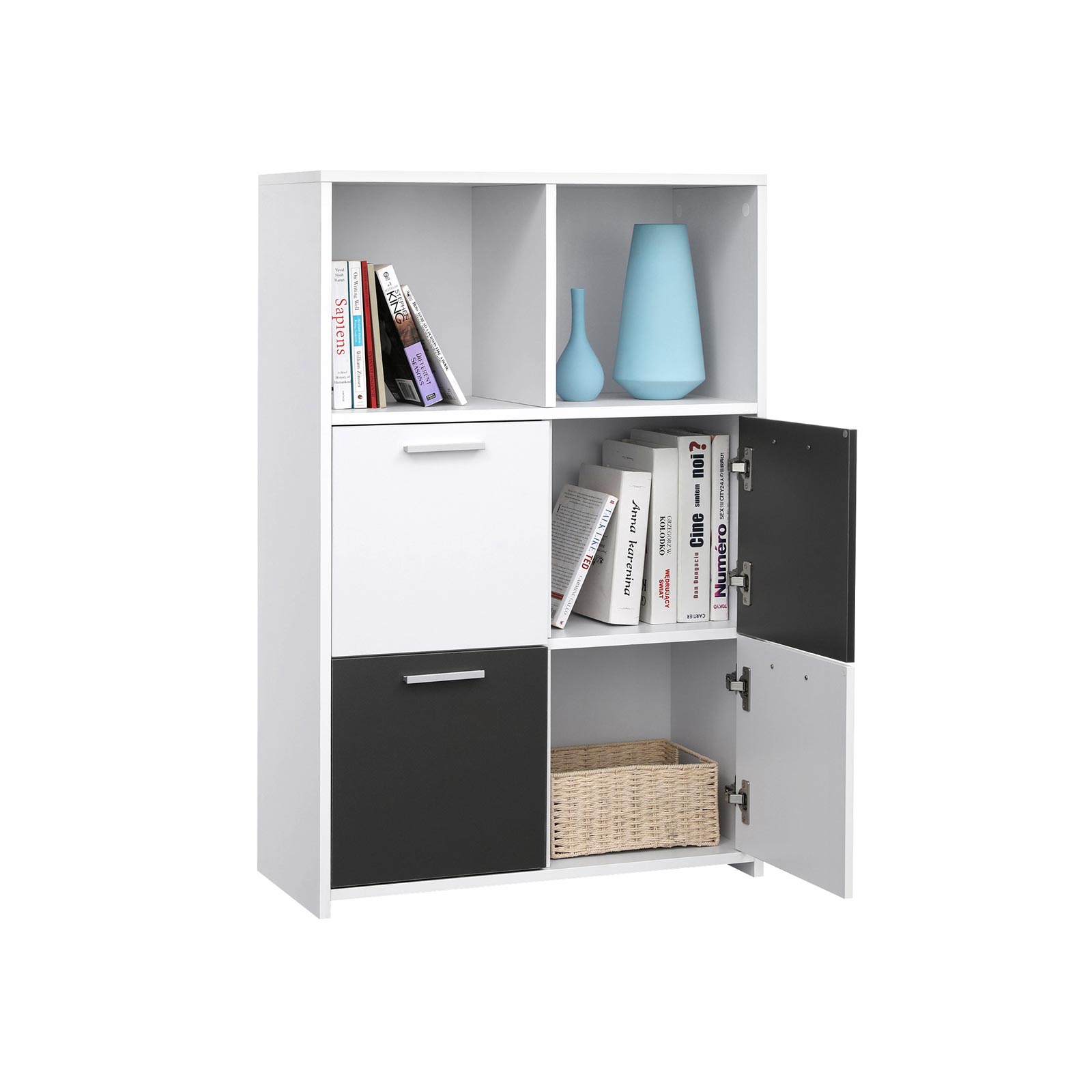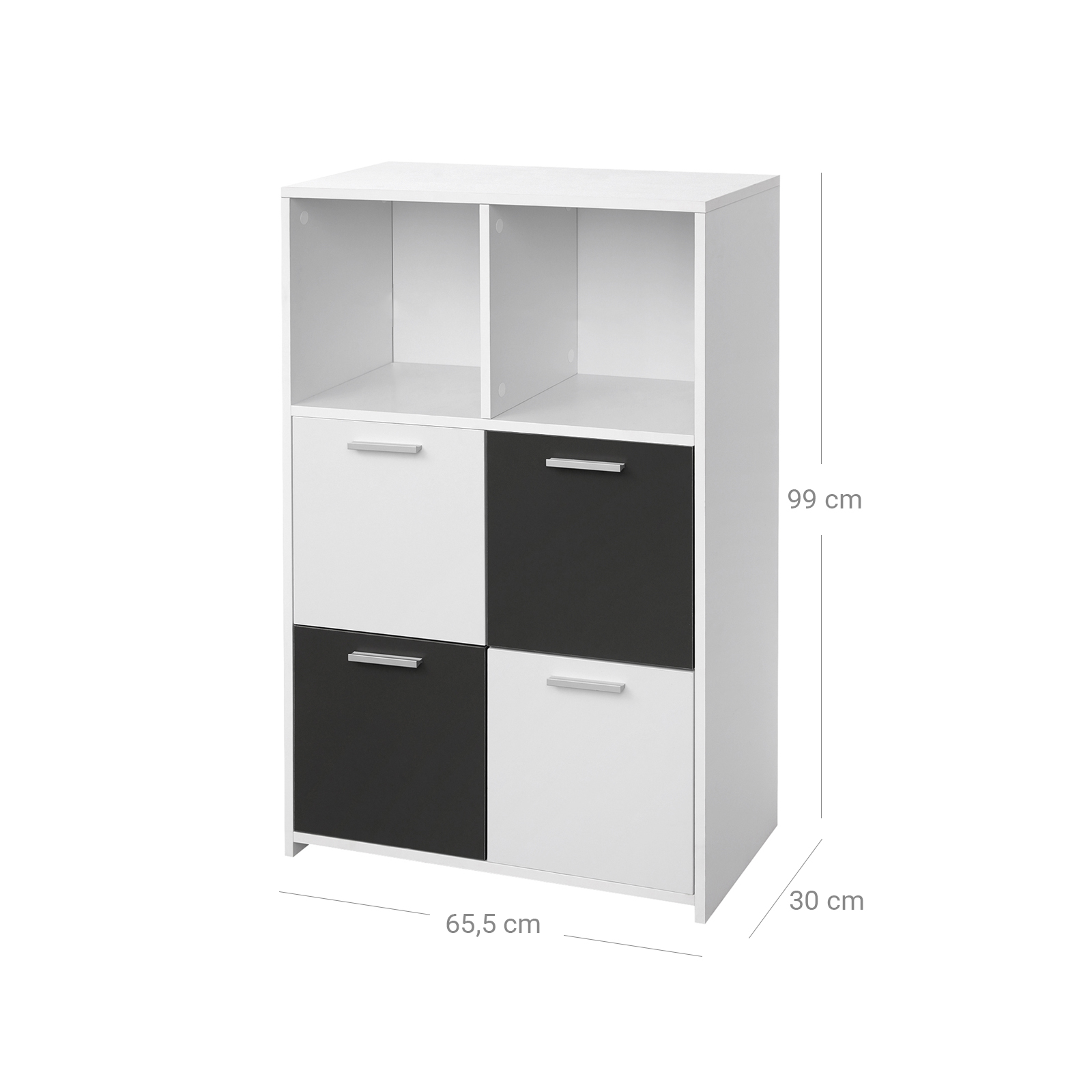 Modern, charming, and practical, this bookcase has 2 open and 4 closed compartments. The white and gray color combination also makes this shelf an eye-catching addition to your home. Get this standing shelf and it will not only provide you with plenty of storage space, but also add a personal touch to your room.If you like this storage cabinet, don’t miss out! Product details: – Color: White-gray – Material: Chipboard with melamine veneer – Size: 65.5 x 30 x 99 cm (L x W x H) – Weight: 22.9 kg – Max. static load capacity per compartment: 15 kg Scope of delivery: – 1 x bookshelf – 1 x container with accessories – 1 x instructions (DE, EN, FR, ES, IT) VASAGLE notes: – Children must not climb on, pull on, or play with the product. – Assemble the product strictly according to the instructions. – Please do not use the product outdoors or expose it to rain. – Please secure the product to the wall using the anti-tip device provided. – Please lift the table when moving it. Do not drag it across the floor.
