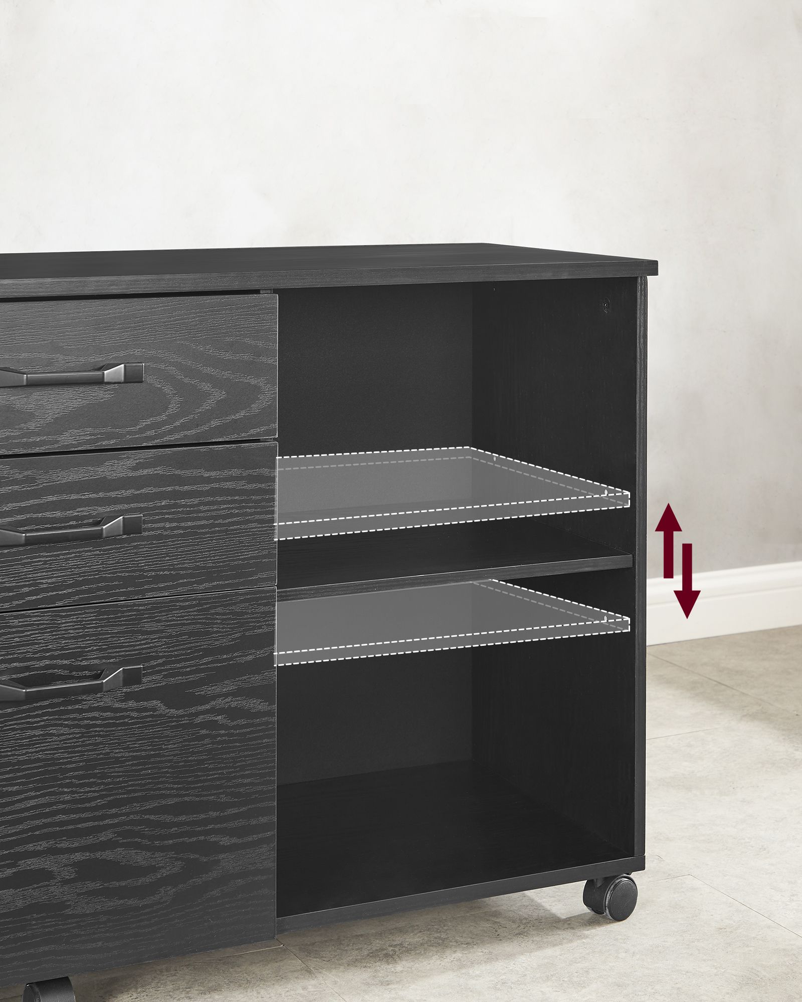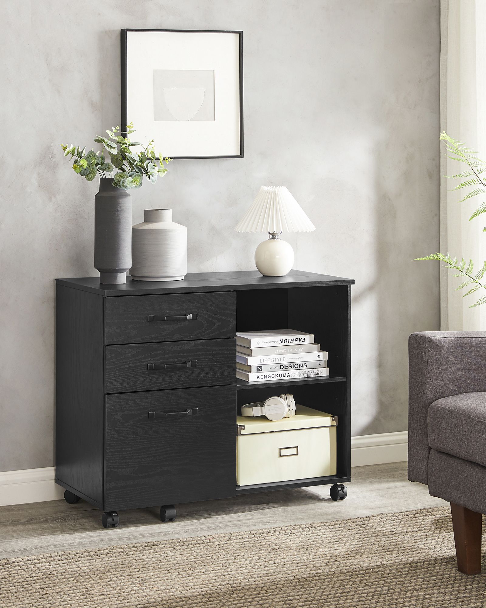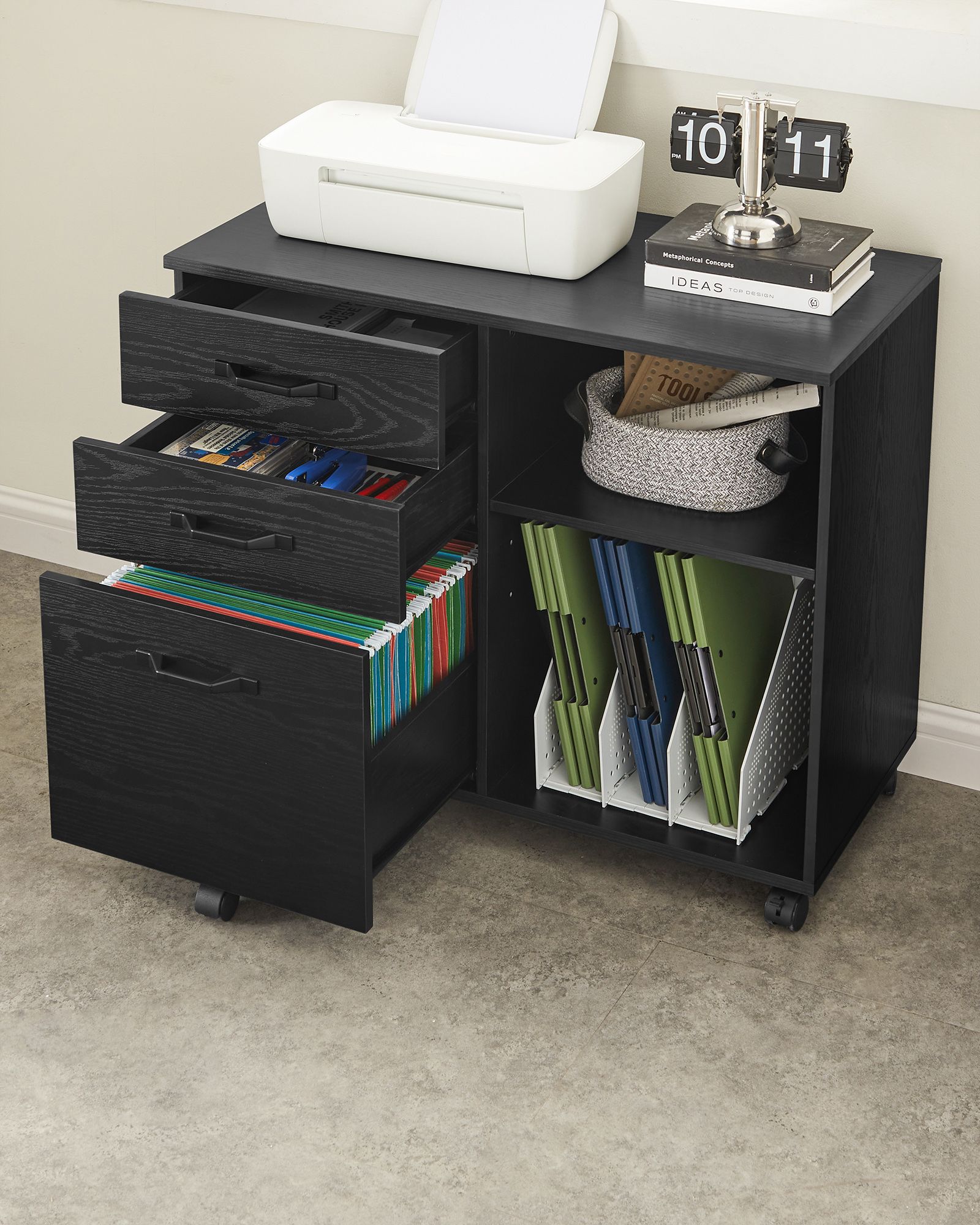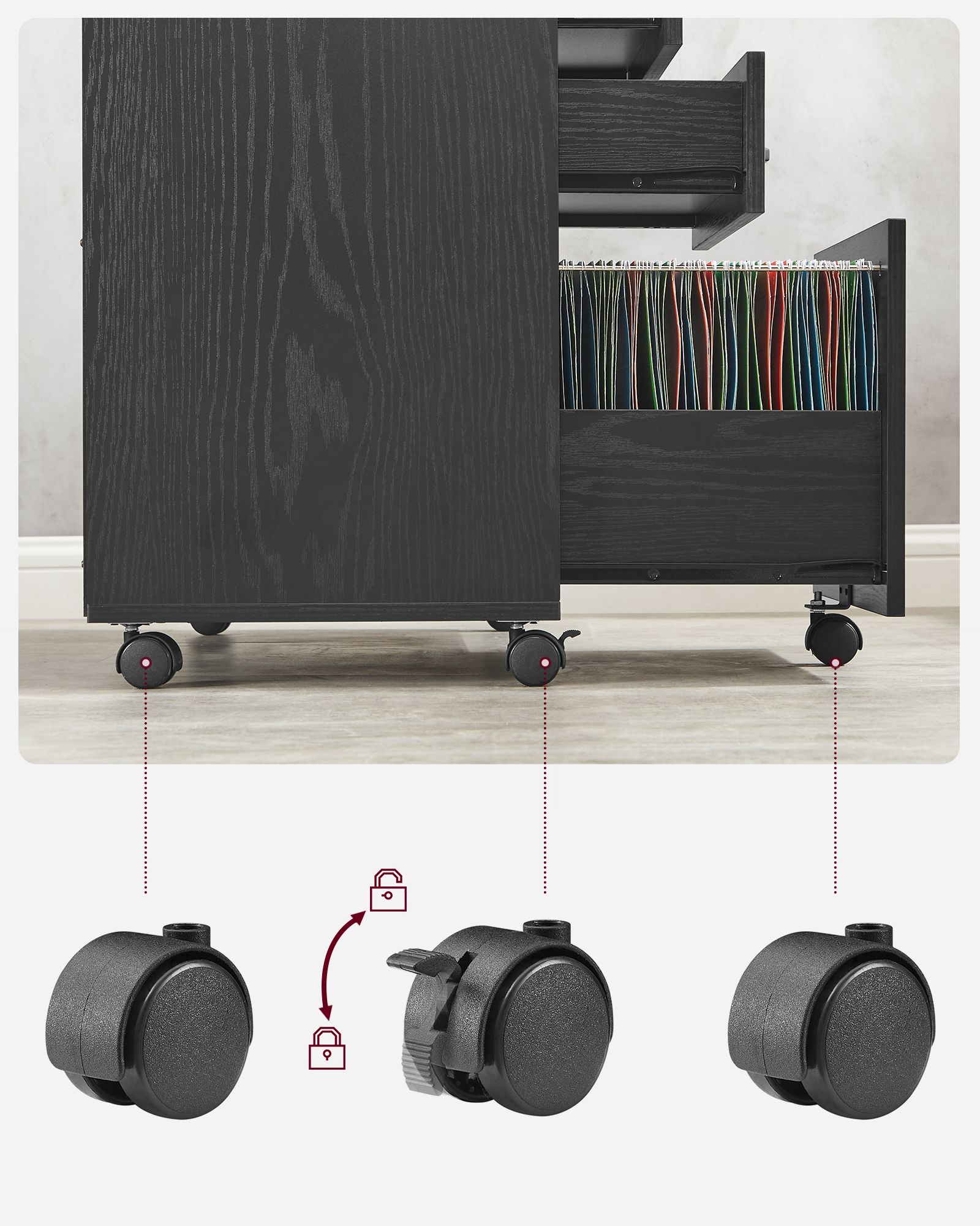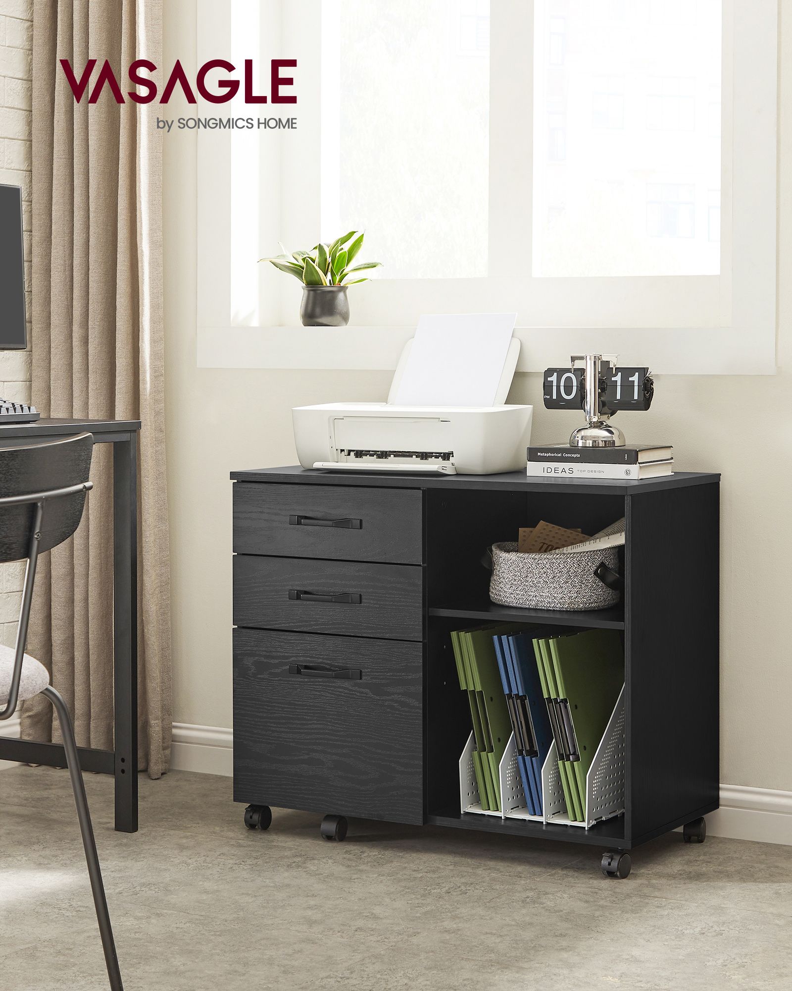 VASAGLE filing cabinet, mobile container, with casters and 3 drawers, for documents in DIN A4, letter format, printer stand, industrial style, vintage brown-black OFC041B01