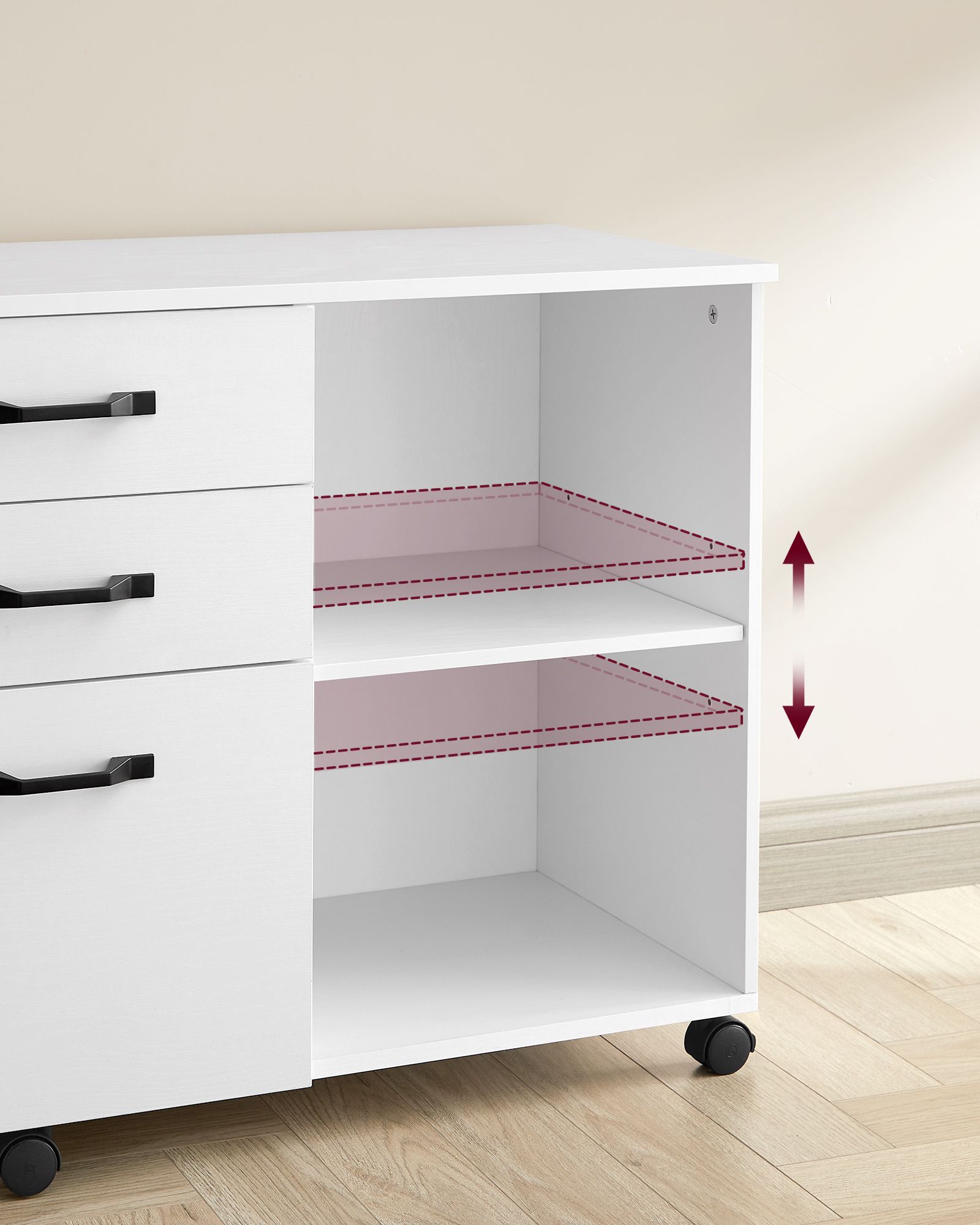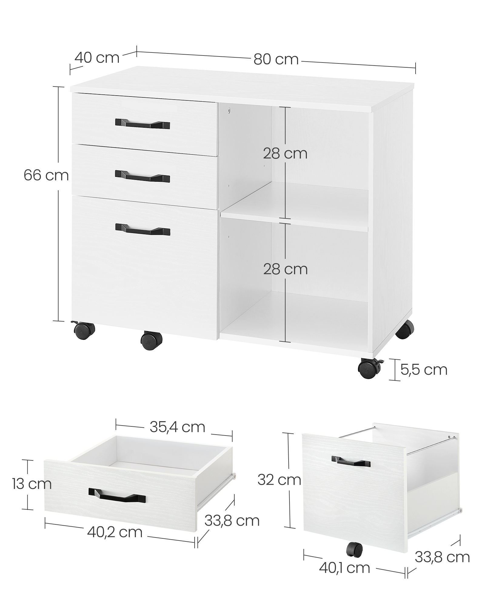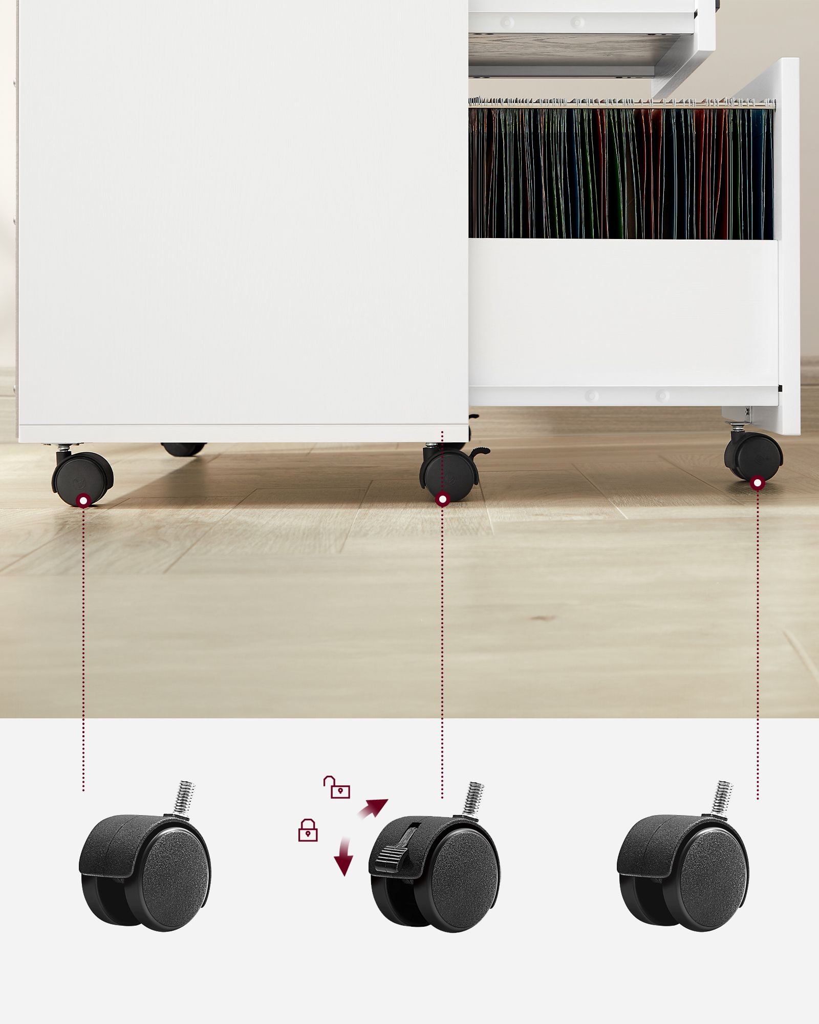 VASAGLE filing cabinet, mobile container, with casters and 3 drawers, for documents in DIN A4, letter format, printer stand, industrial style, vintage brown-black OFC041B01