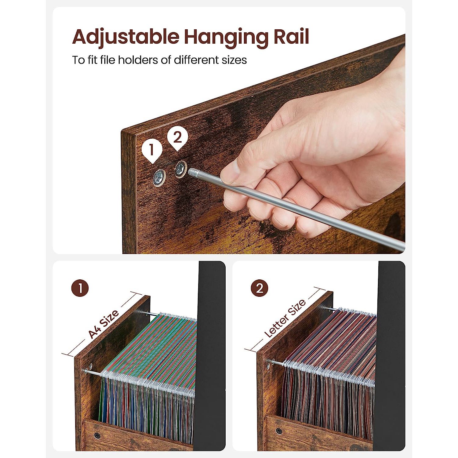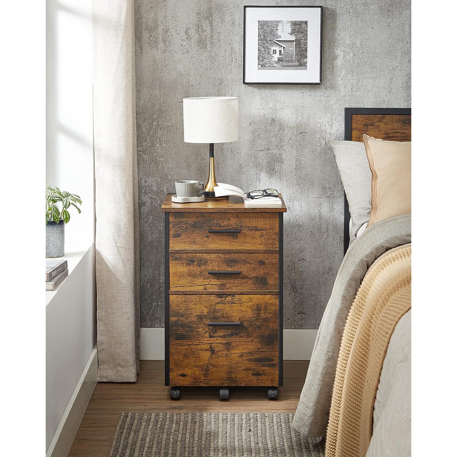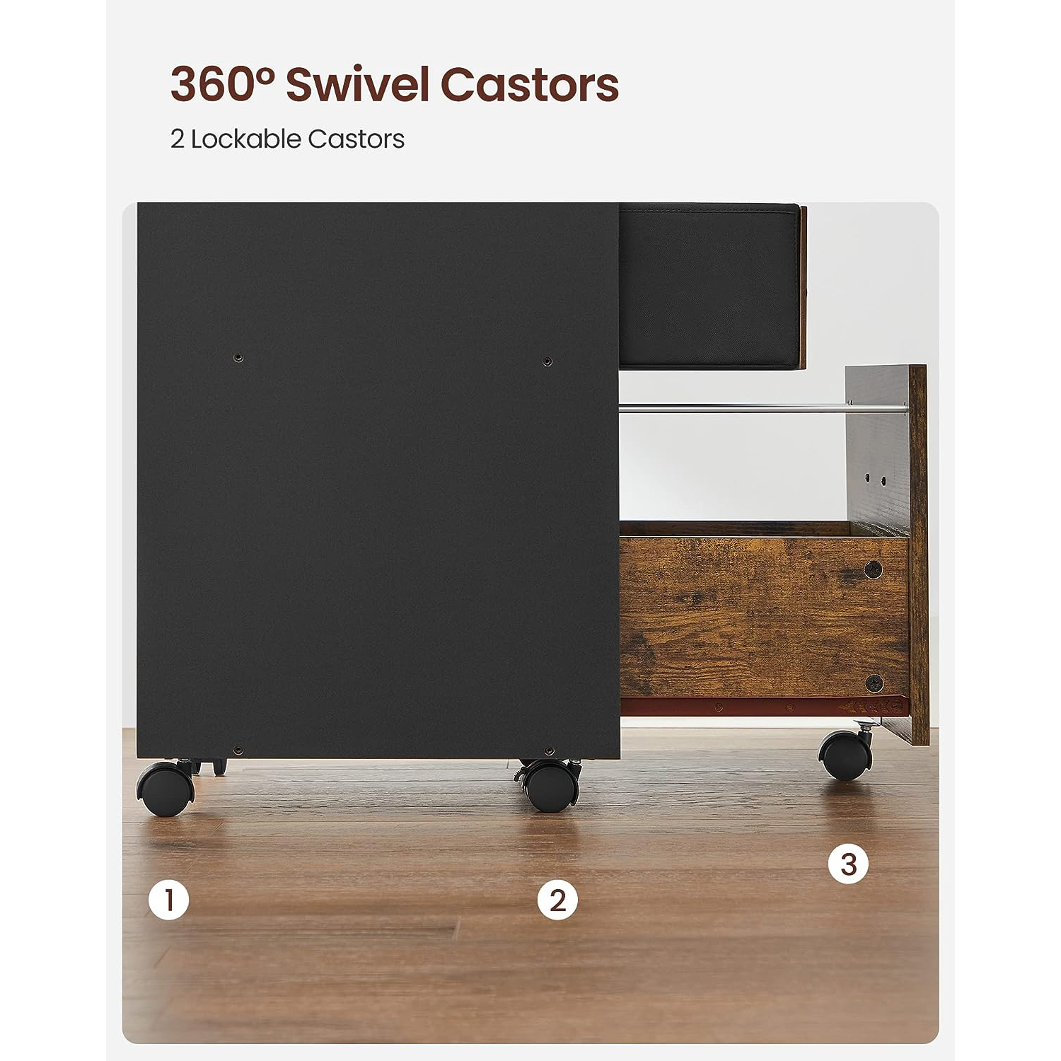 VASAGLE rolling container, filing cabinet, office cabinet with 3 drawers, 2 of which are made of fabric, 1 drawer made of chipboard, with casters, for office, study, bedroom, vintage brown-black OFC046B01
