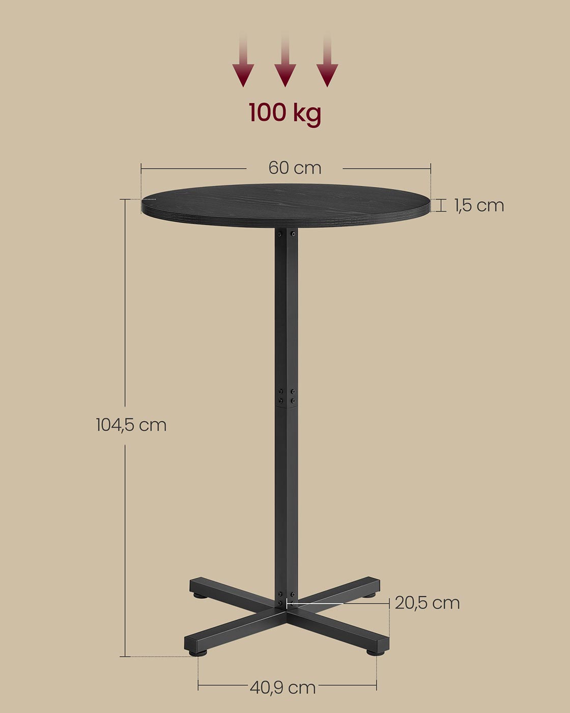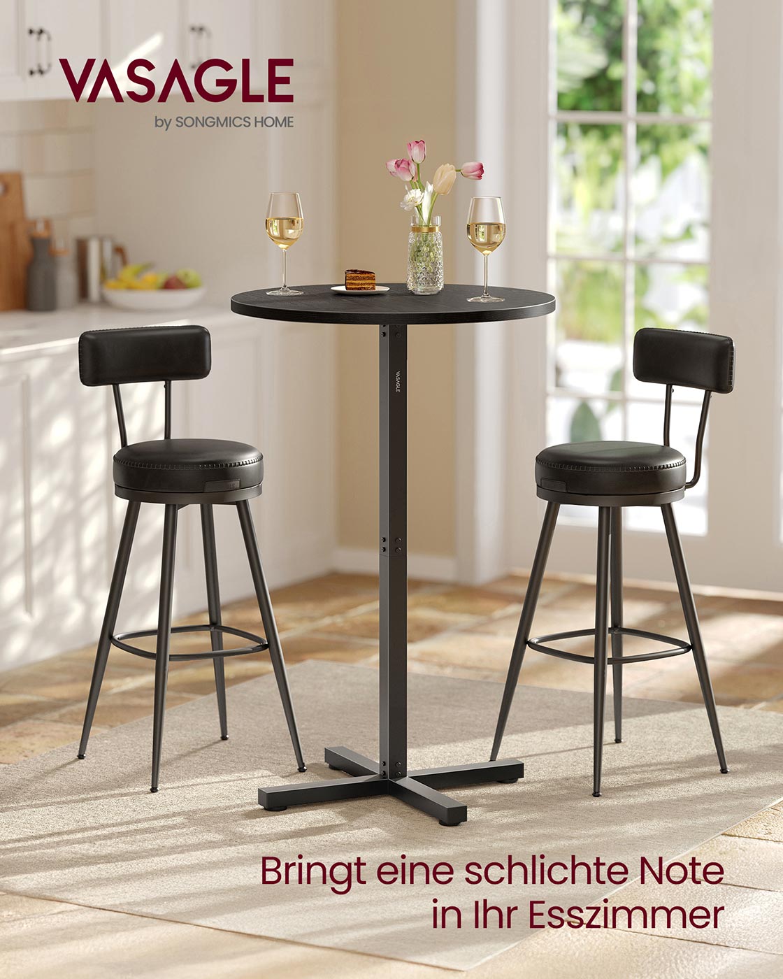 VASAGLE bar table, standing table, round bistro table, indoor balcony table, small high table for home bar, living room, and dining room, 60 x 60 x 104.5 cm, easy assembly, ebony black LBT361B01