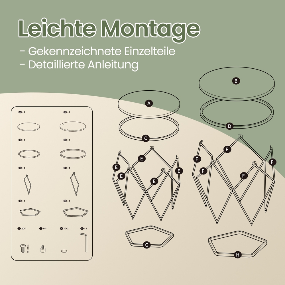VASAGLE Round coffee table, set of 2, living room table, side table, modern, removable tabletop, for living room