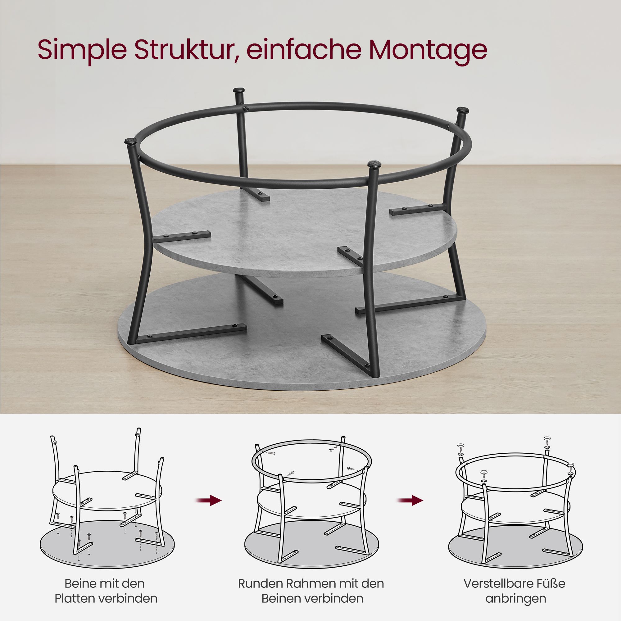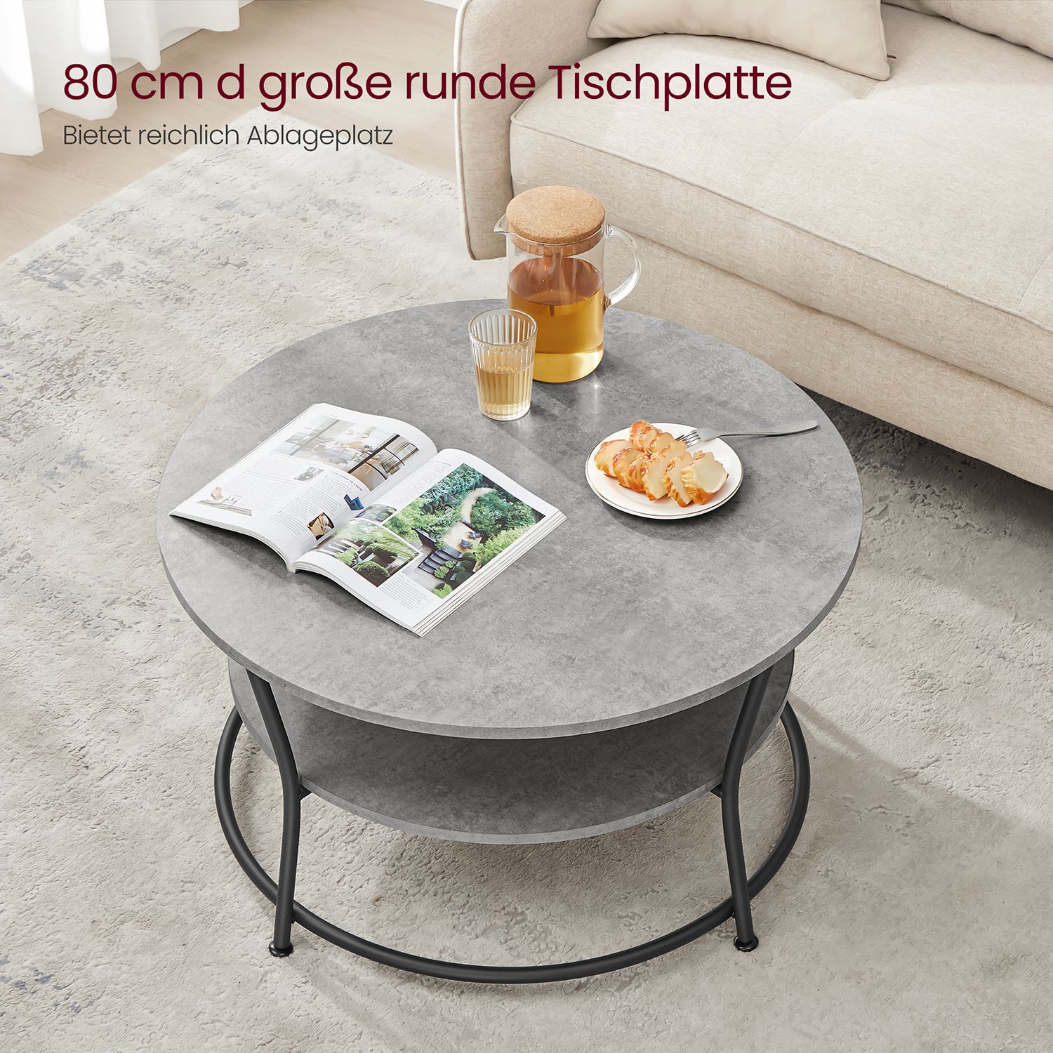 VASAGLE Round coffee table with shelf Industrial design