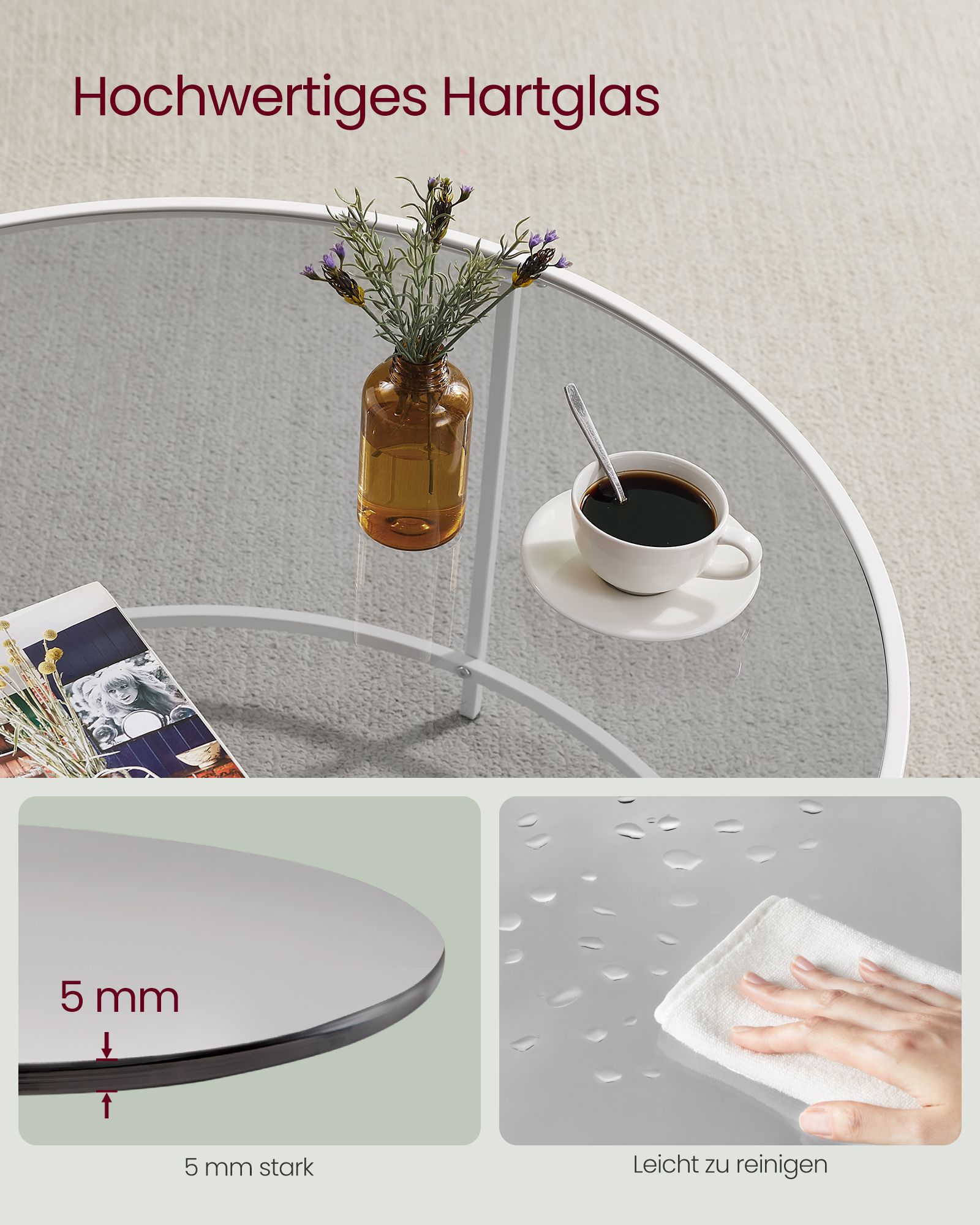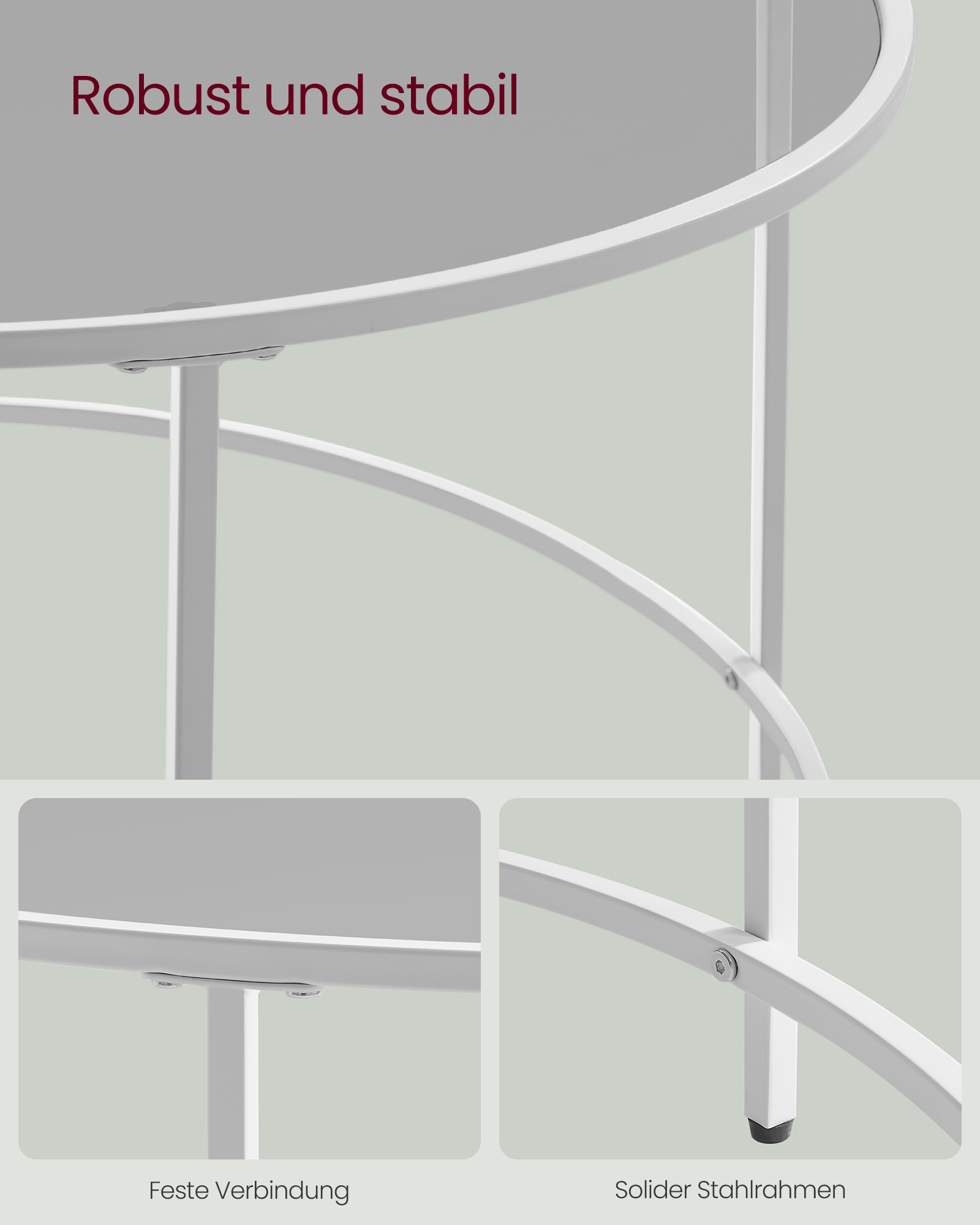 Be the first to review “VASAGLE Round coffee table with steel frame in pearl white and slate gray”