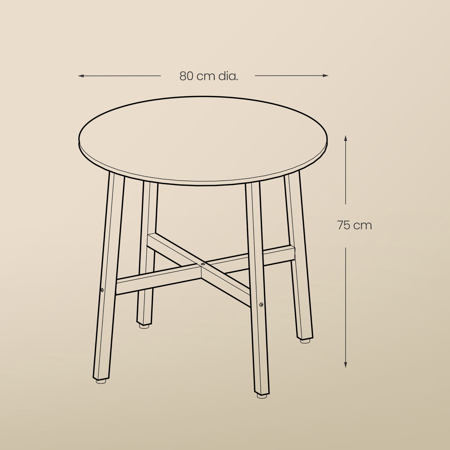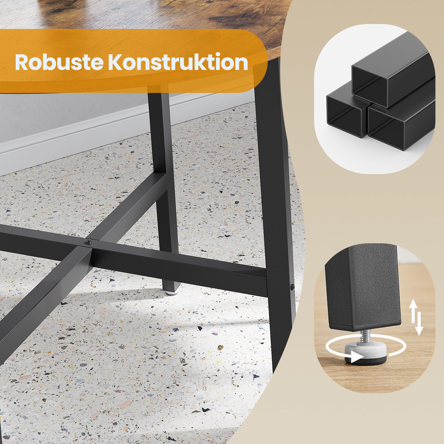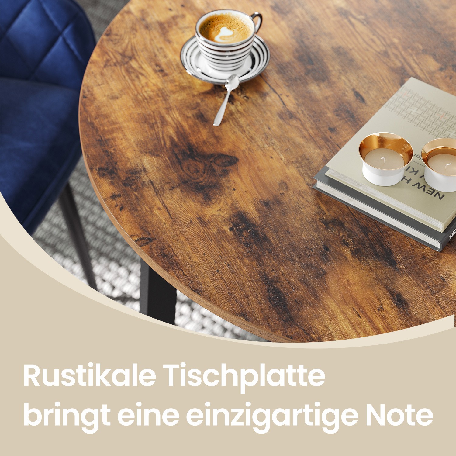 Product details: – Color: Vintage brown-black – Material: Chipboard, steel – Size: 80 x 75 cm (Ø x H) – Weight: 10.8 kg – Max. static load capacity: 100 kg Scope of delivery:- 1 x round dining table – 1 x accessory package – 1 x anti-tip device – 1 x instructions (DE, EN, FR, ES, IT) VASAGLE Notes: – For safety reasons, children are not allowed to climb on or play with the product. – The maximum static load capacity of the product is 100 kg. Please do not exceed this maximum weight. – Please attach this product to the wall using the included anti-tip device to ensure safe use.