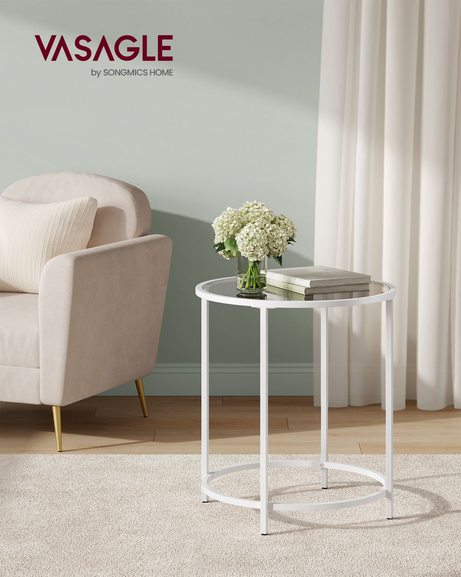 VASAGLE Round side table, small coffee table, glass table with metal frame, bedside table, sofa table, balcony, tempered glass, black LGT020B01