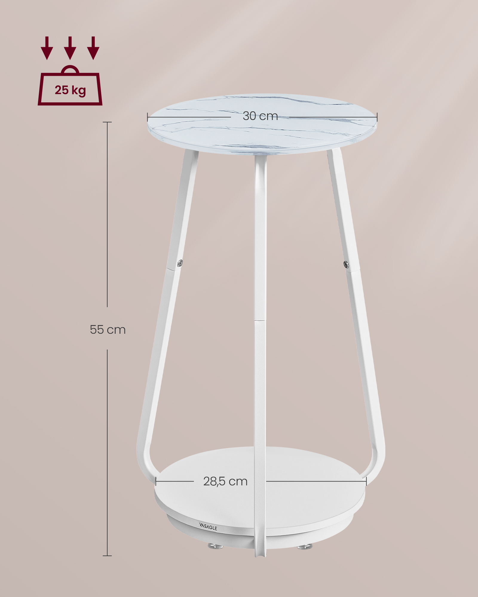 Max. total static load capacity: 25 kg