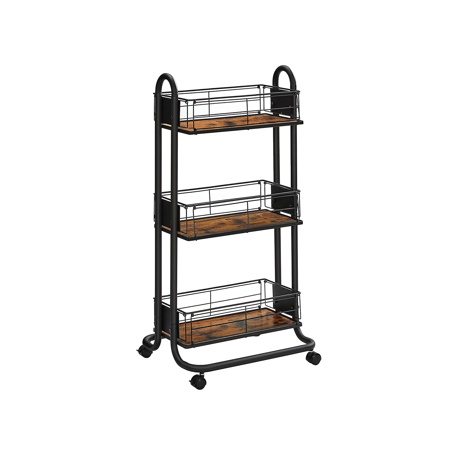 VASAGLE Serving trolley 3 levels Vintage brown-black
