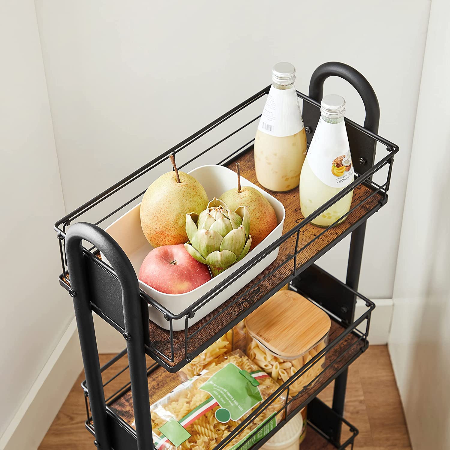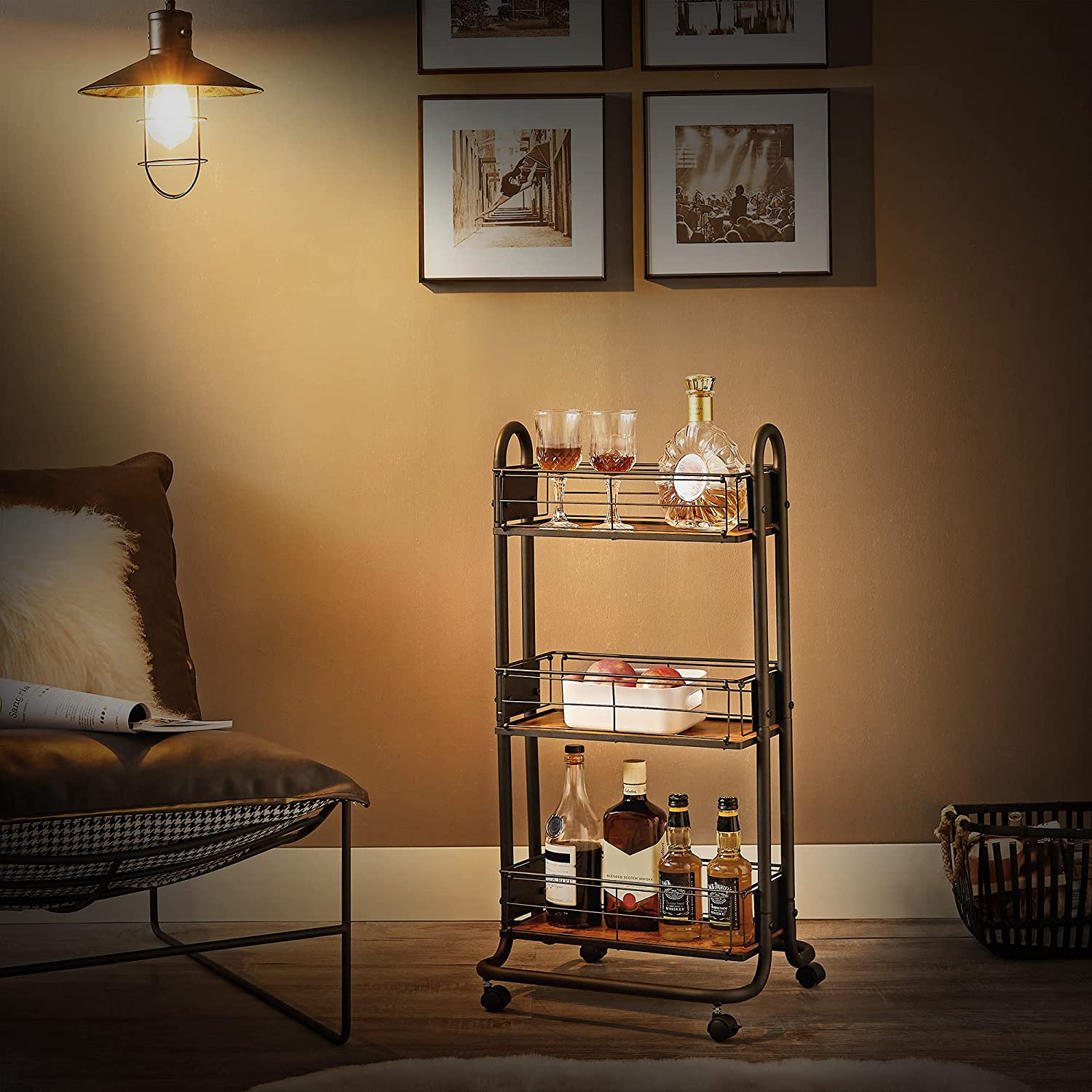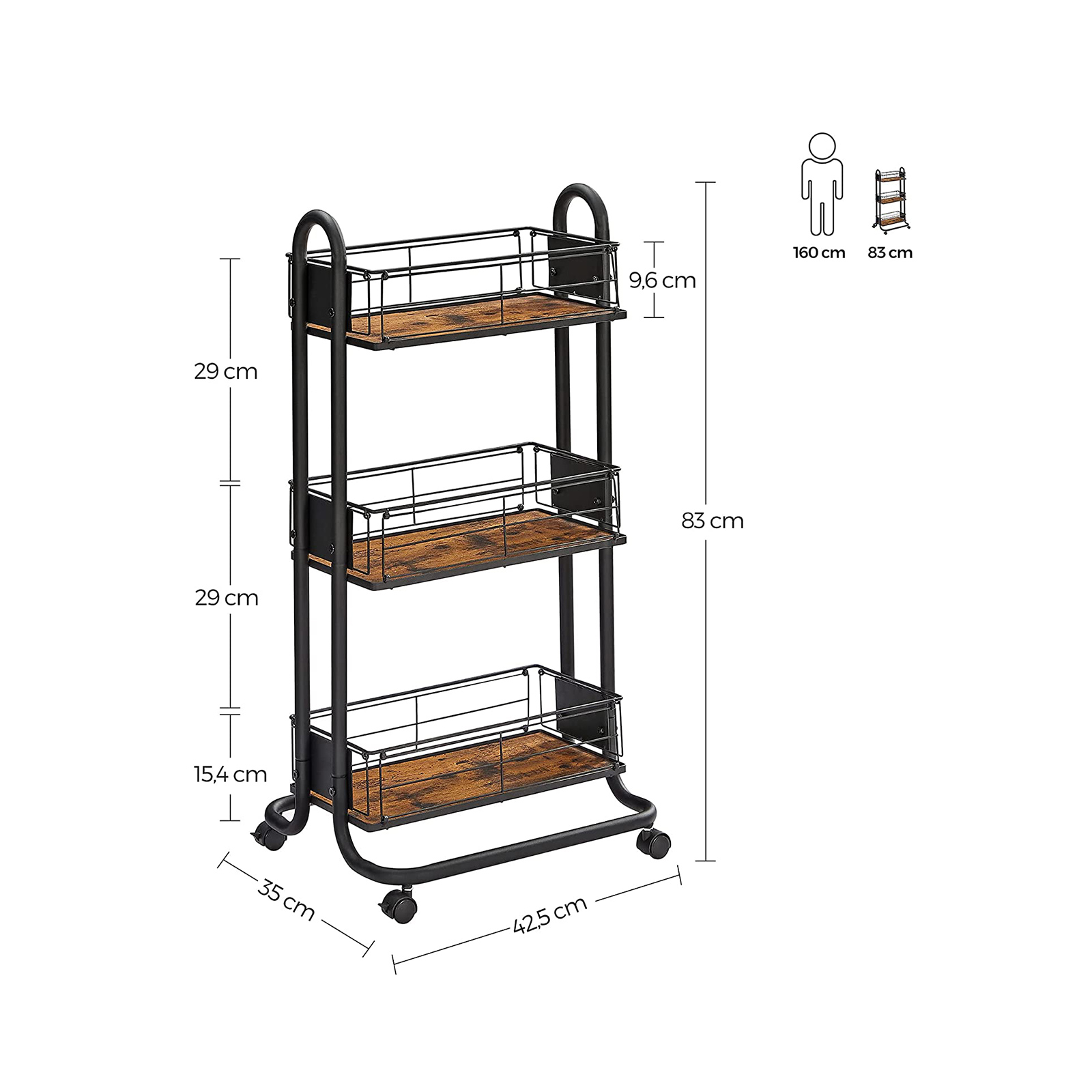 VASAGLE serving trolley, kitchen trolley, kitchen shelf on casters, trolley with 3 levels, 360° swivel wheels, for kitchen, dining room, living room, study, vintage brown-black LRC031B01