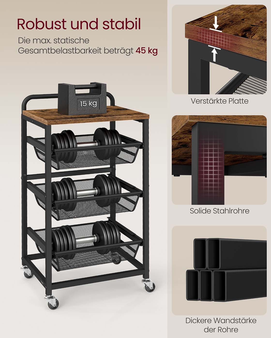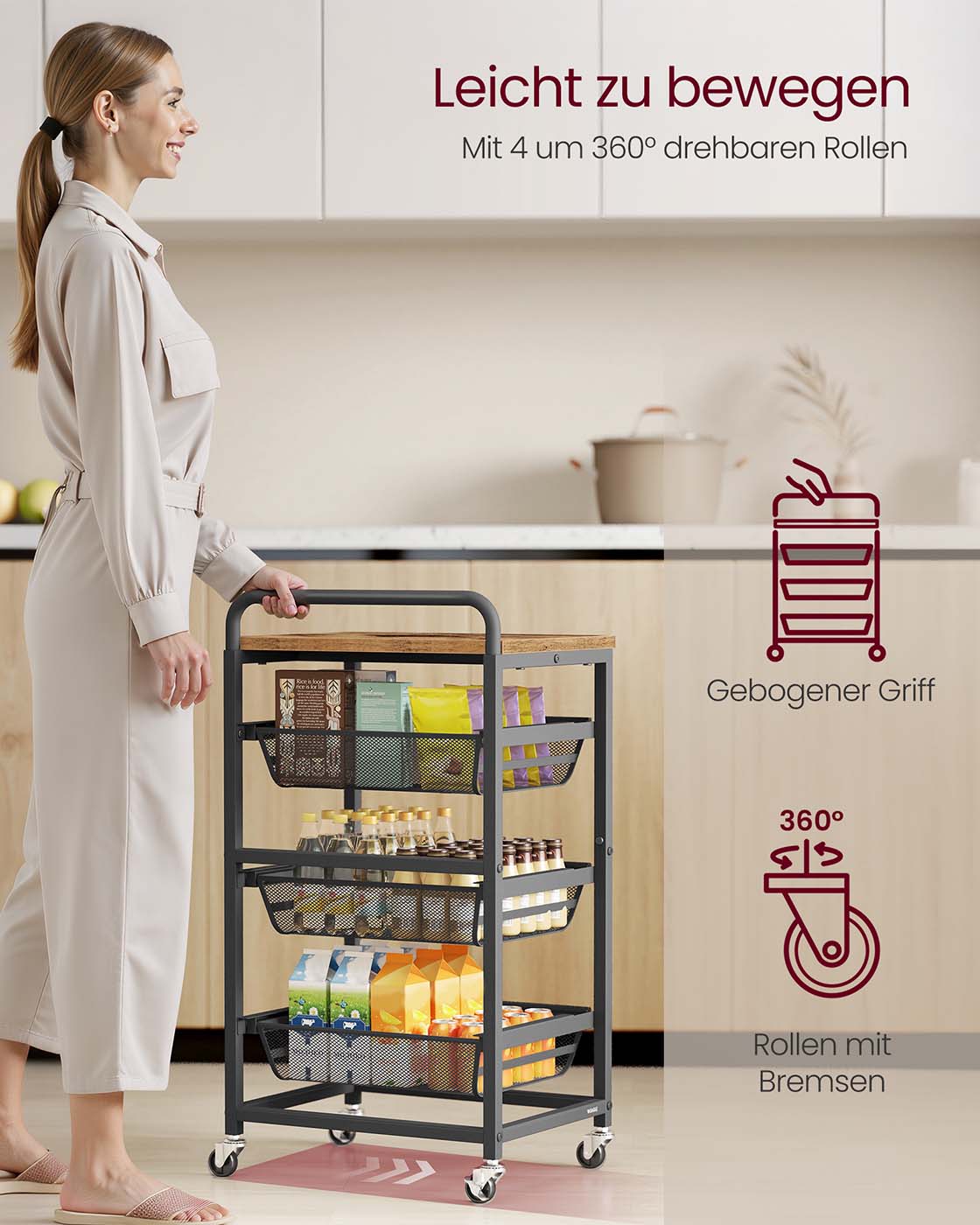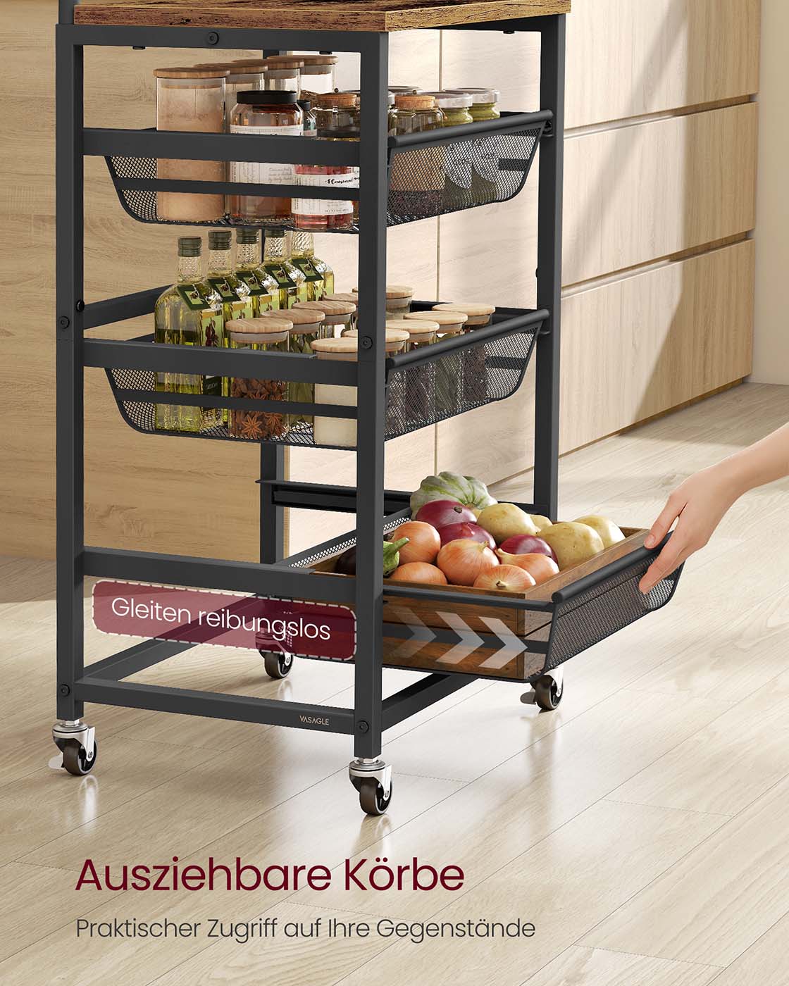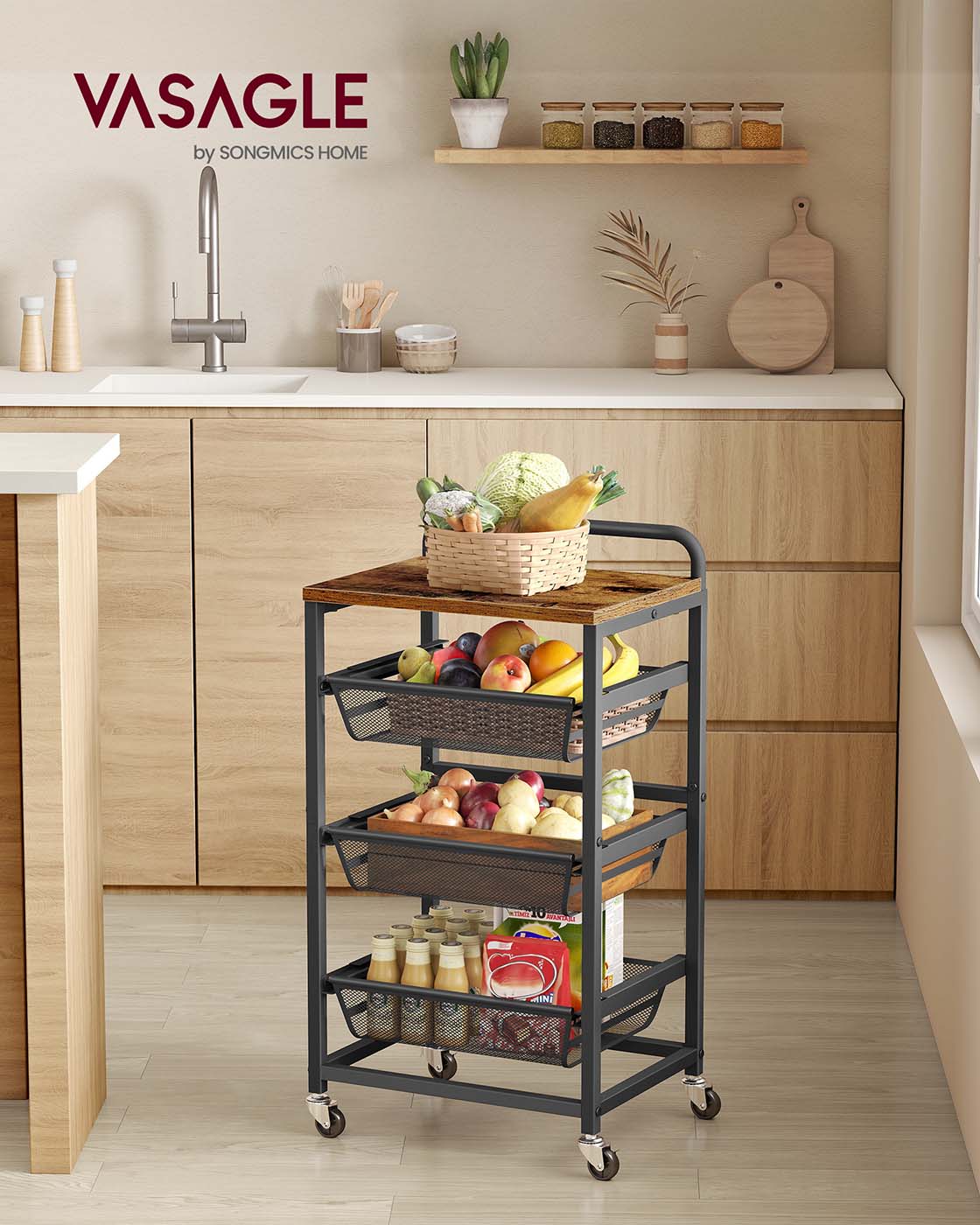 VASAGLE Serving trolley with multiple levels and pull-out baskets