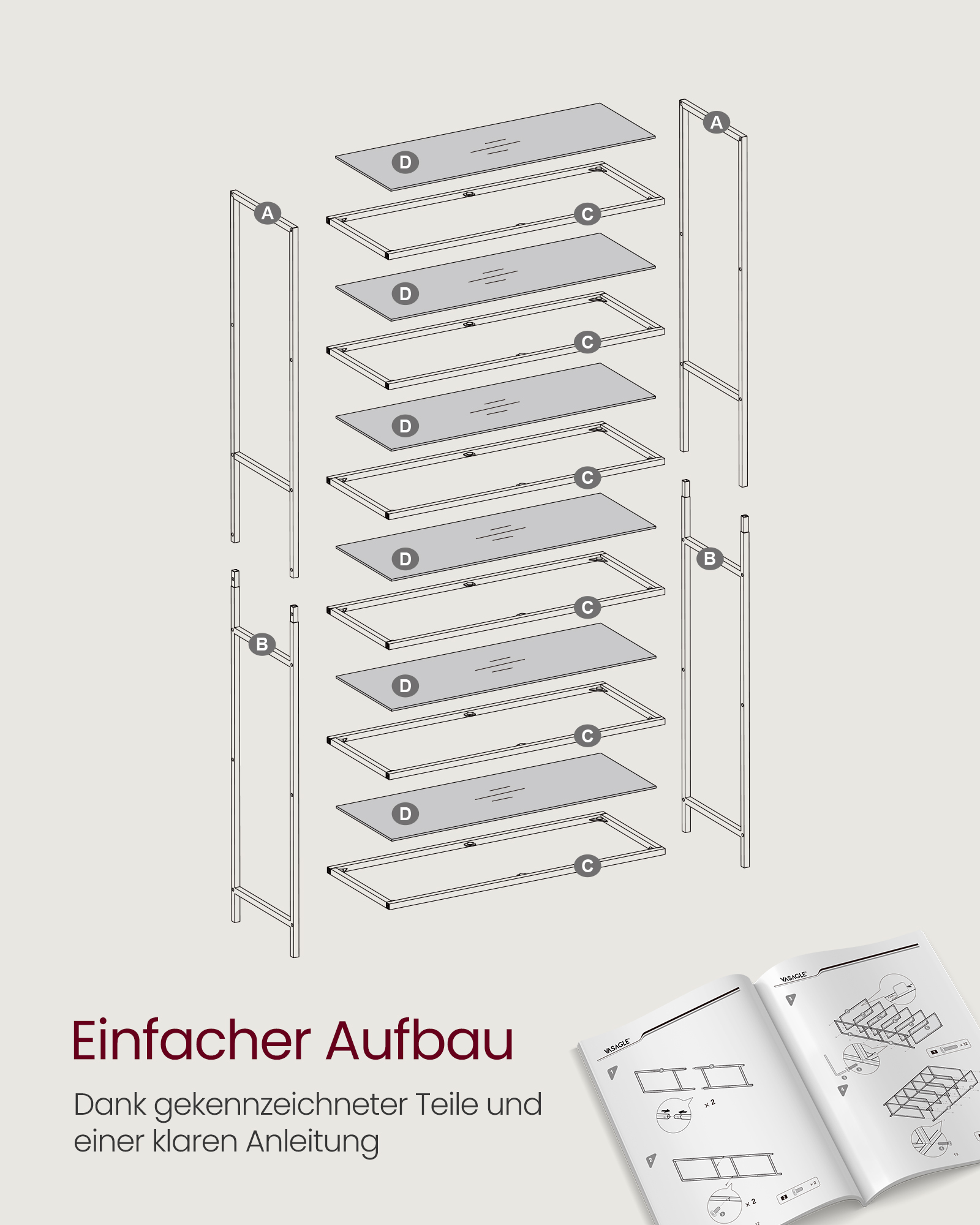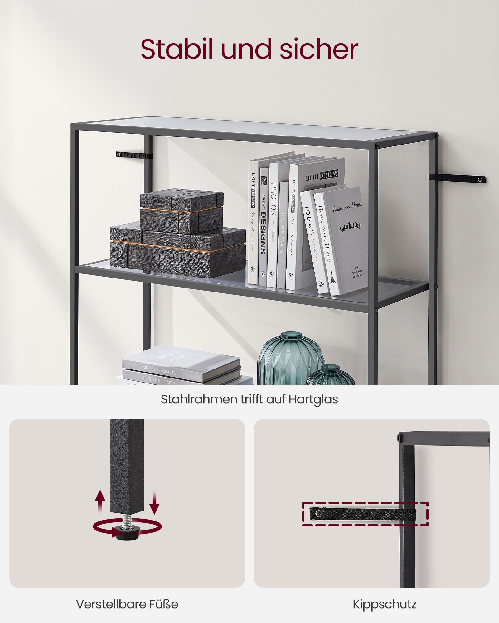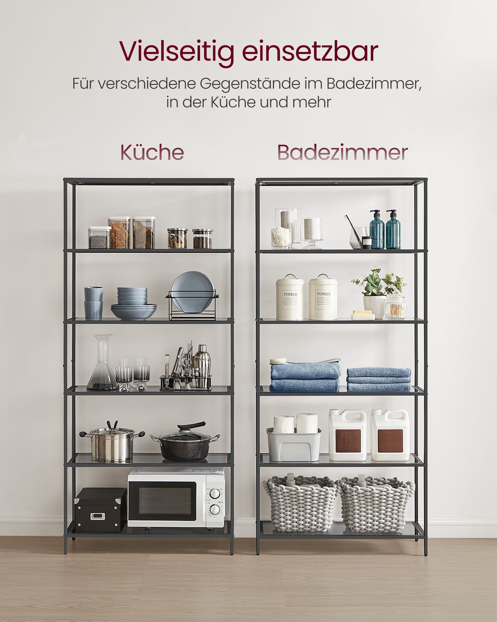 VASAGLE shelf with 6 shelves, bathroom shelf, tempered glass, easy assembly, for bathroom, living room, kitchen, office