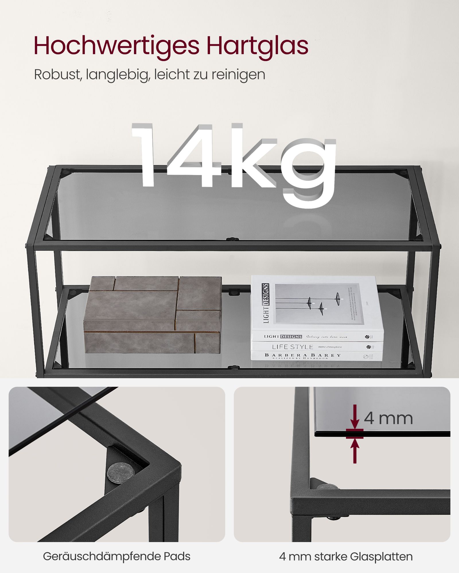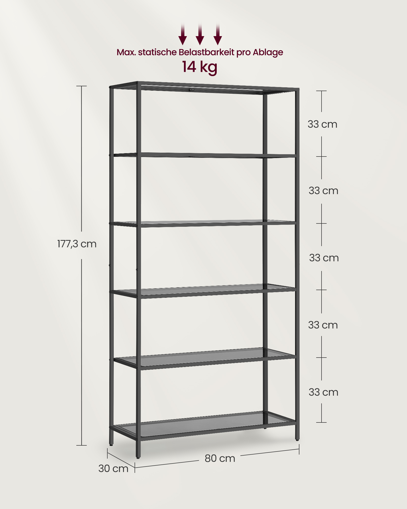 Max. static load capacity per shelf: 14 kg