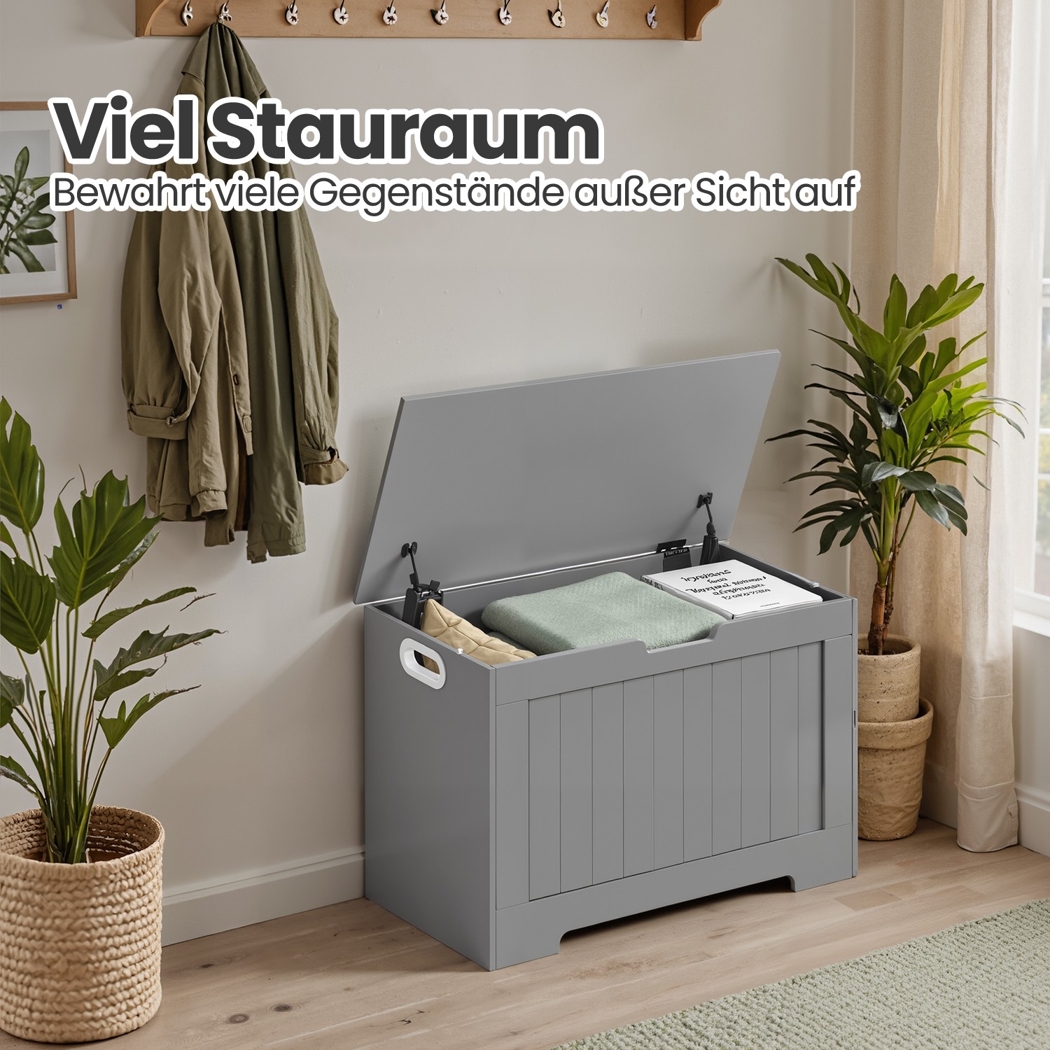 VASAGLE toy box, chest, bench with storage space, storage chest, bench, storage chest with large capacity, 76 x 48 x 40 cm, white LHS11WT
