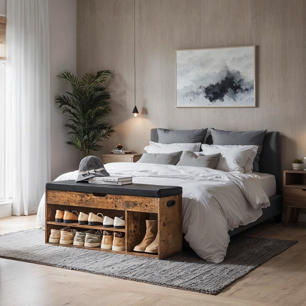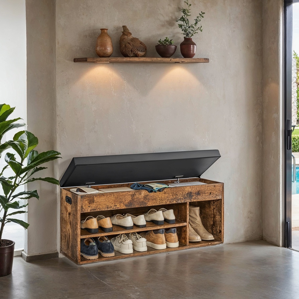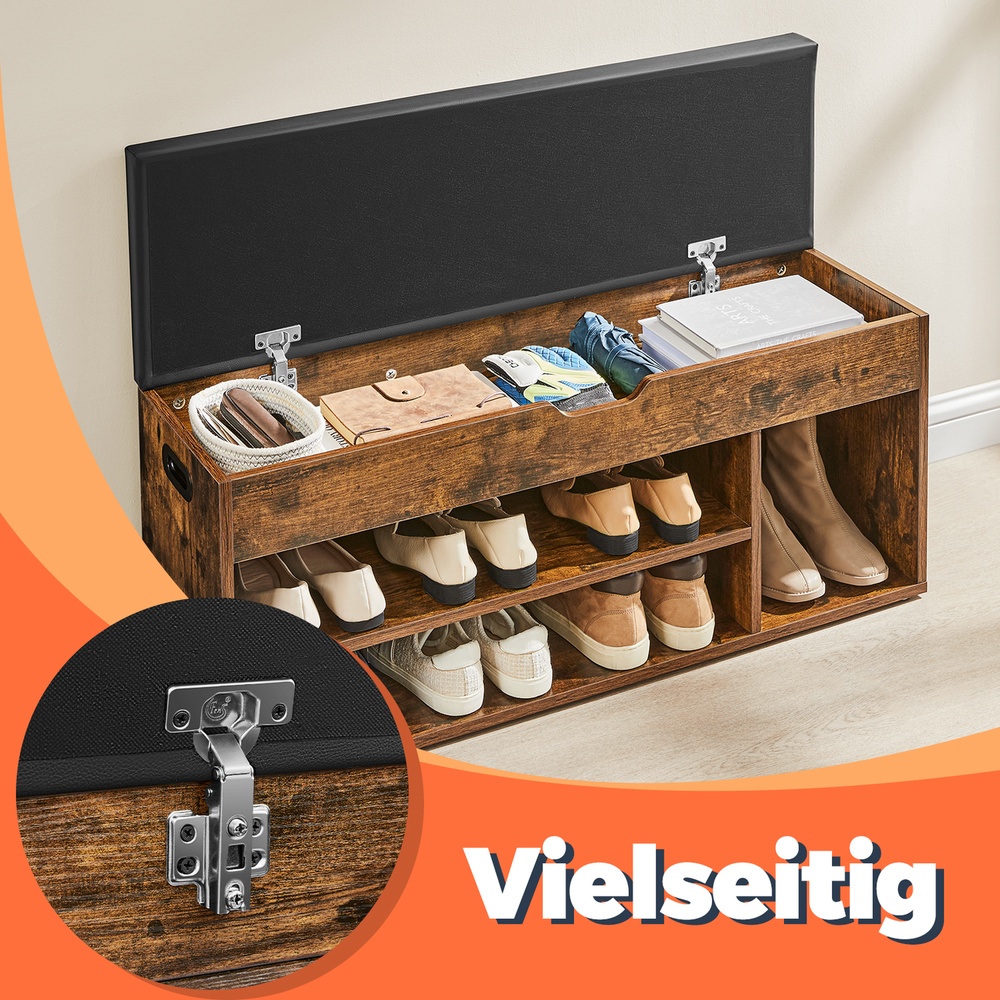 Shoe bench, bench with storage space, upholstered, 3 open compartments, natural beige