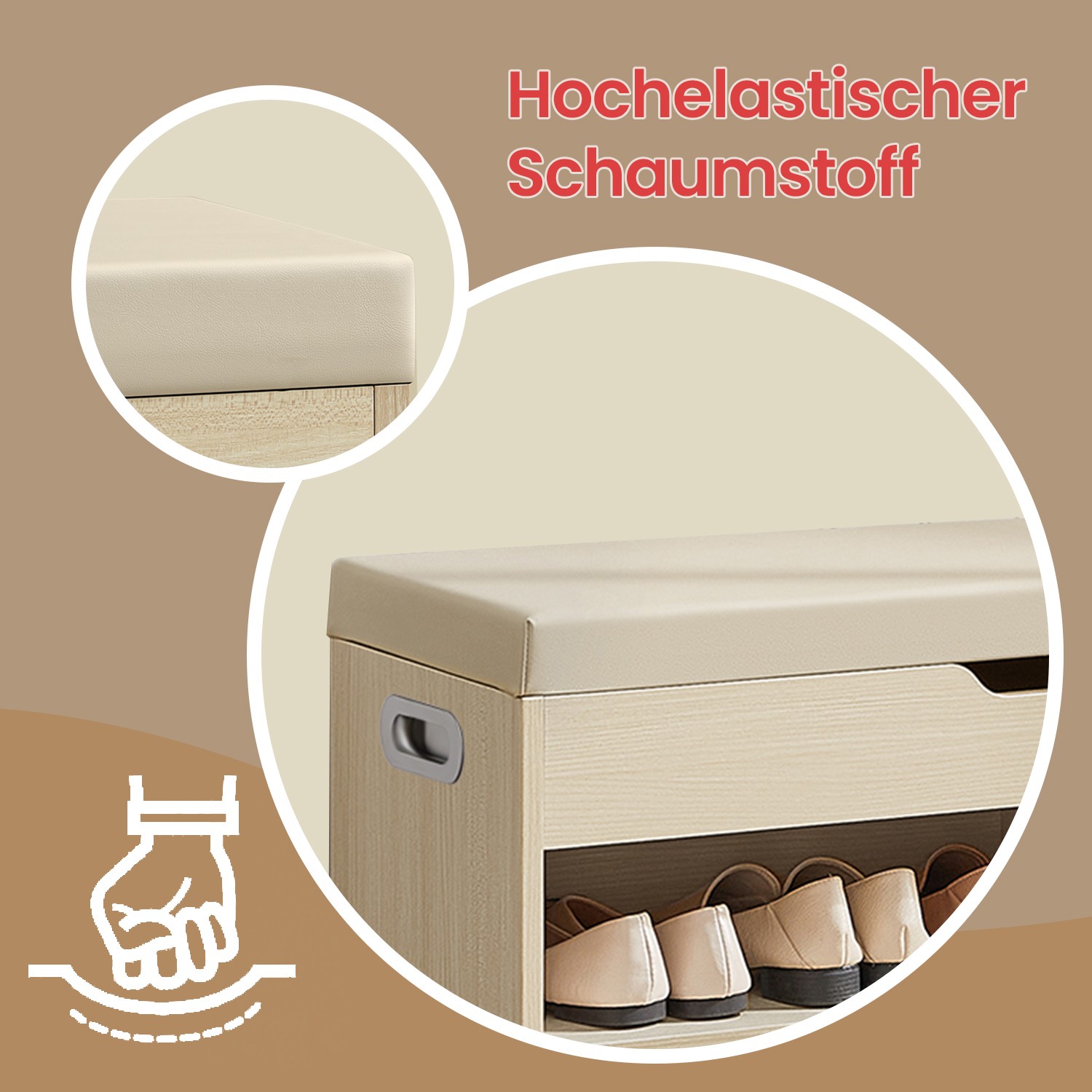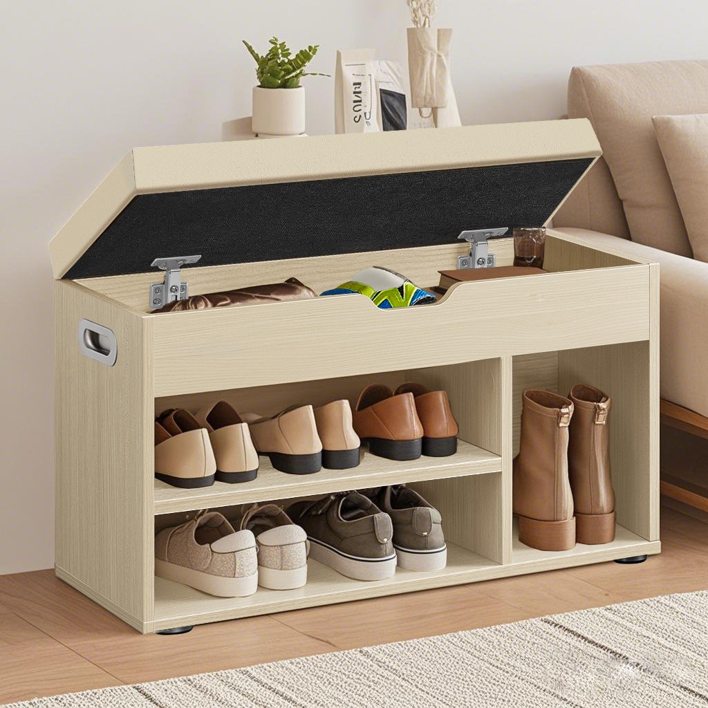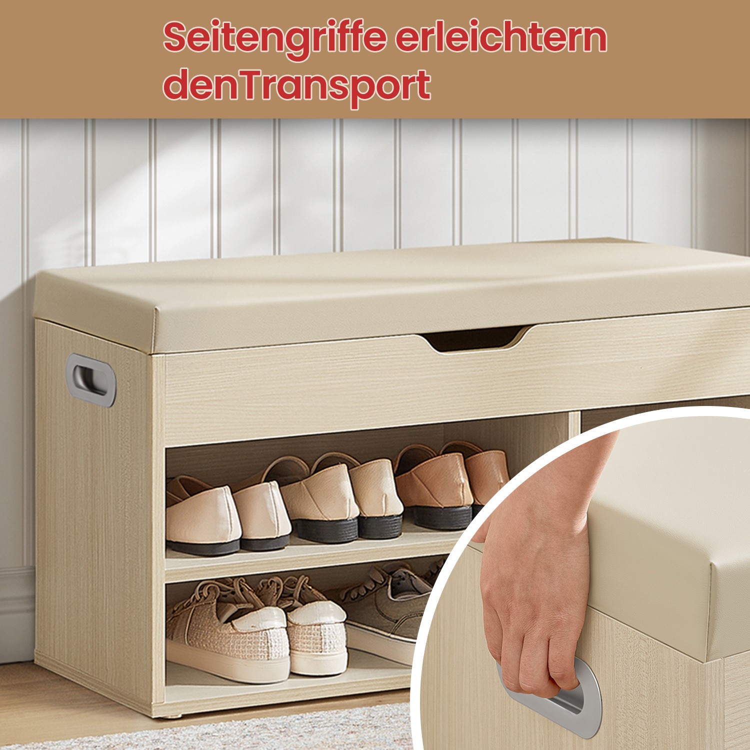 Shoe bench, bench with storage space, upholstered, 3 open compartments, natural beige
