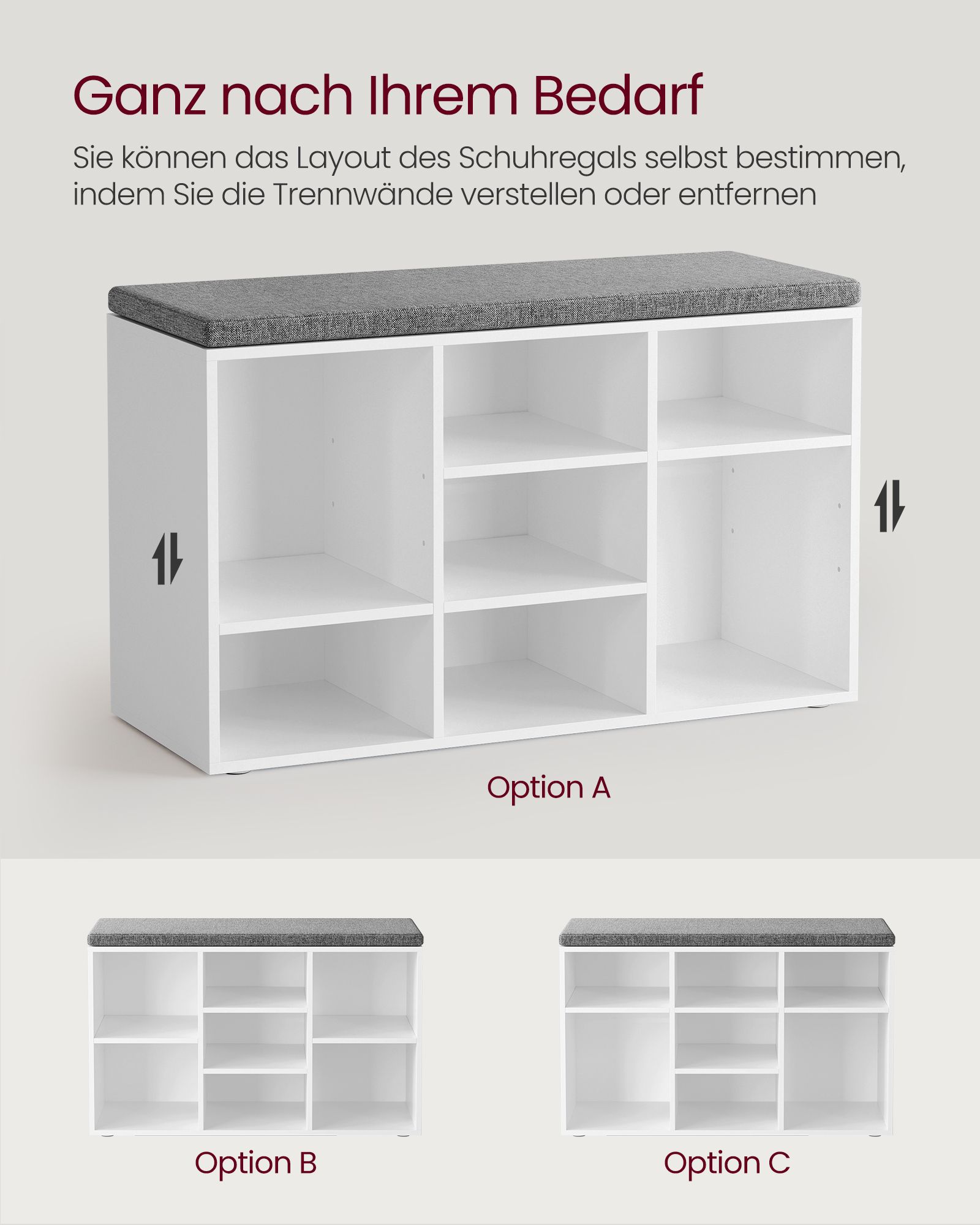 VASAGLE shoe bench, shoe rack with seat, bench with storage space, cushion, 9 compartments, adjustable shelves, for living room, hallway, 30.3 x 78.5 x 48 cm, vintage brown LHS009B01