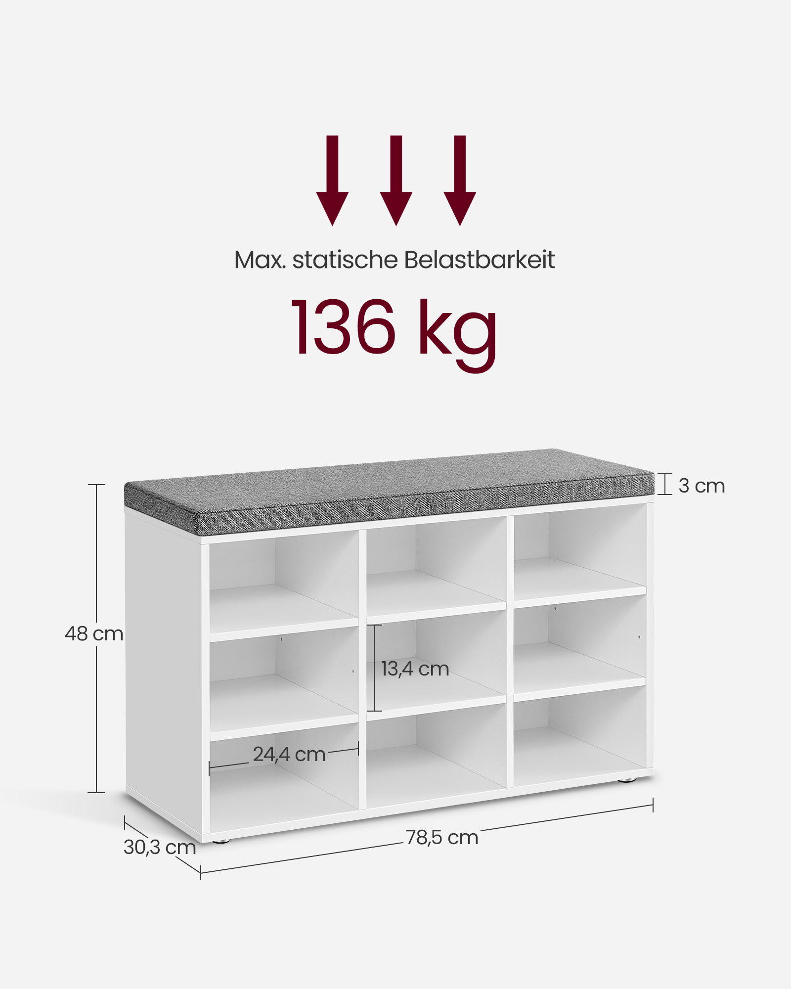 Max. static load capacity of the bench: 136 kg