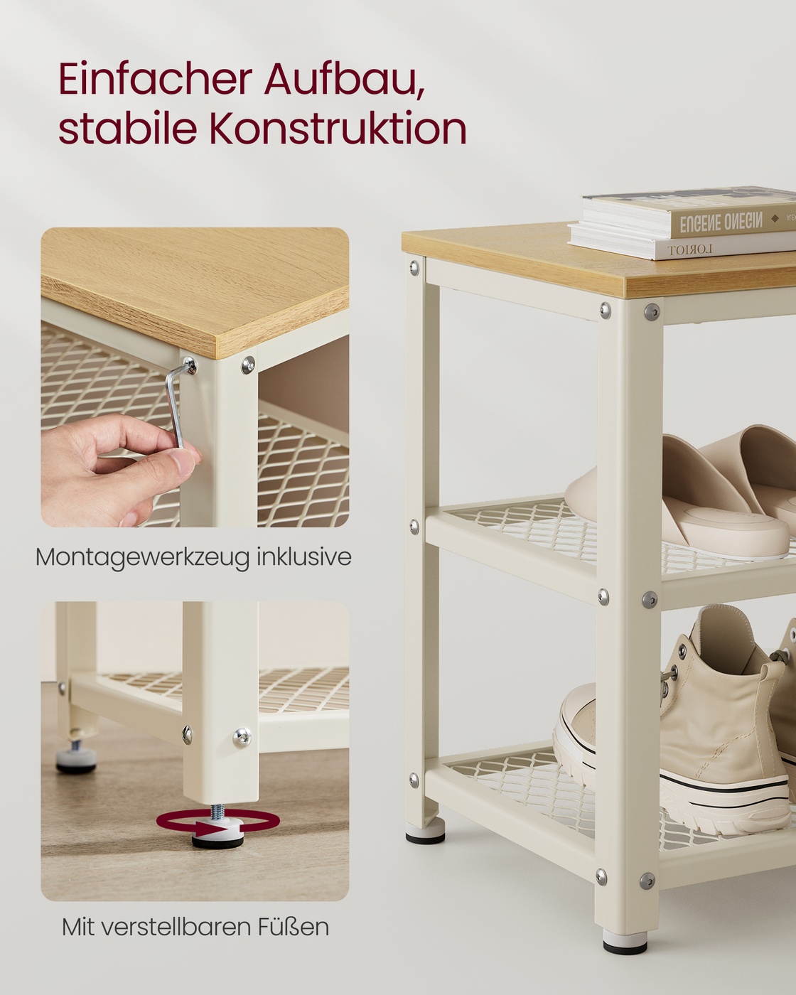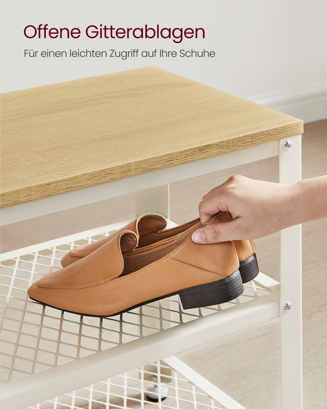 VASAGLE Treat yourself and your entrance area to something beautiful with this industrial-style shoe bench from . 2 mesh shelves for 6-8 pairs of shoes and a rustic shelf for bags, wallets, and keys.