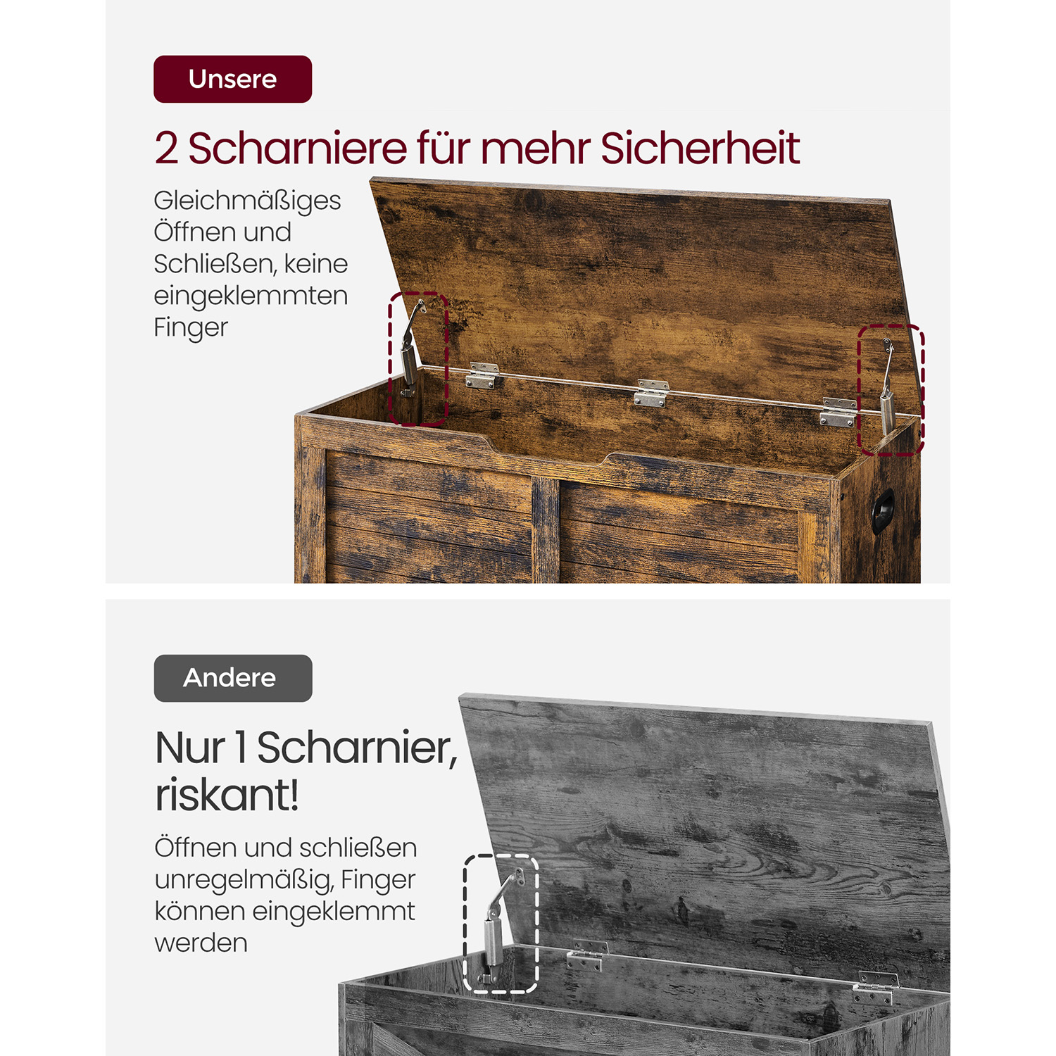 VASAGLE storage cabinet, toy chest, shoe bench, storage chest, storage box with lid, storage box, bench with storage space, safety hinges, 100 x 40 x 46 cm, matte white LSB061T10