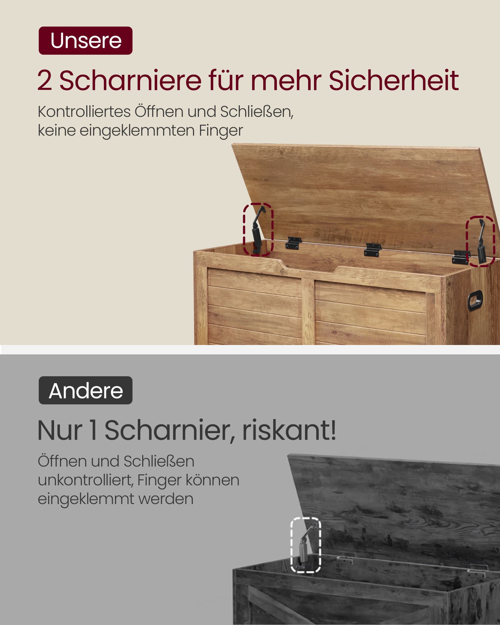 VASAGLE storage cabinet, toy chest, shoe bench, storage chest, storage box with lid, storage box, bench with storage space, safety hinges, 100 x 40 x 46 cm, matte white LSB061T10